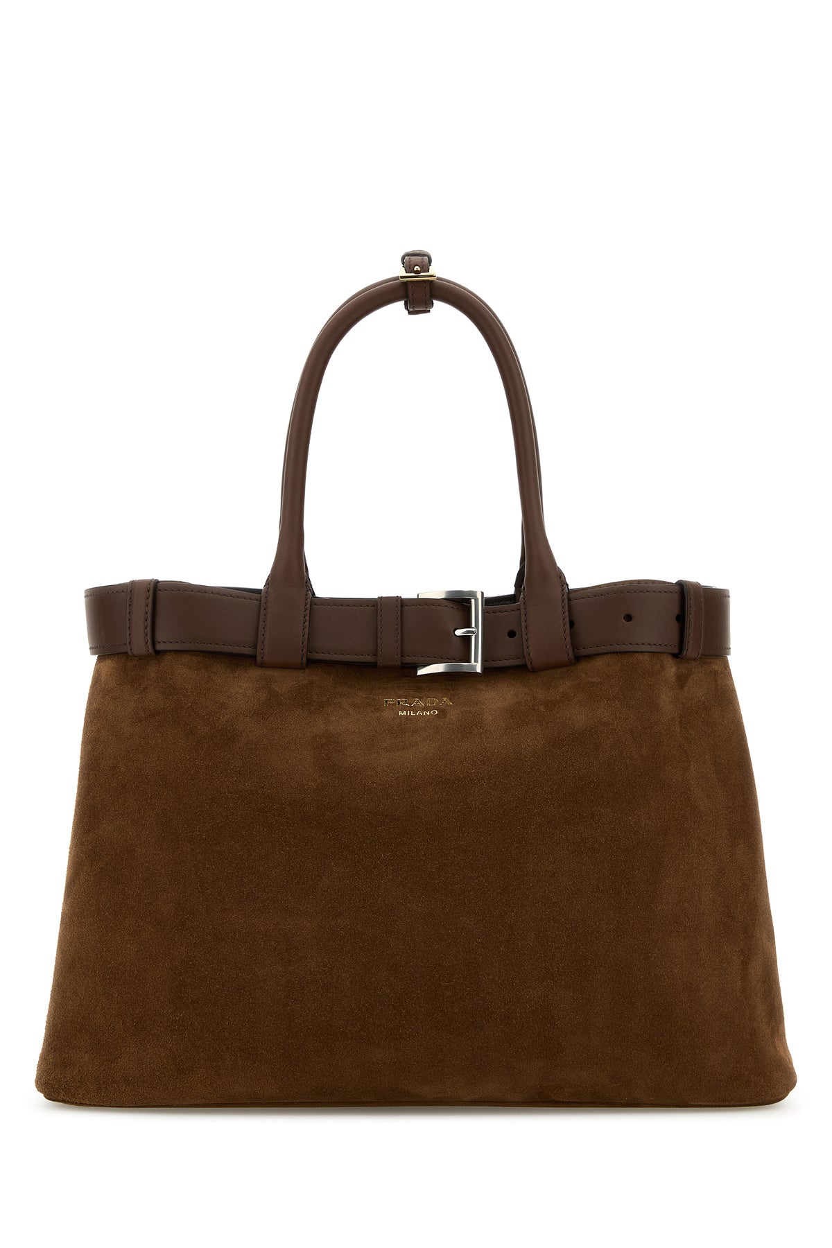 Borsa a mano Prada Buckle large in pelle scamosciata marrone