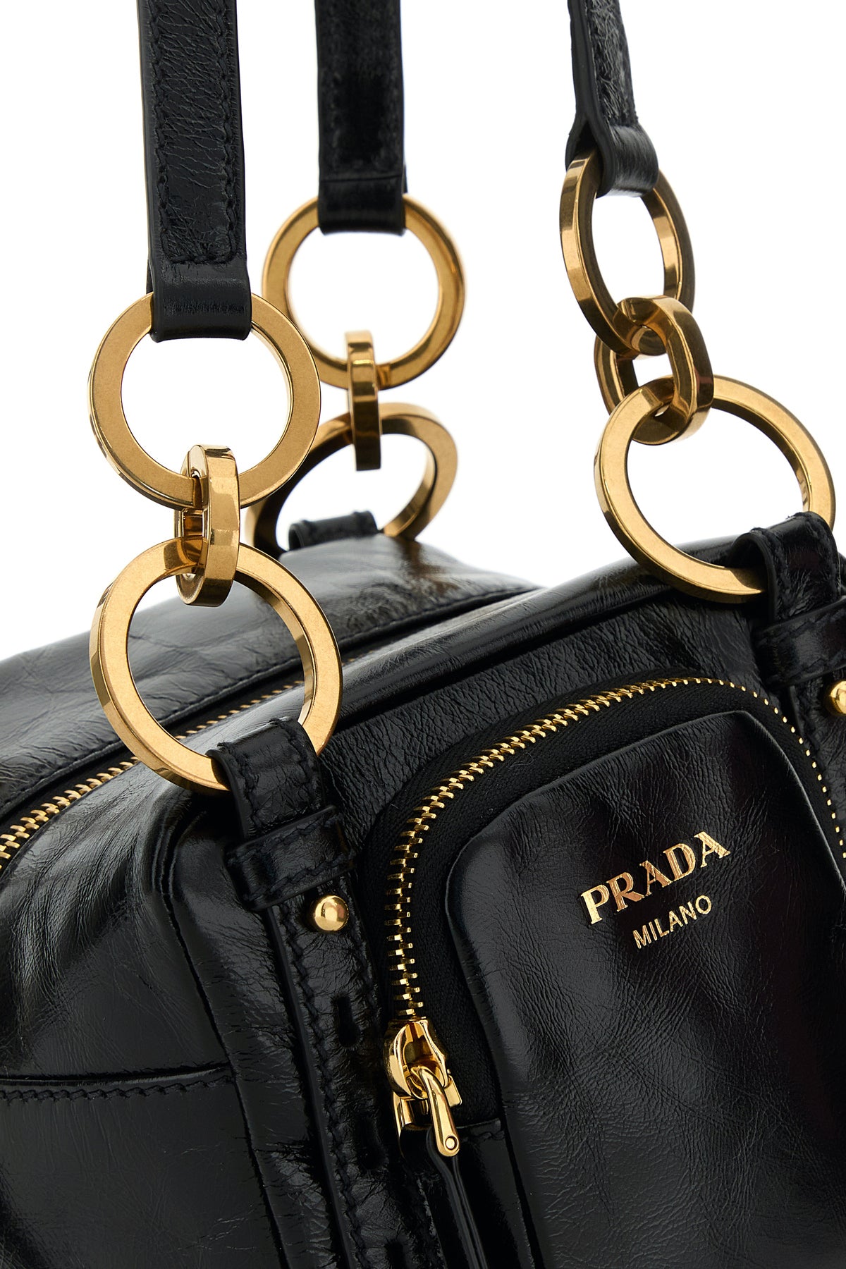 Borsa a mano realizzata in pelle di vitello caratterizzata da logo stampato laminato sulla parte frontale.