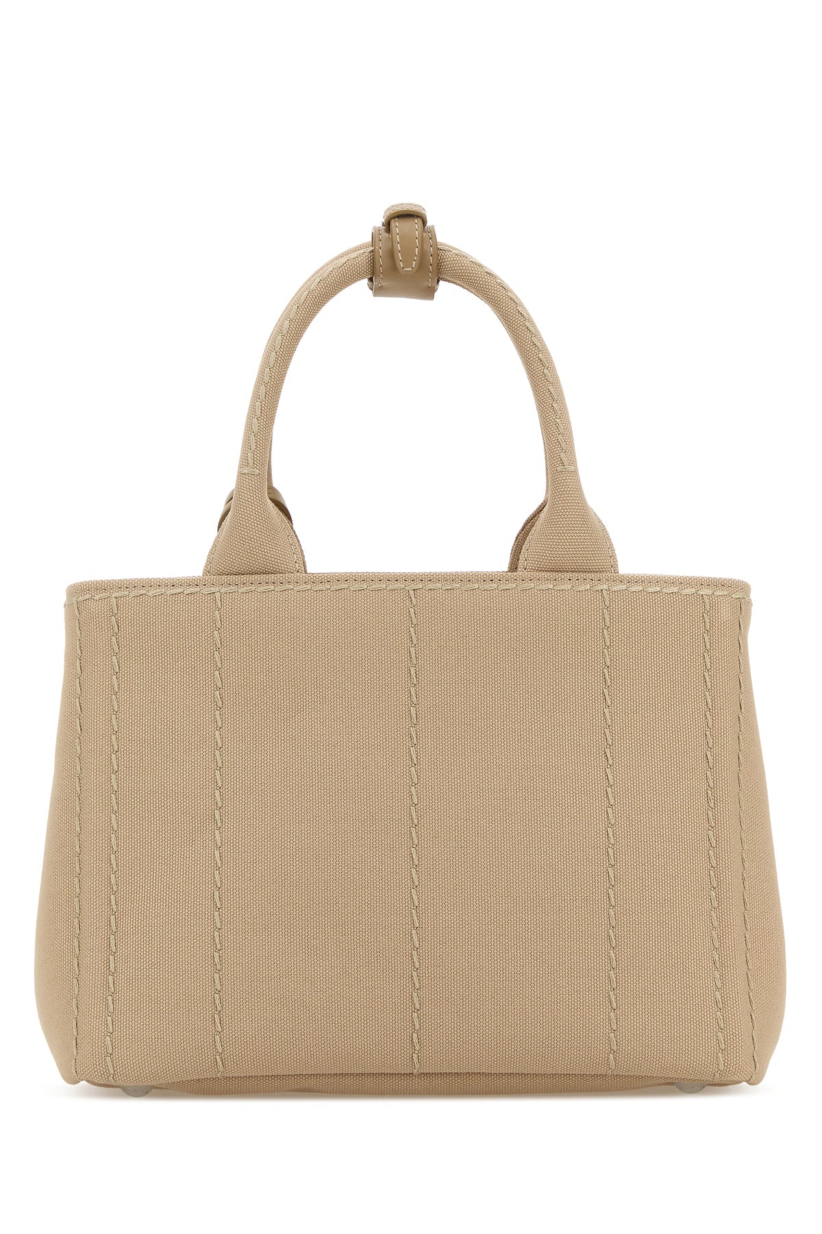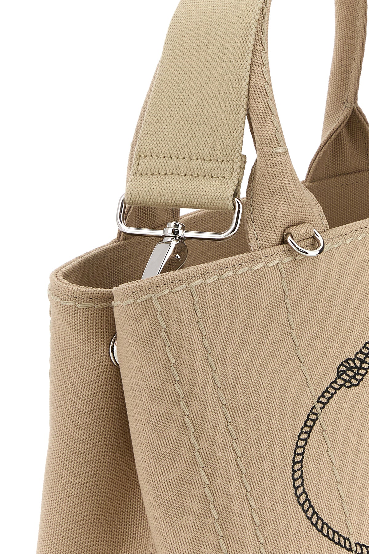 Borsa a mano realizzata in tela caratterizzata da logo stampato sulla parte frontale arricchito da iconico triangolo metallico logato sul lato.