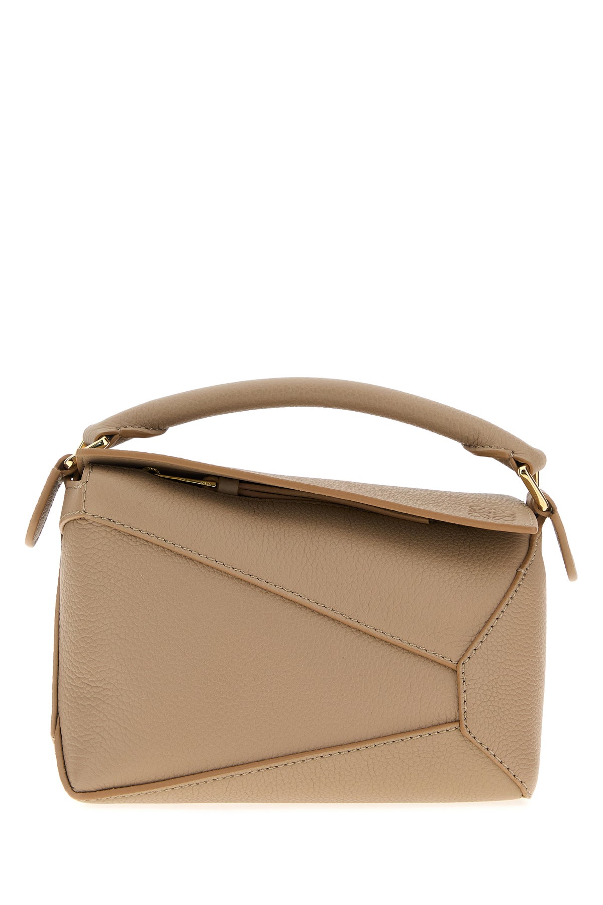 Borsa a mano realizzata in pelle di vitello martellata caratterizzata da motivo Anagram impresso sulla patta e iconico motivo geometrico su tutta la superficie.