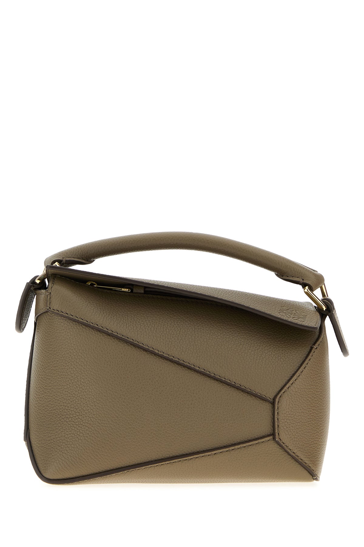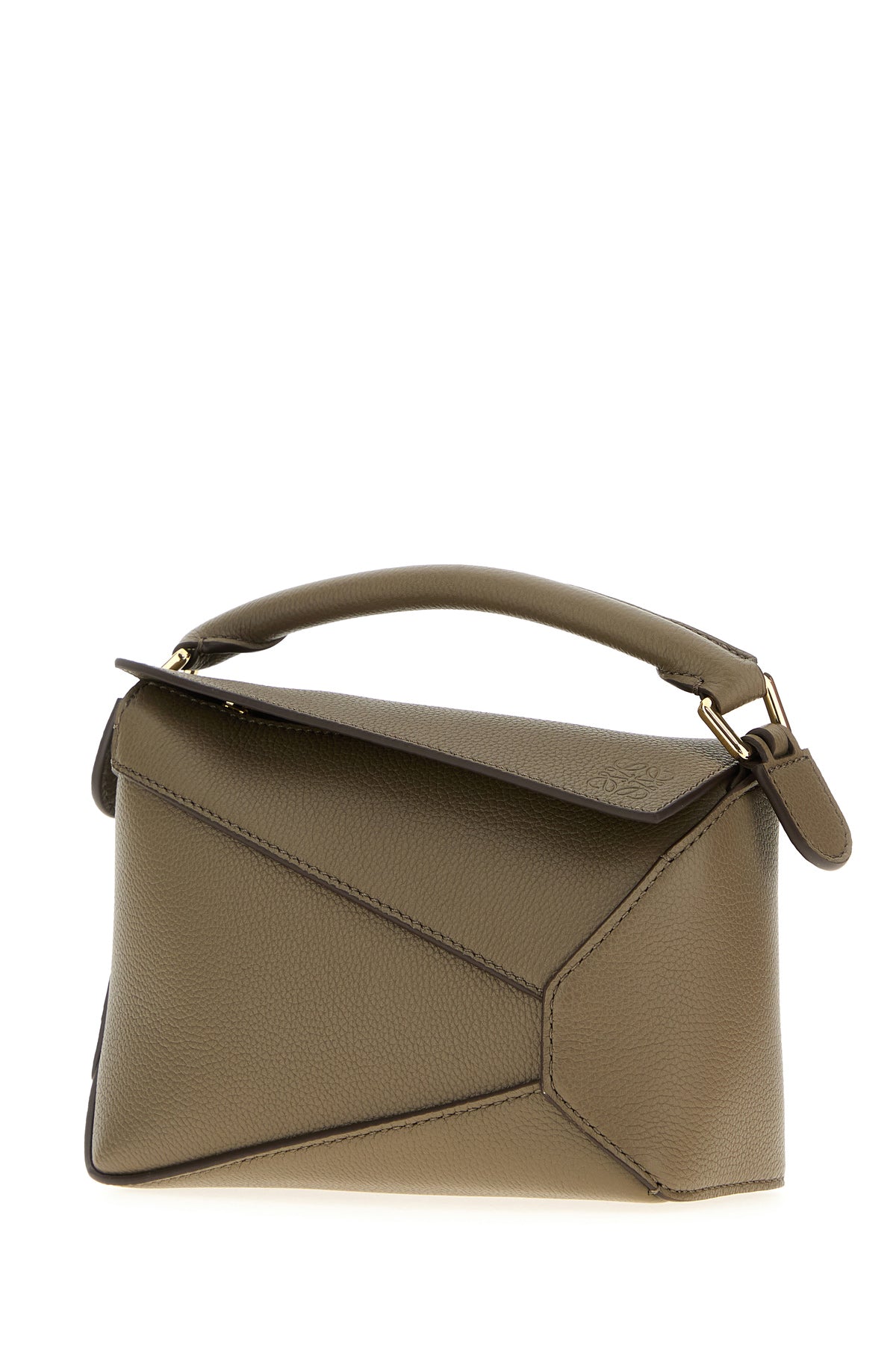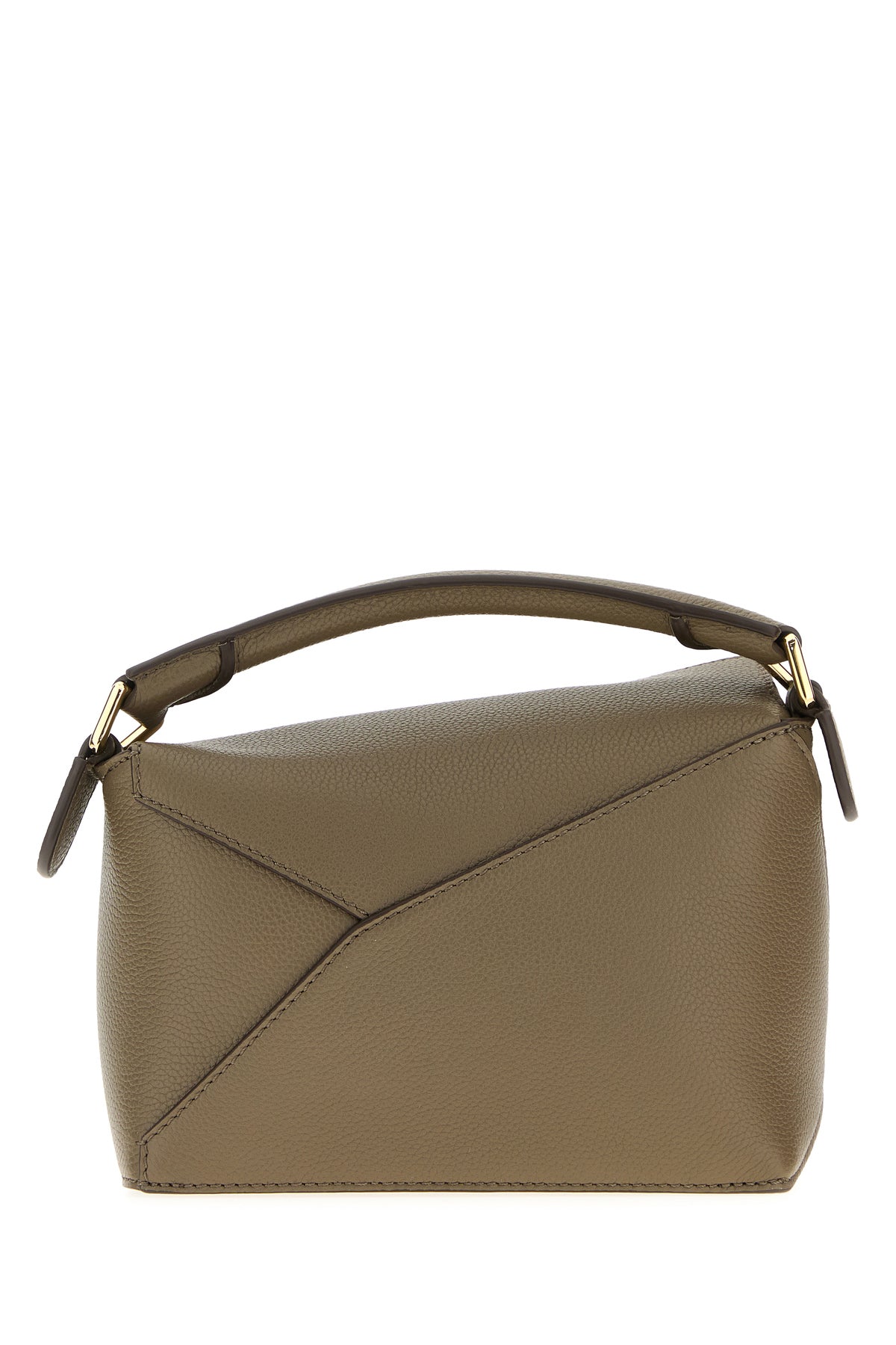 Borsa a mano realizzata in pelle di vitello martellata caratterizzata da motivo Anagram impresso sulla patta e iconico motivo geometrico su tutta la superficie.
