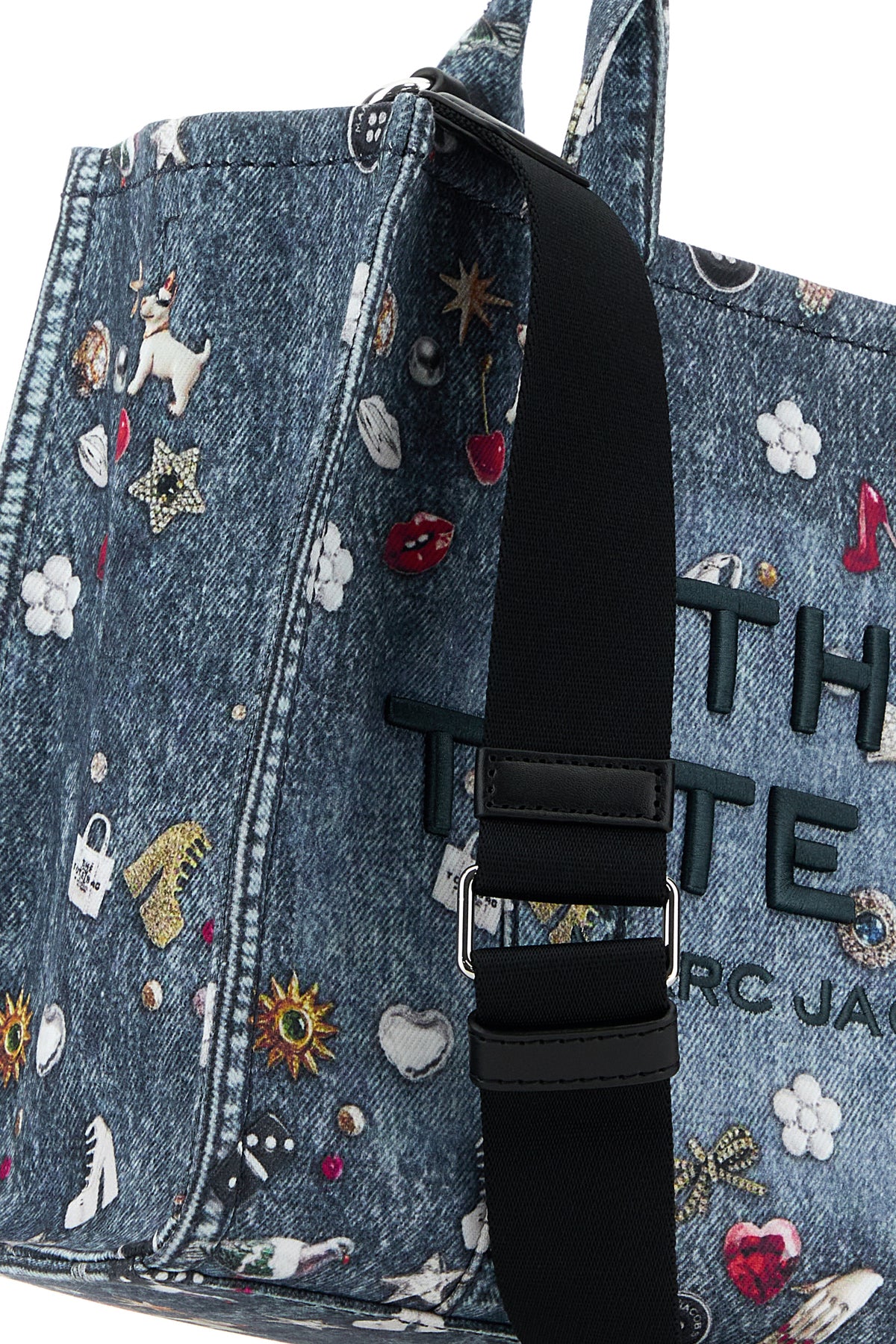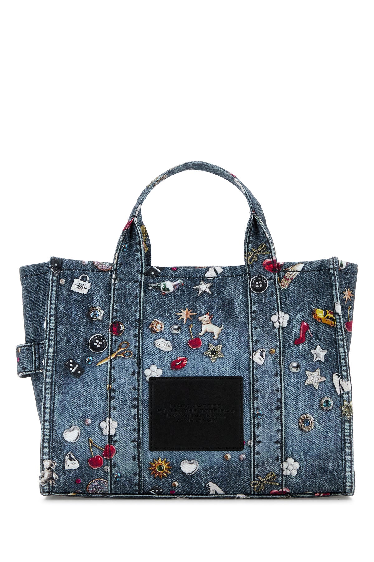 Borsa a mano realizzata in denim di cotone caratterizzata da particolare stampa su tutta la superficie e logo ricamato sulla parte frontale arricchita da applicazione logata sul retro.