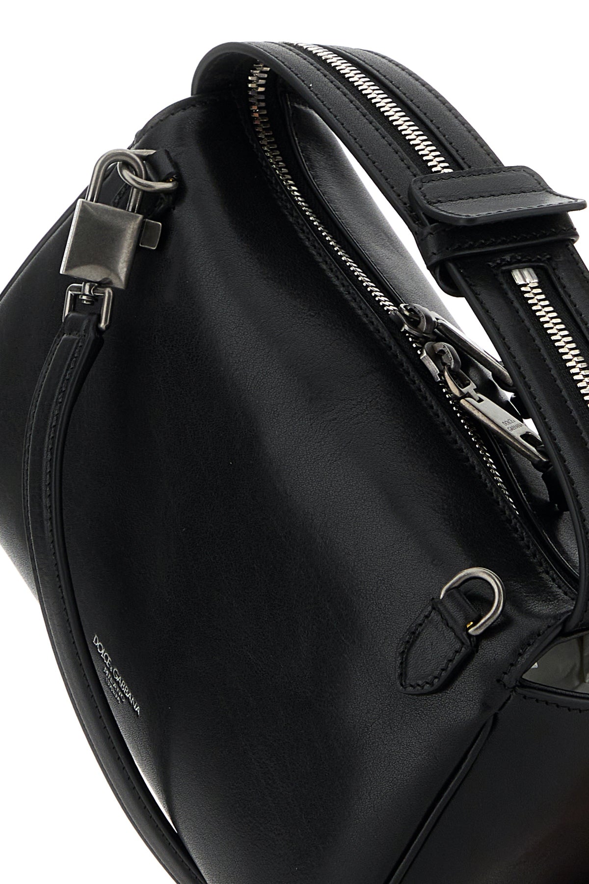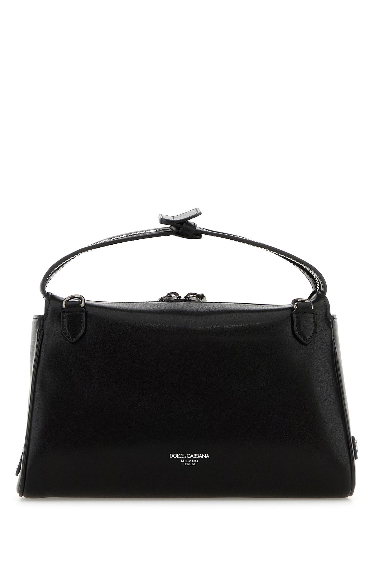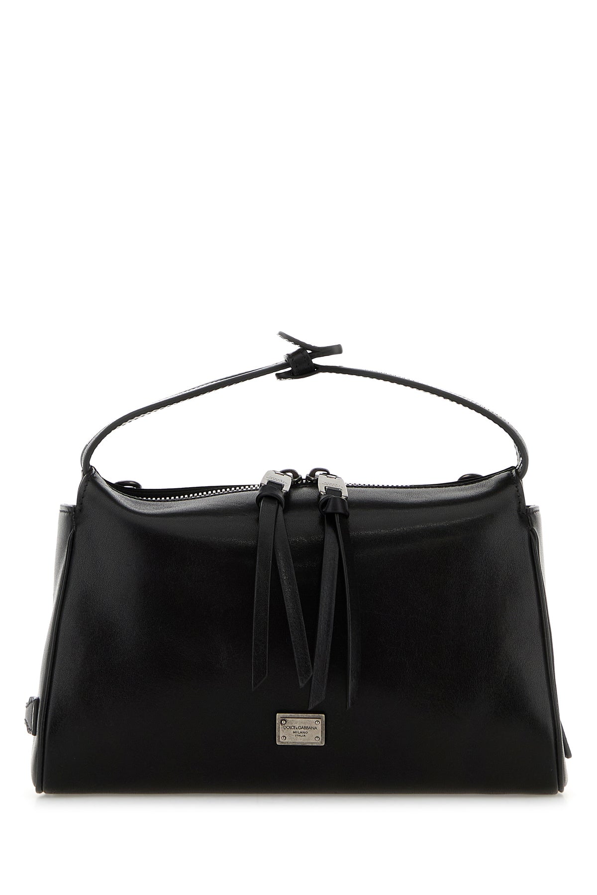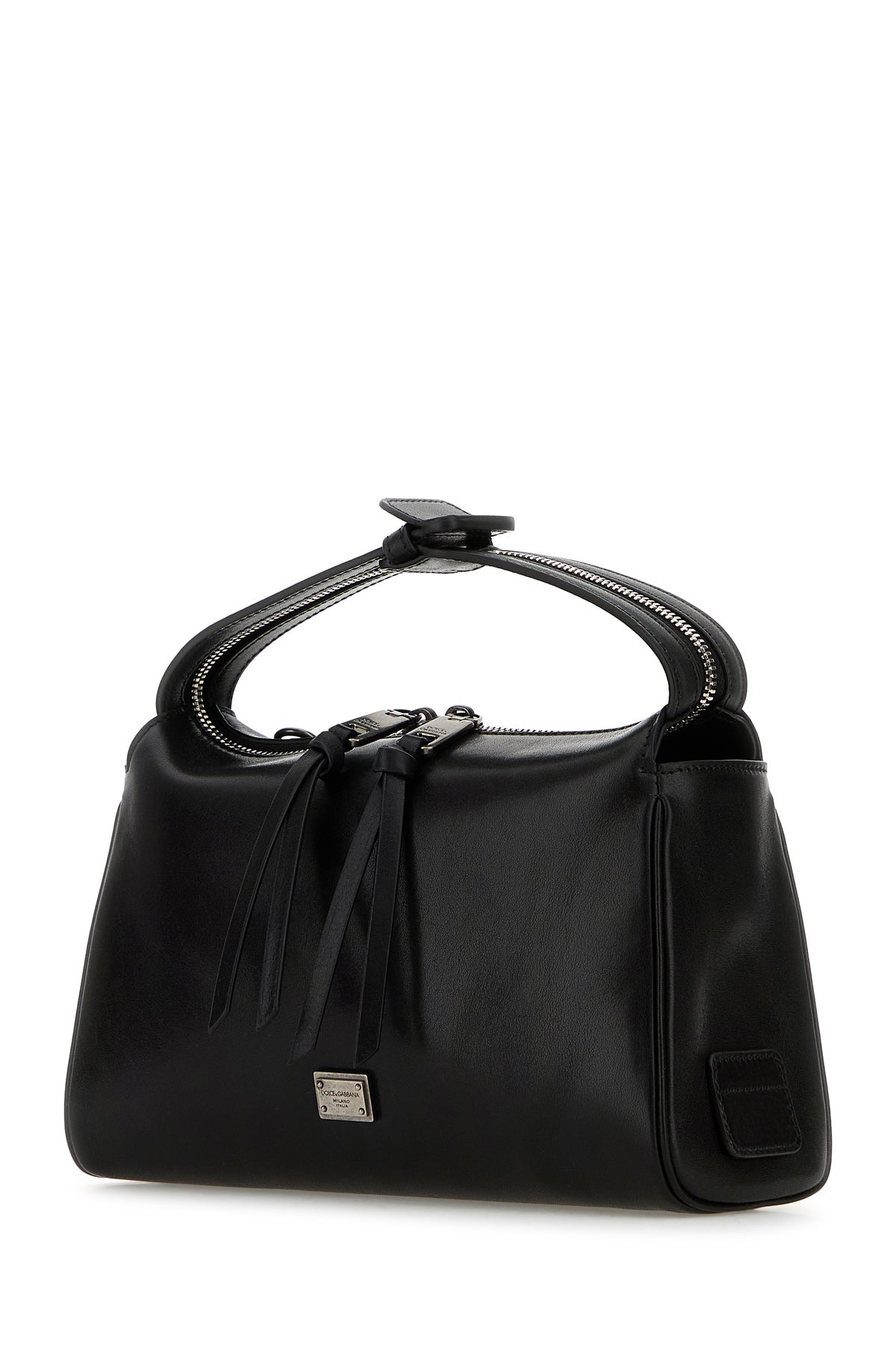 Borsa a mano realizzata in pelle di vitello arricchita da traghetta metallica logata sulla parte frontale.