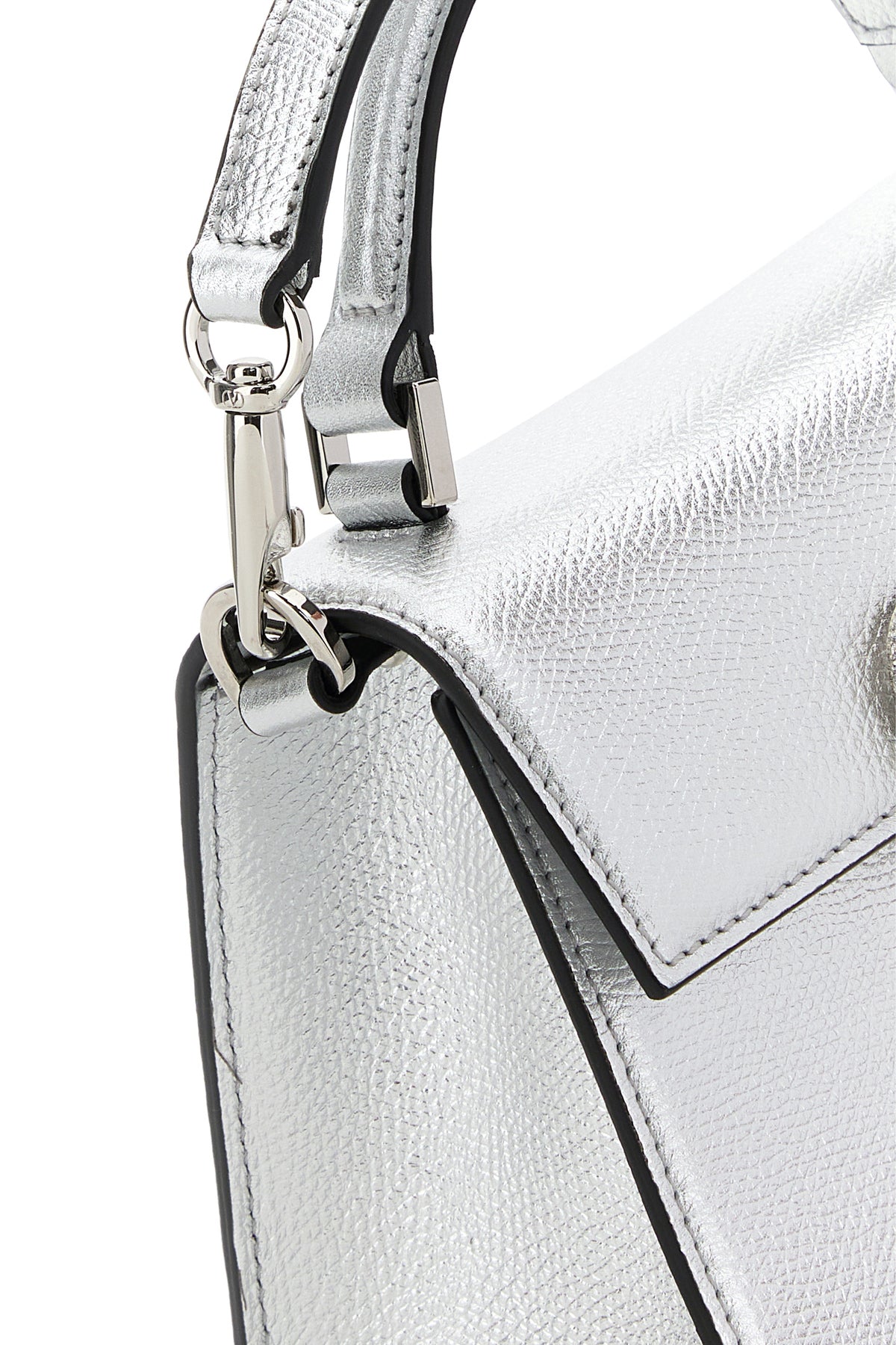 Borsa a mano VLogo Signature in pelle argento