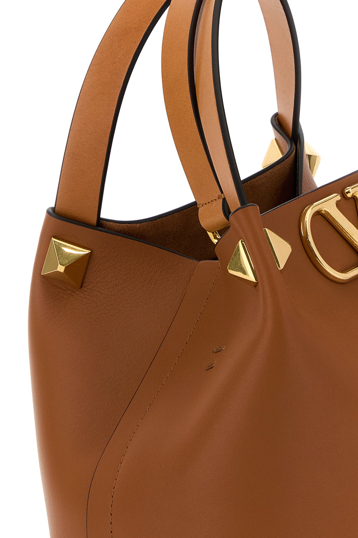 Borsa a mano VLogo Signature in pelle caramello