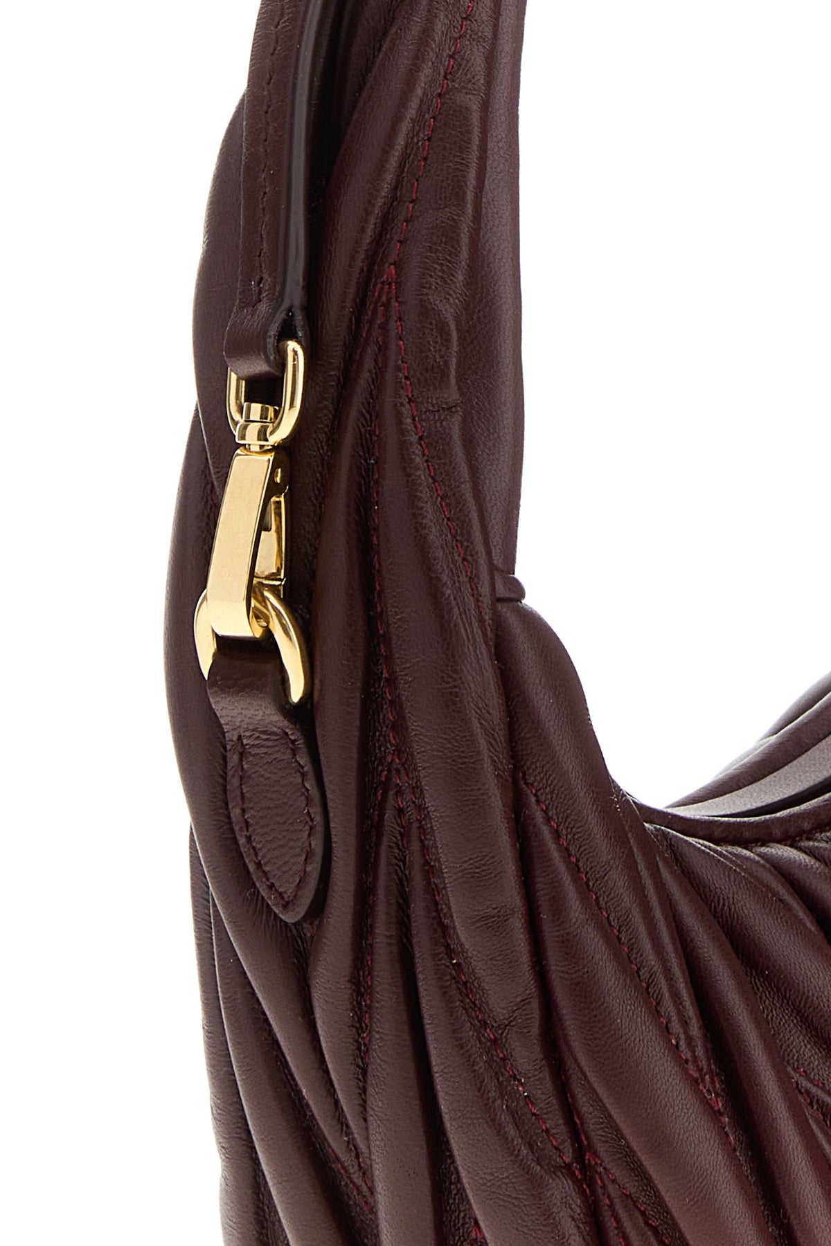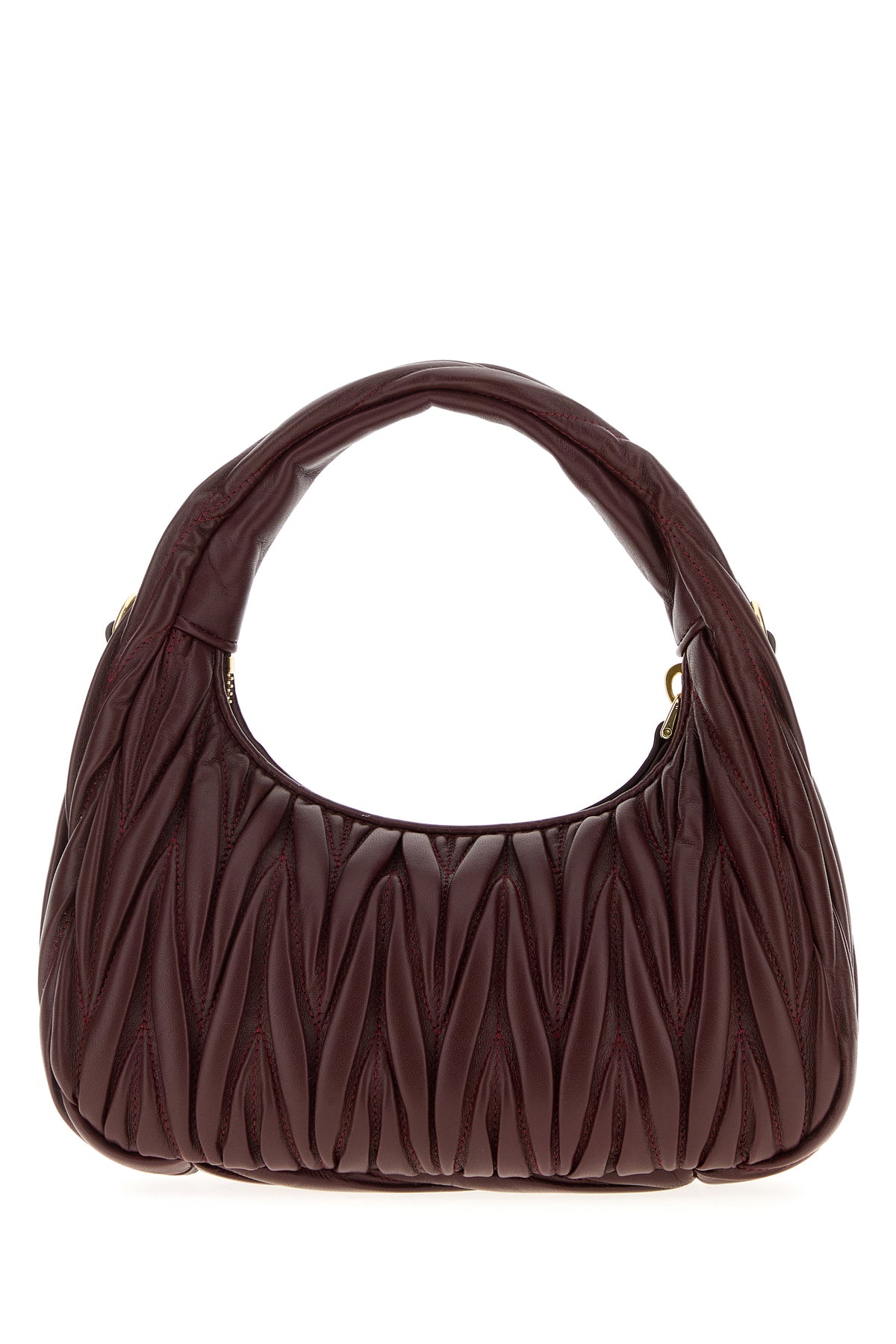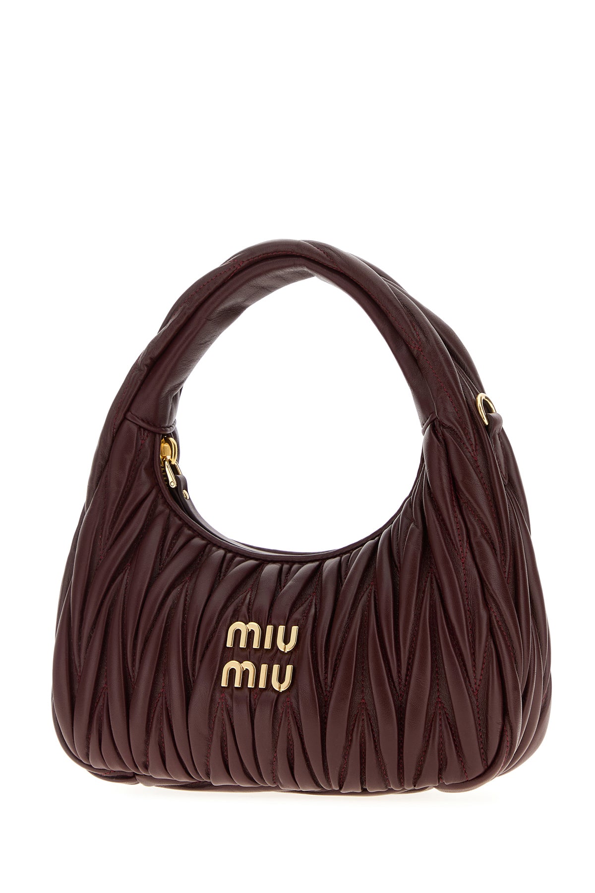 Borsa a mano realizzata in nappa matelassé arricchita da logo in lettere metalliche sulla parte frontale.