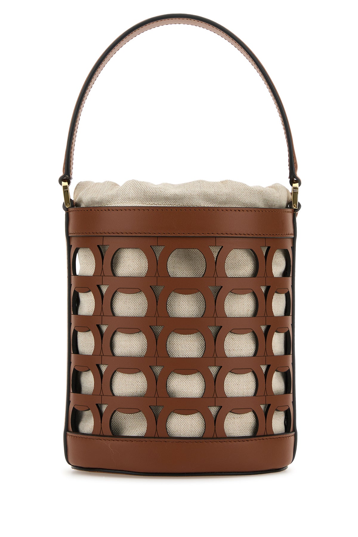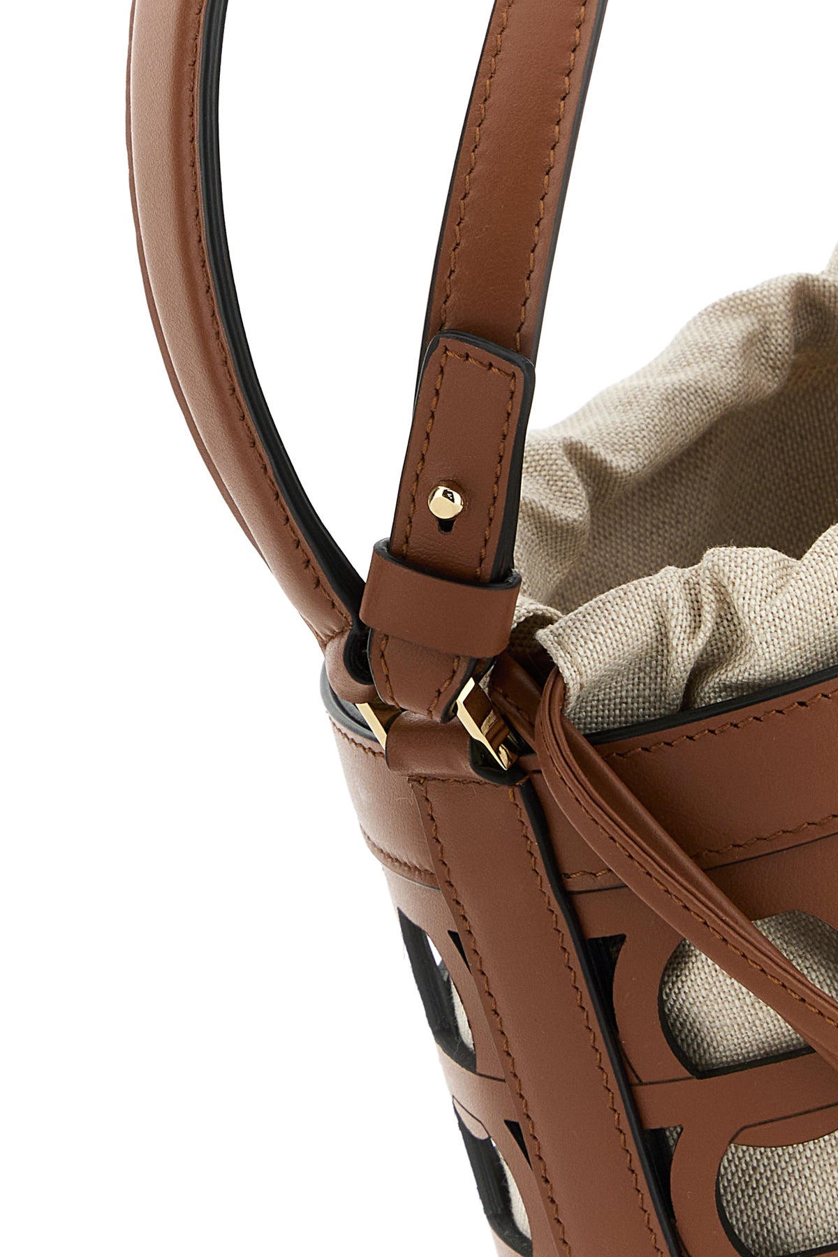 Borsa a secchiello realizzata in pelle liscia caratterizzata da logo stampato laminato sulla parte frontale.