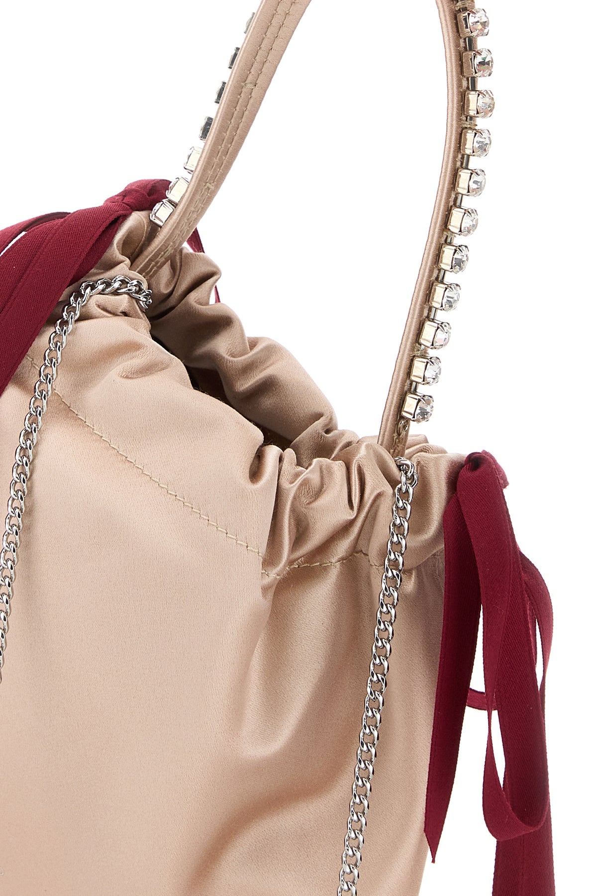 Borsa a secchiello realizzata in raso caratterizzata da logo stampato laminato sulla parte frontale.