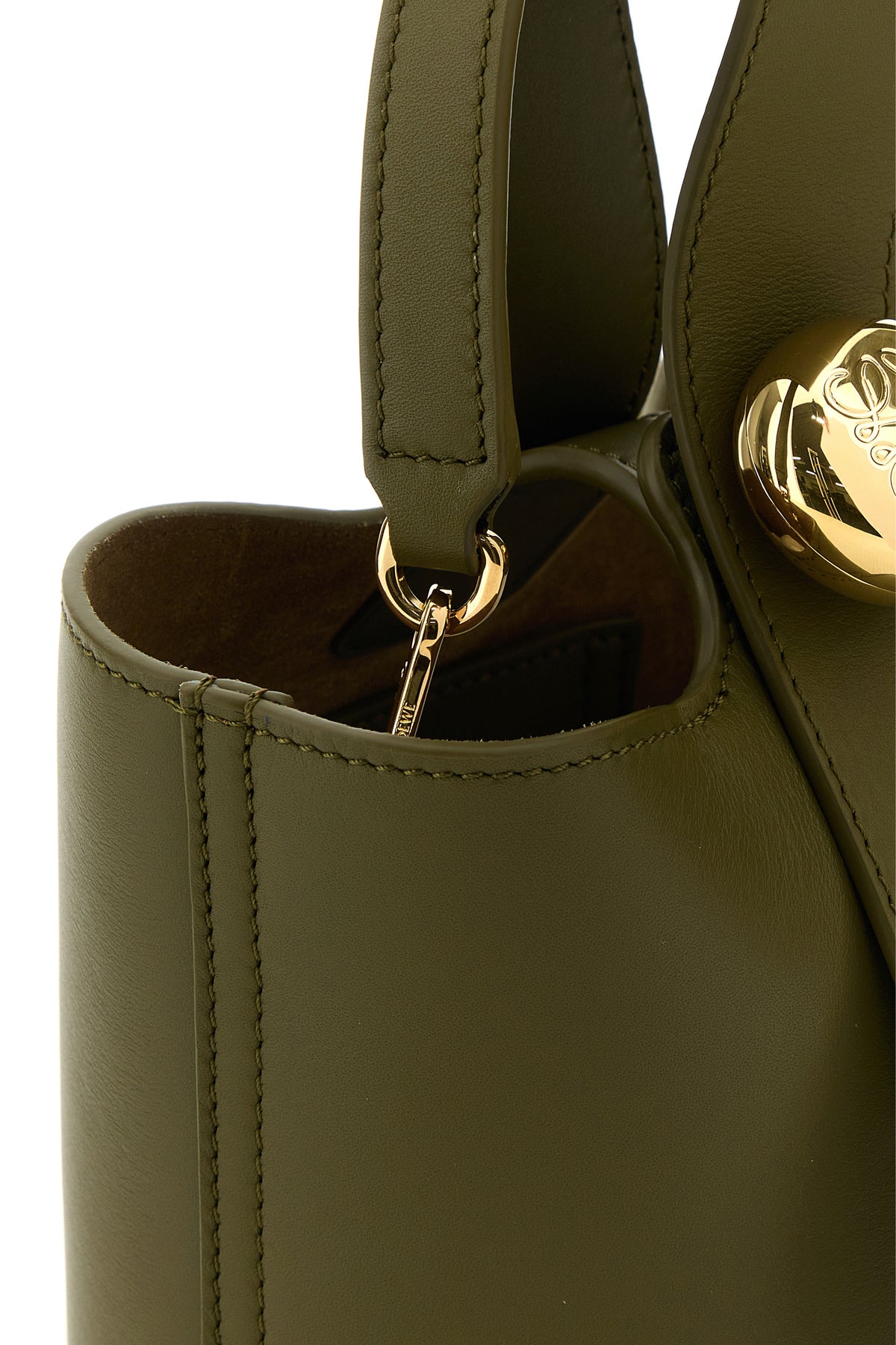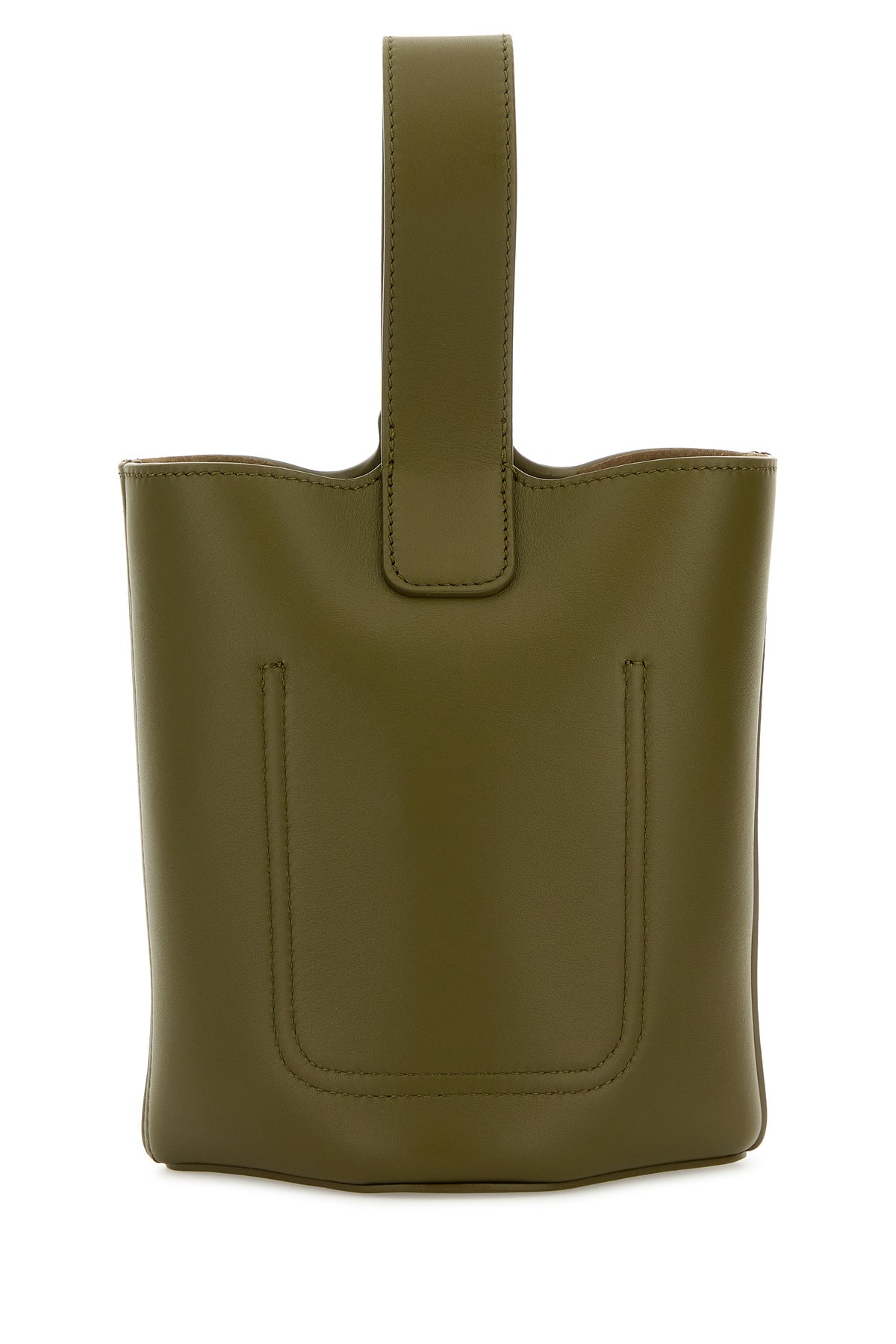 Borsa a secchiello Pebble mini in pelle verde oliva