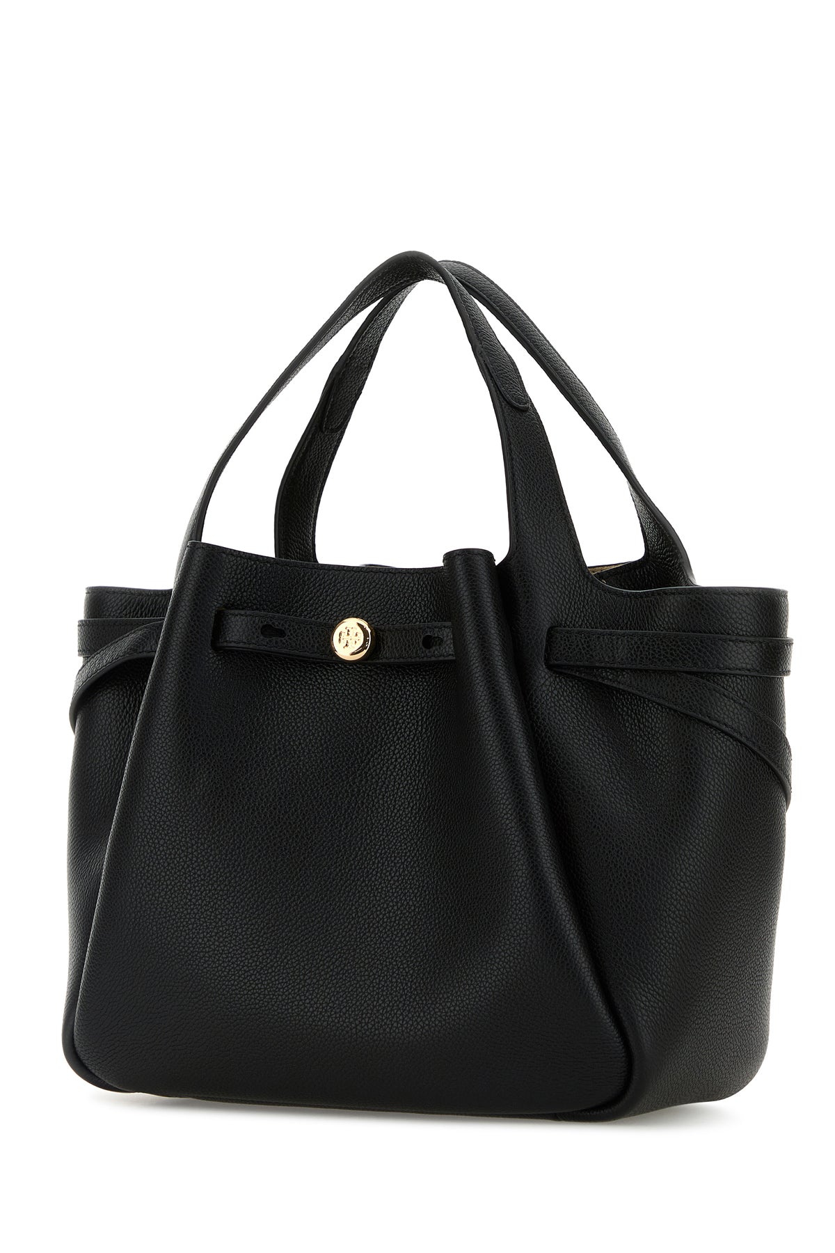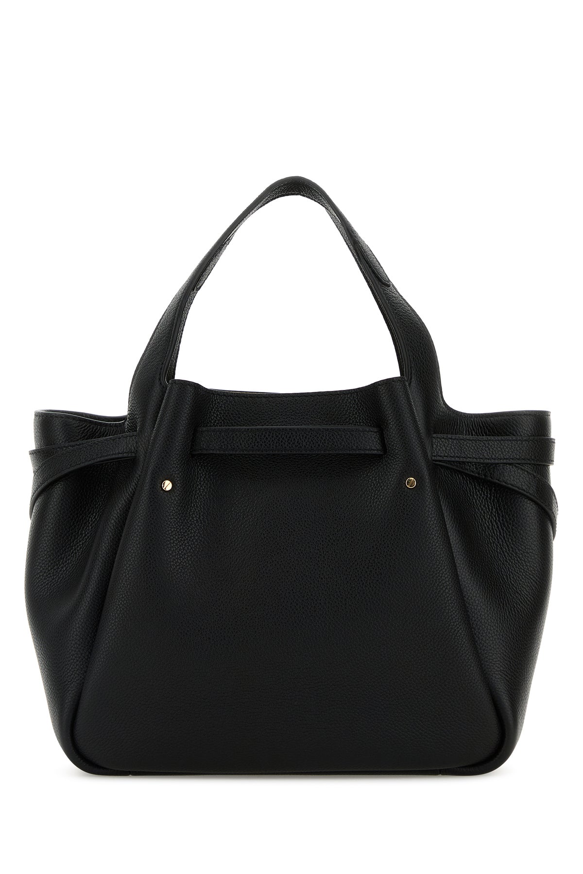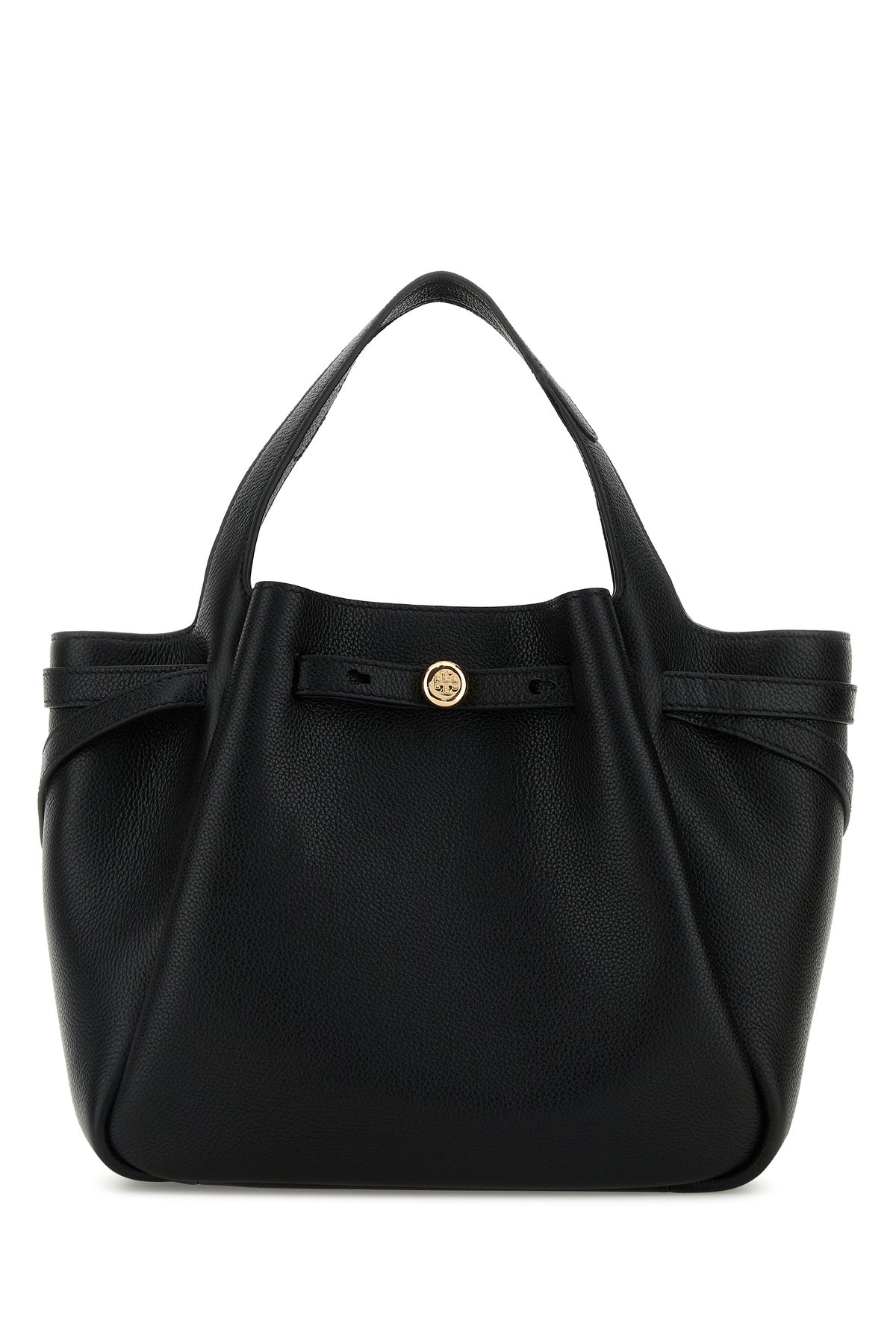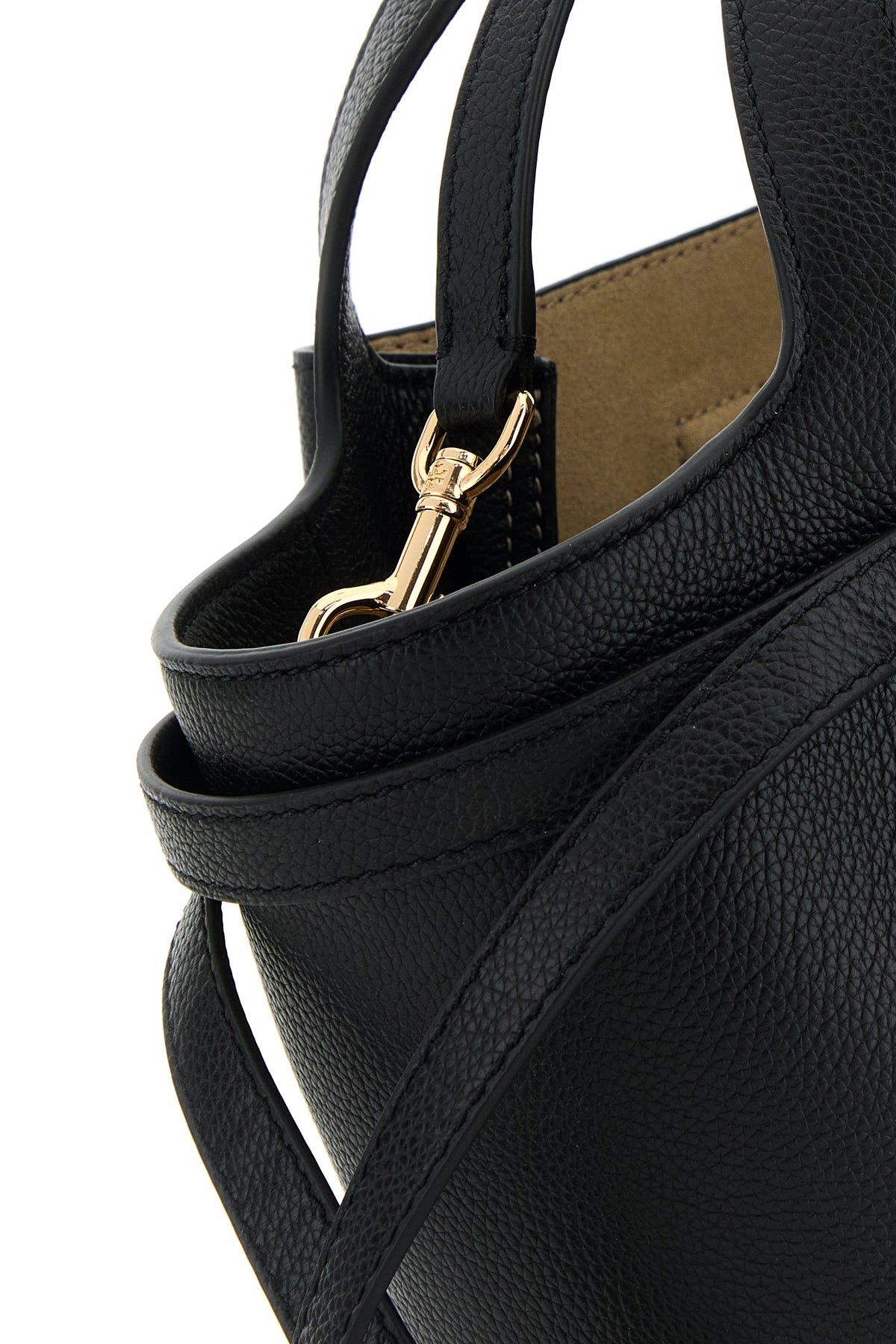 Borsa a secchiello realizzata in pelle martellata arricchita da cinturini di compressione laterali.