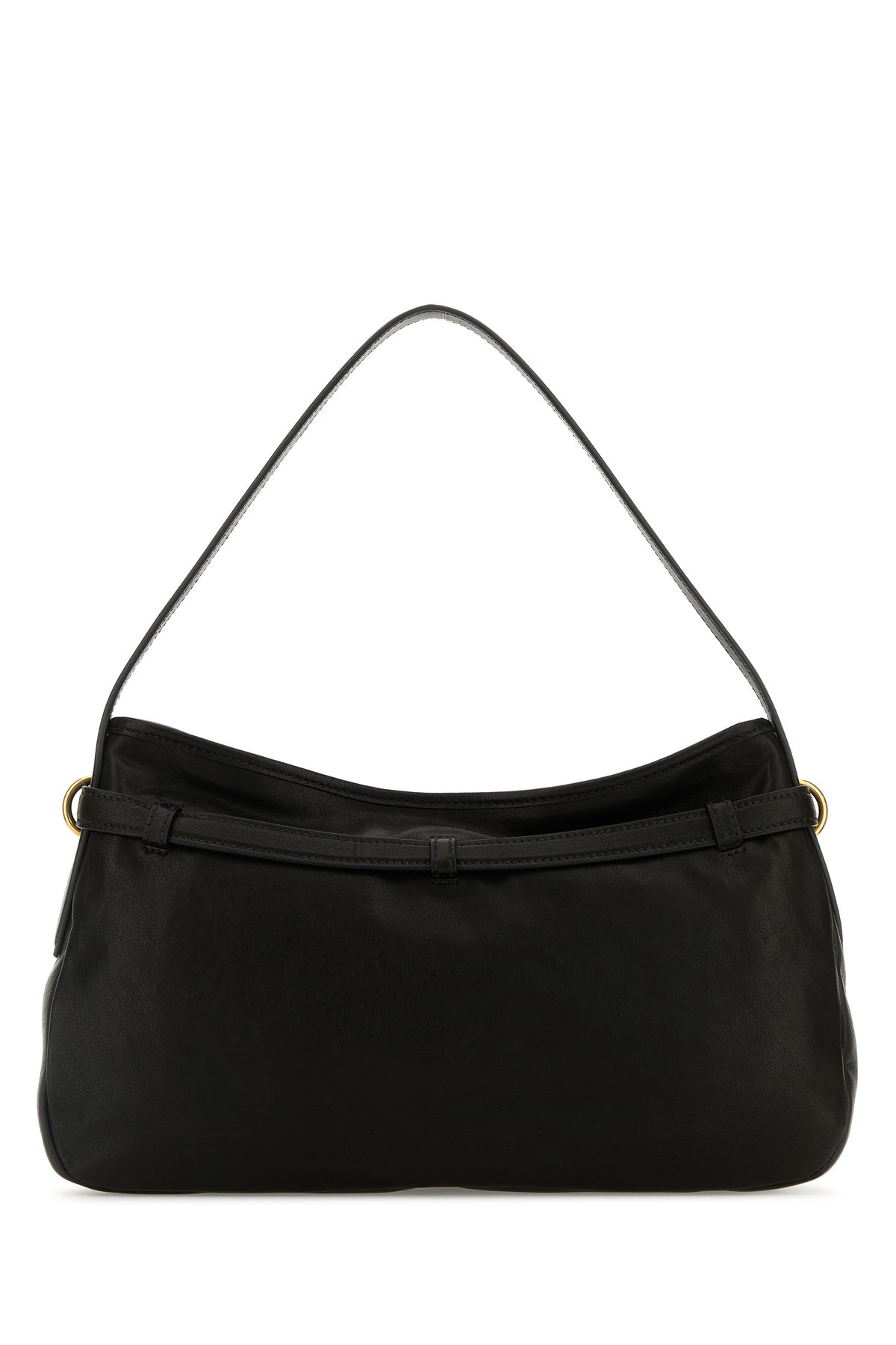 Borsa a spalla realizzata in nappa leggermente martellata caratterizza da logo in rilievo sulla parte frontale.