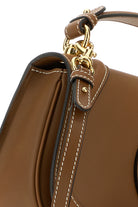 Borsa a spalla realizzata in pelle liscia arricchita da applicazione GG in pelle tonale sulla parte frontale.