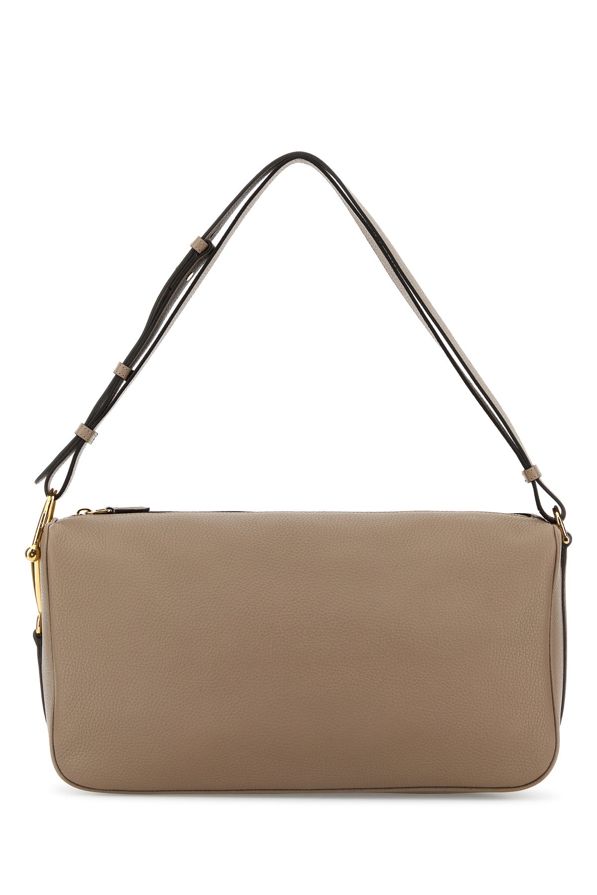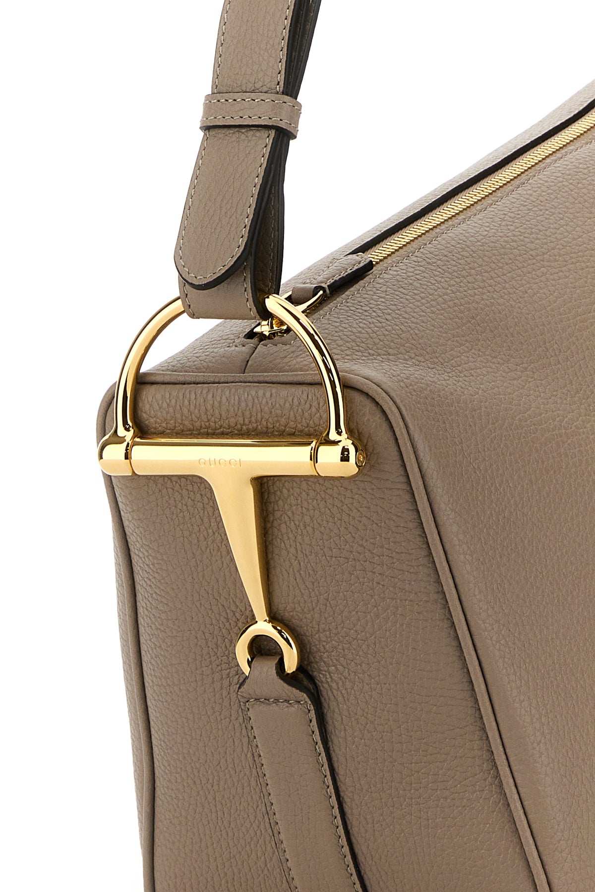 Borsa a spalla Gucci Half Horsebit in pelle tortora