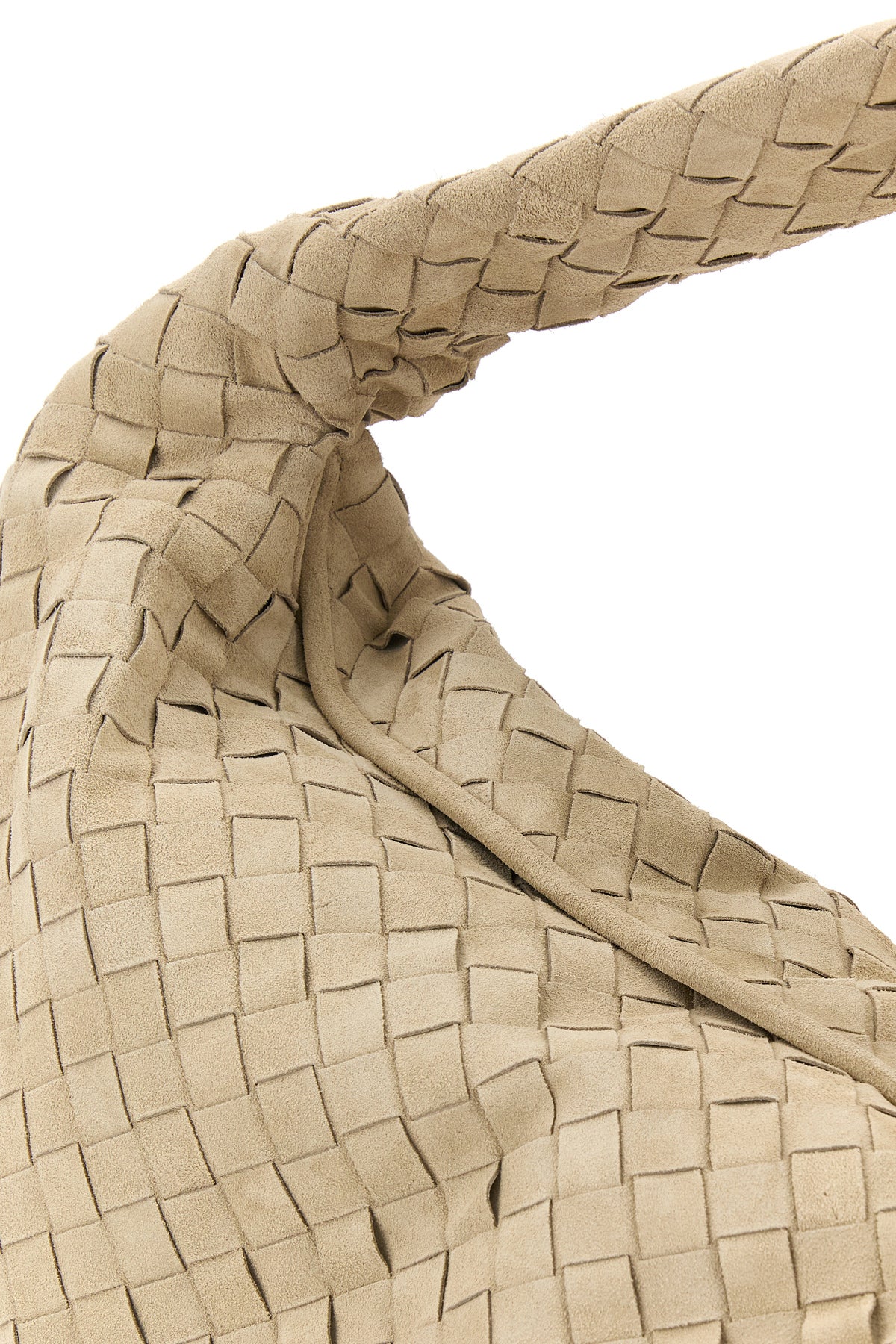 Borsa a spalla realizzata in pelle scamosciata caratterizzata da iconico motivo Intrecciato su tutta la superficie.