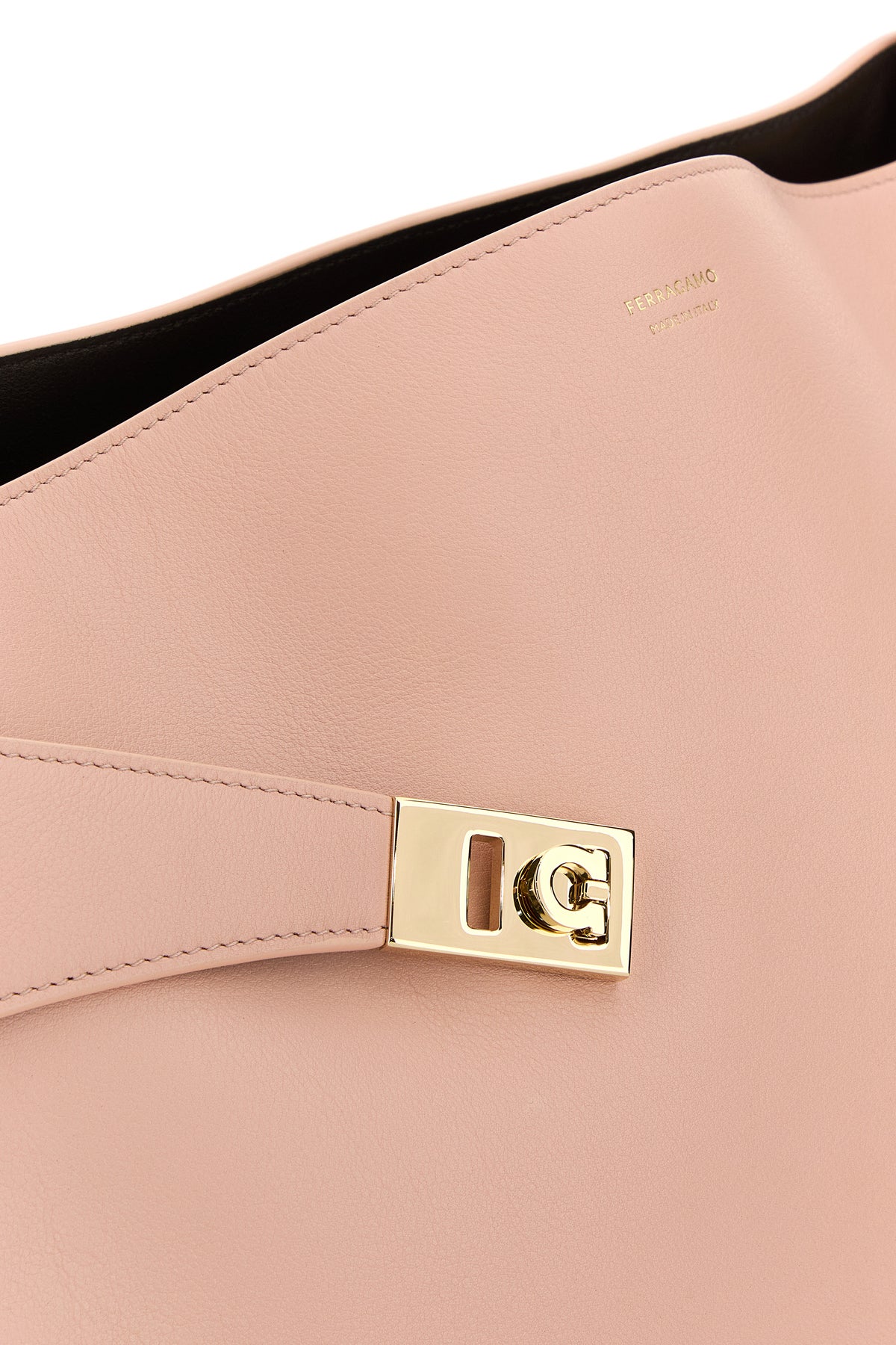 Borsa a spalla realizzata in pelle di vitello caratterizzata da logo stampato laminato sulla parte frontale arricchita da cinturini in pelle tonale con dettagli Gancini in metallo sulla parte frontale.