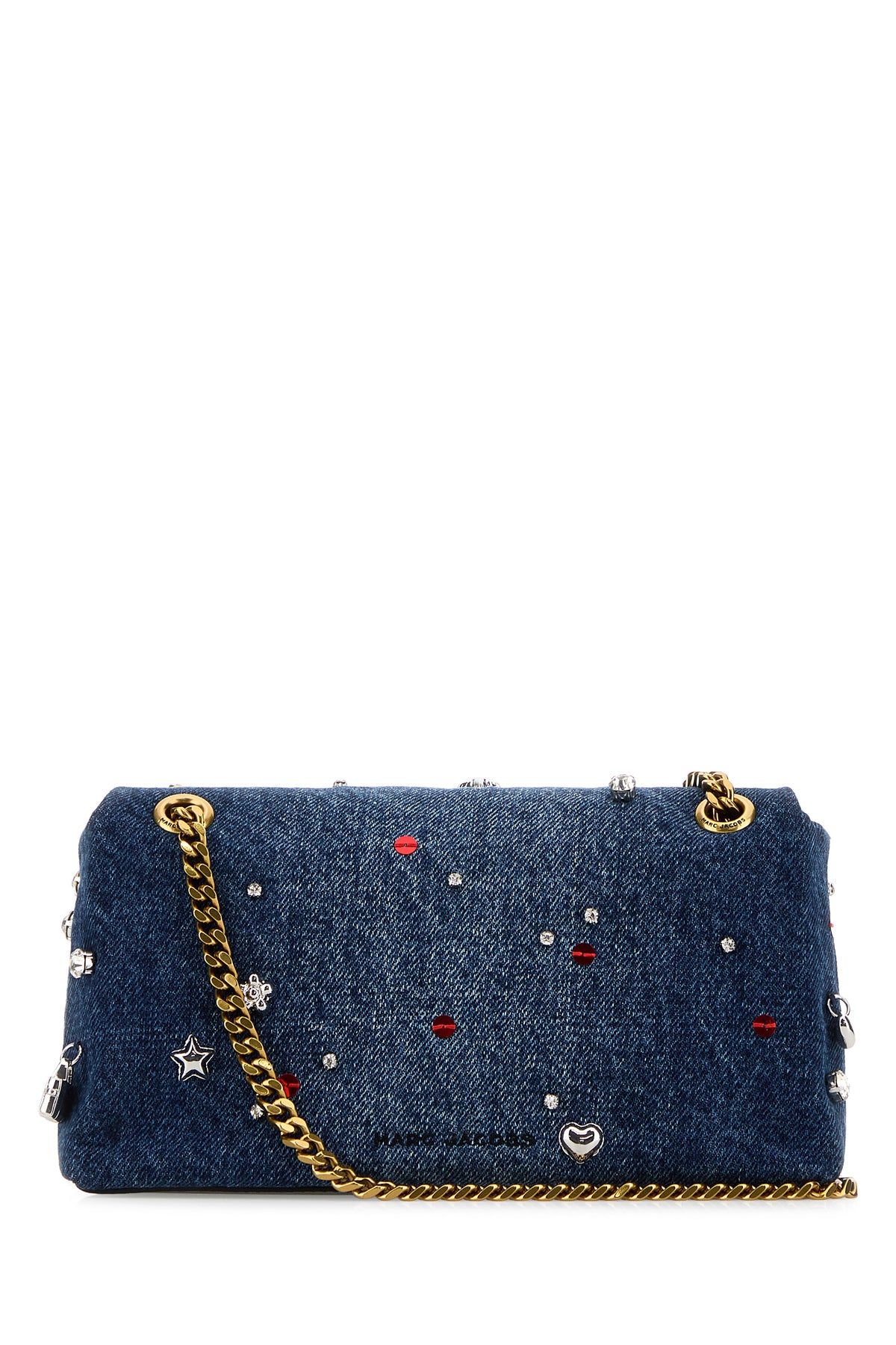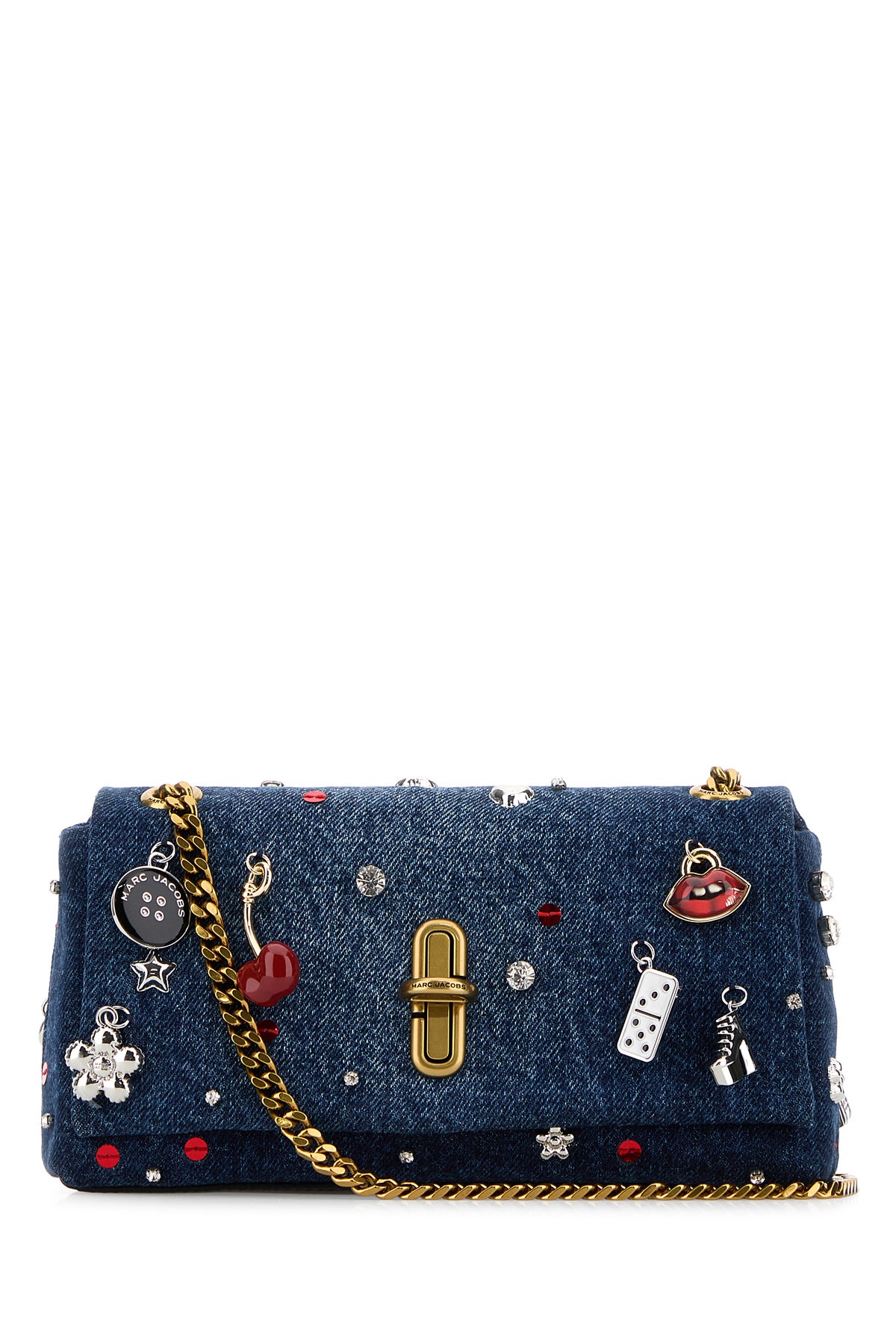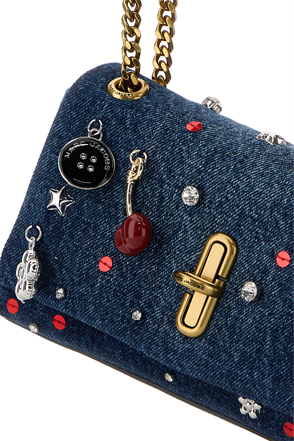 Borsa a spalla realizzata in denim arricchita da particolari charms su tutta la superficie.
