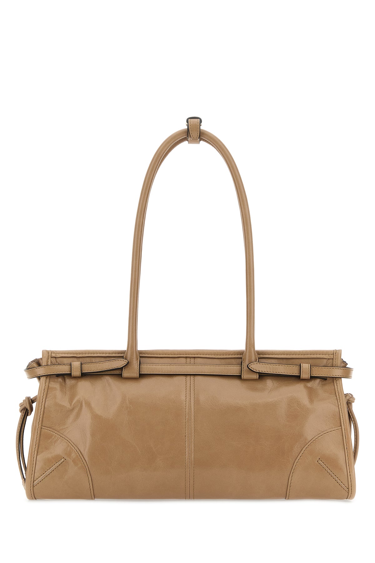 Borsa a spalla realizzata in pelle arricchita da iconico triangolo logato sulla parte frontale.