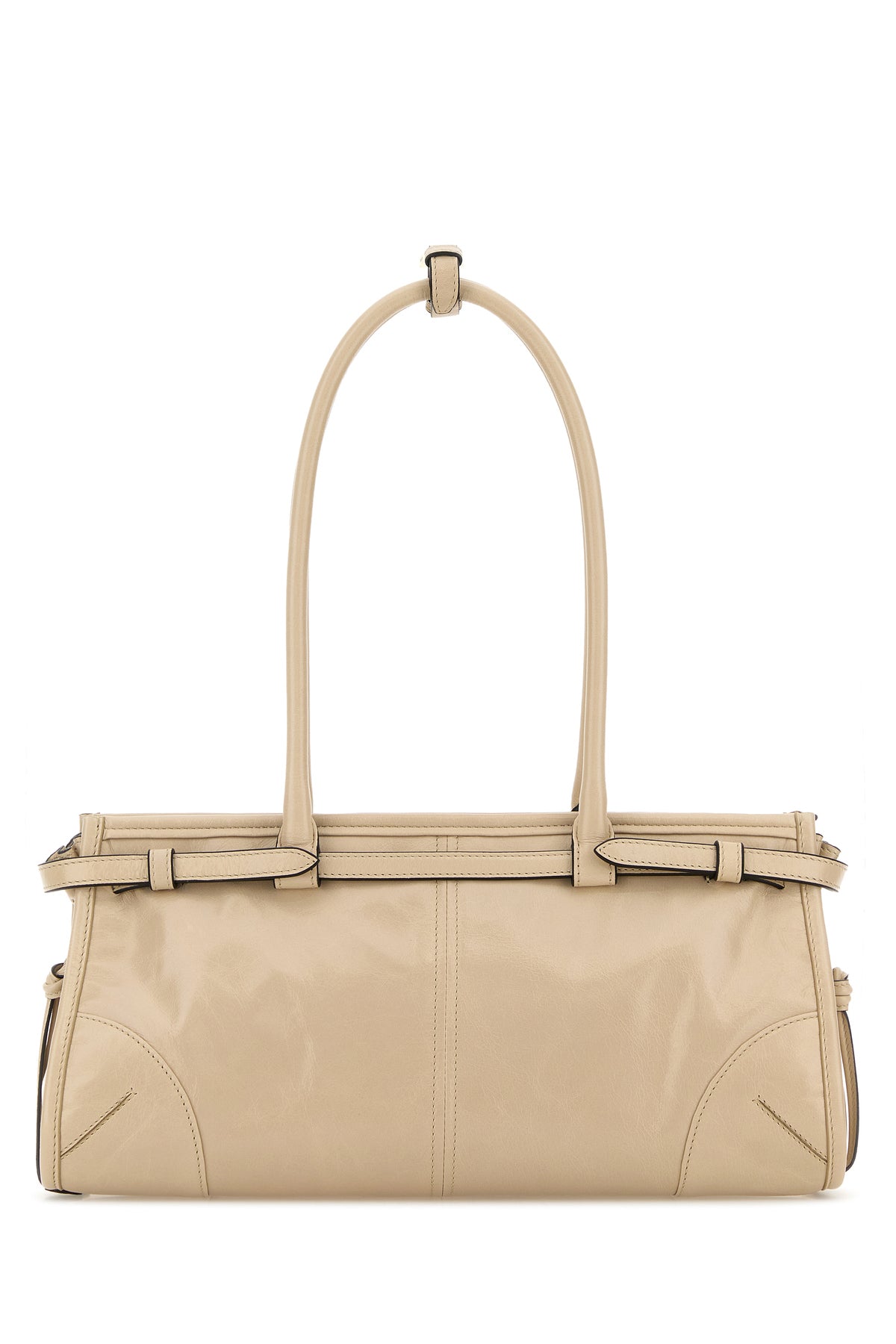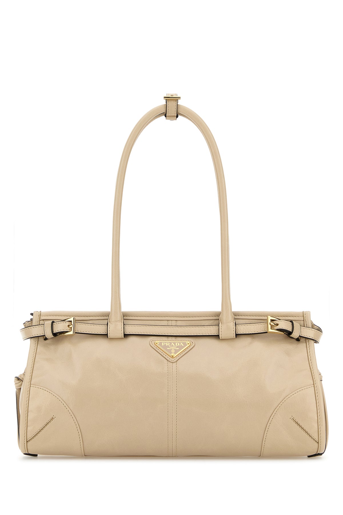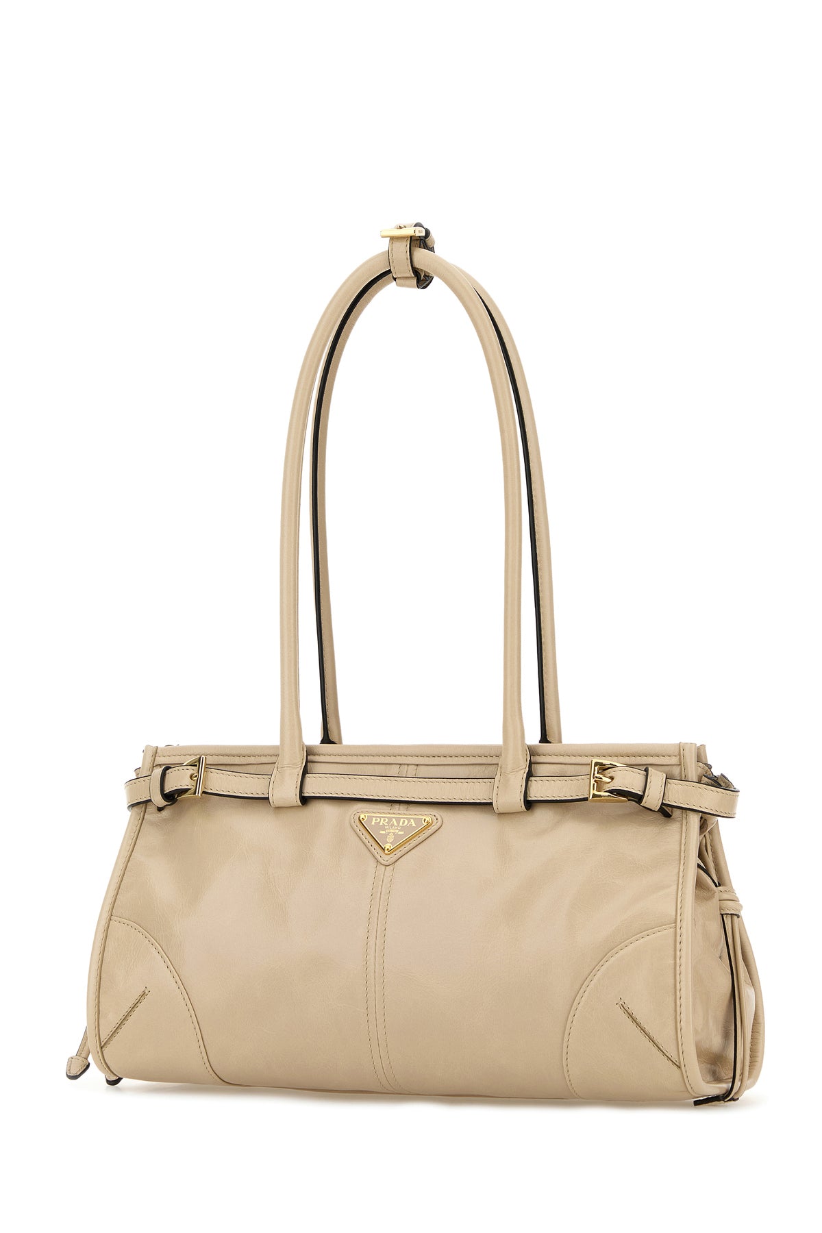 Borsa a spalla realizzata in pelle arricchita da iconico triangolo logato sulla parte frontale.