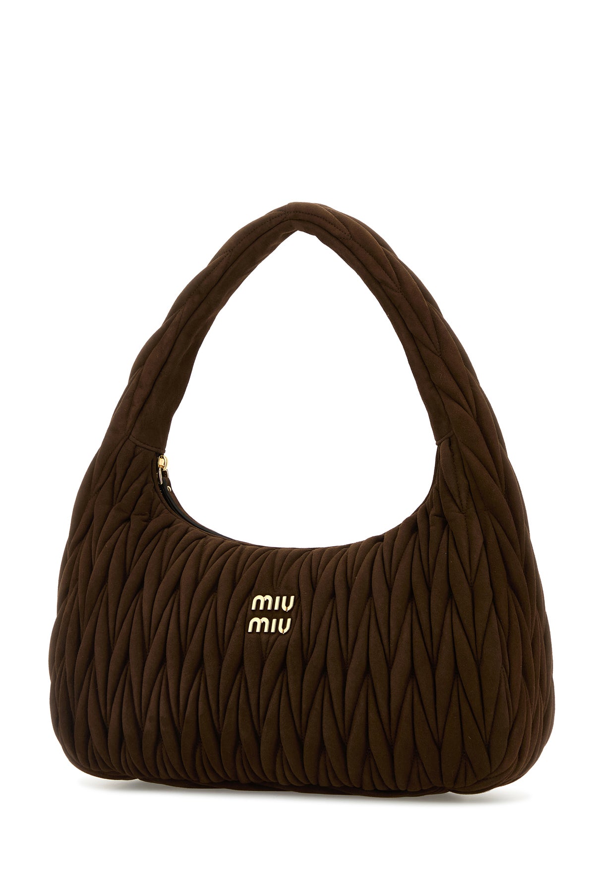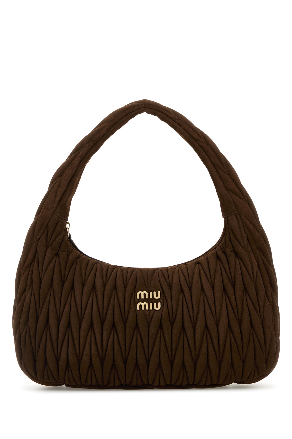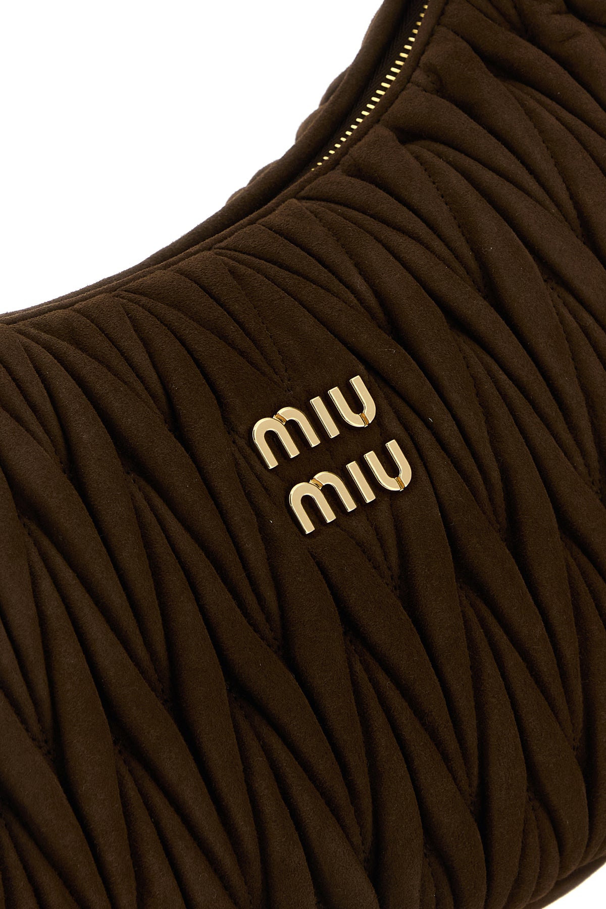 Borsa a spalla realizzata in pelle scamosciata matelassé arricchita da logo in lettere metalliche sulla parte frontale.