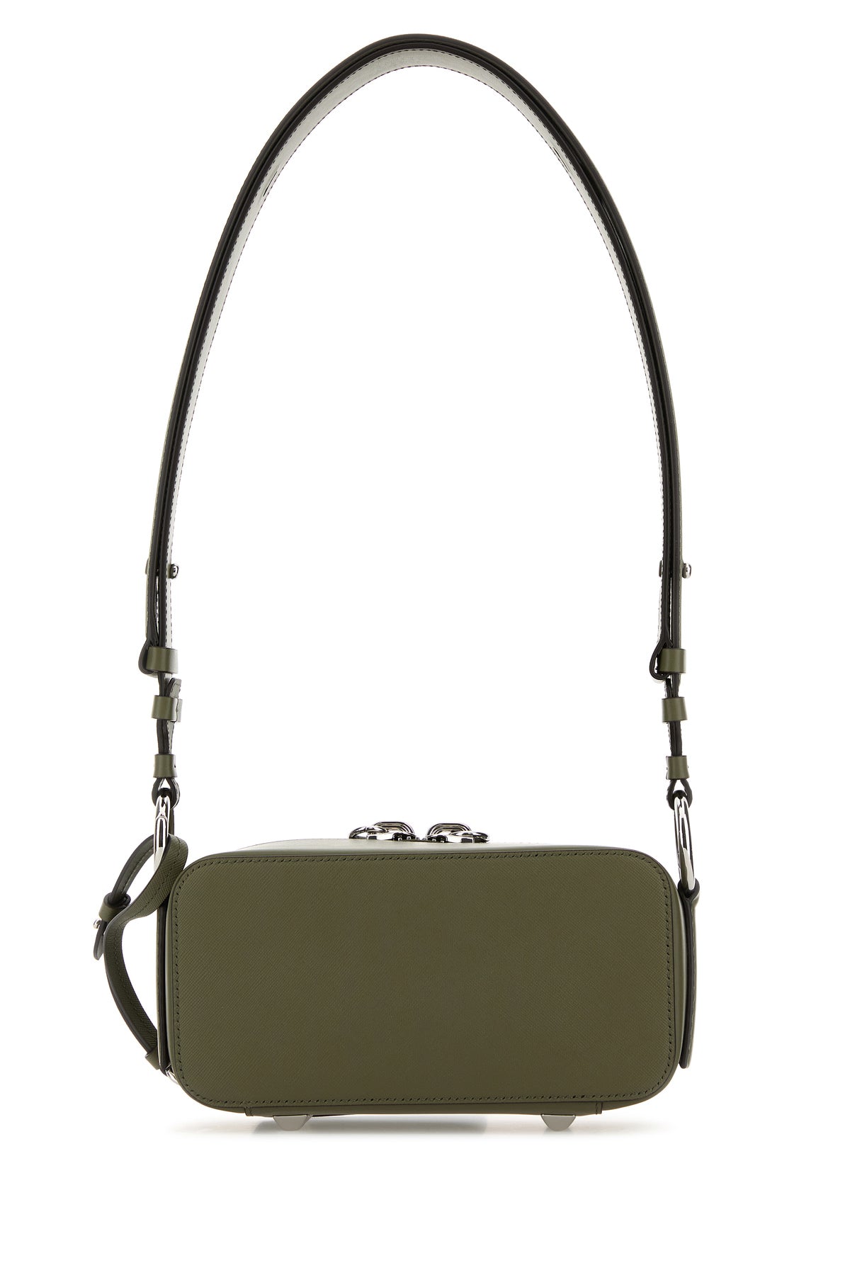 Borsa a spalla realizzata in pelle caratterizzata da iconica cucitura a contrasto sulla parte frontale arricchita da accessorio portachiavi in pelle amovibile.