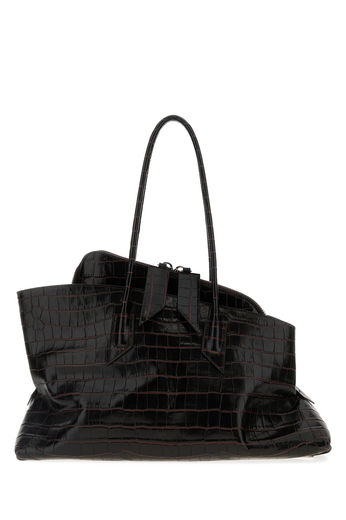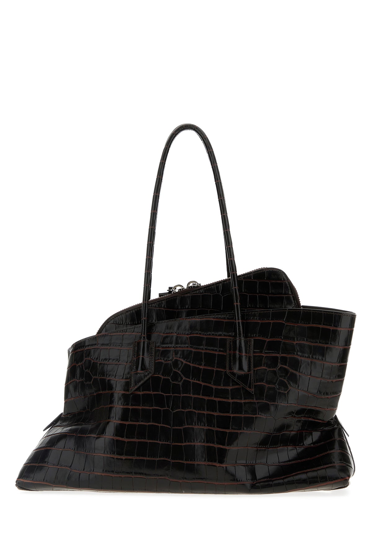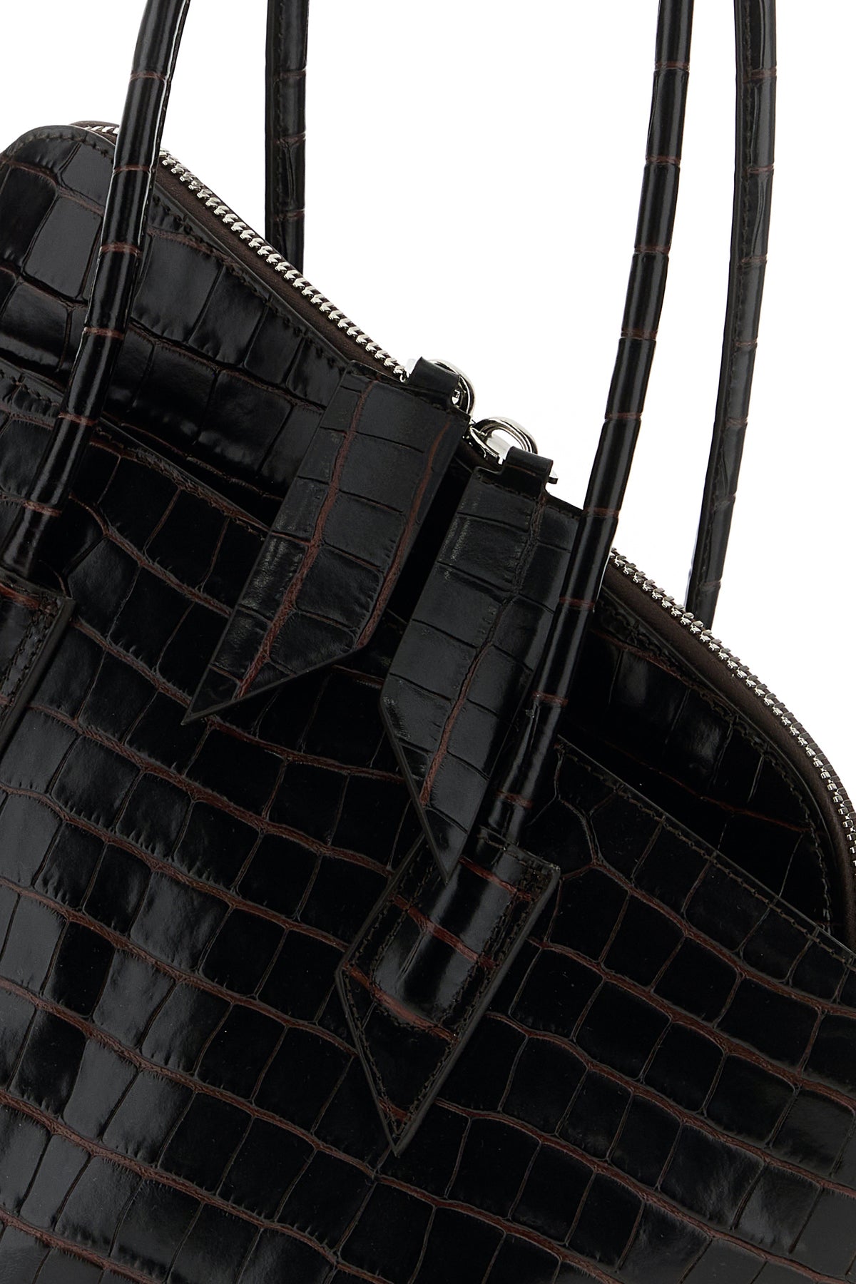 Borsa a spalla realizzata in pelle di vitello impressa a motivo coccodrillo caratterizzata da logo impresso sulla parte frontale.