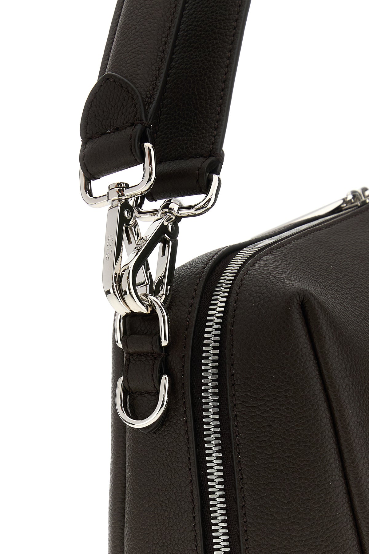 Borsa a spalla realizzata in pelle di vitello martellata arricchita da dettaglio metallico FF sui lati.