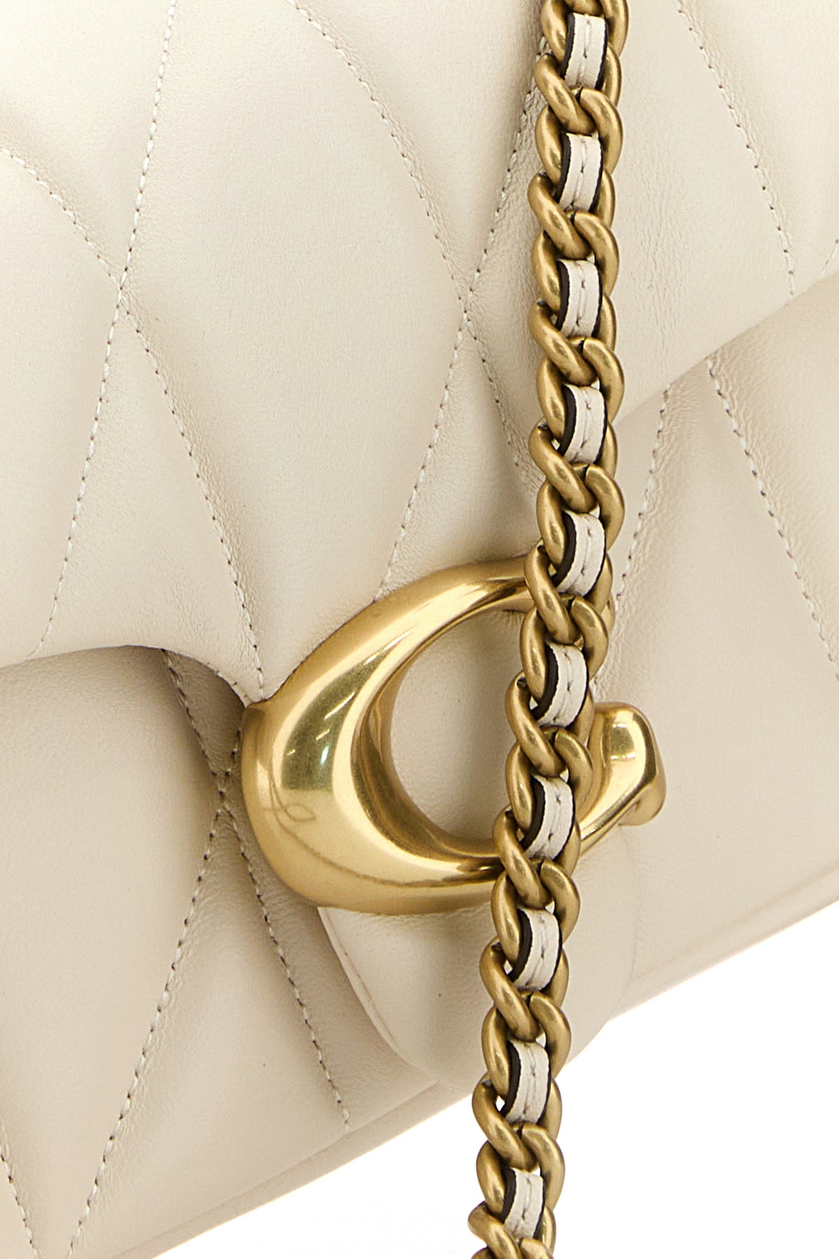 Borsa a spalla realizzata in pelle trapuntata arricchita da dettaglio metallico logato sulla parte frontale.