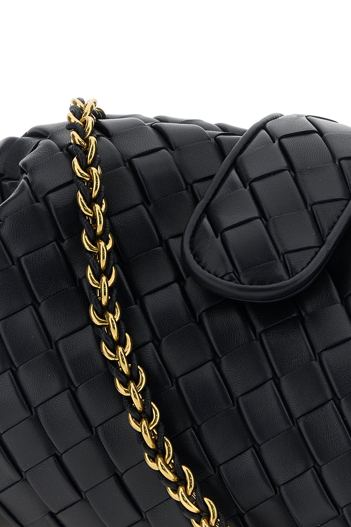 Borsa a spalla realizzata in pelle di vitello caratterizzata da iconico motivo Intrecciato su tutta la superficie.