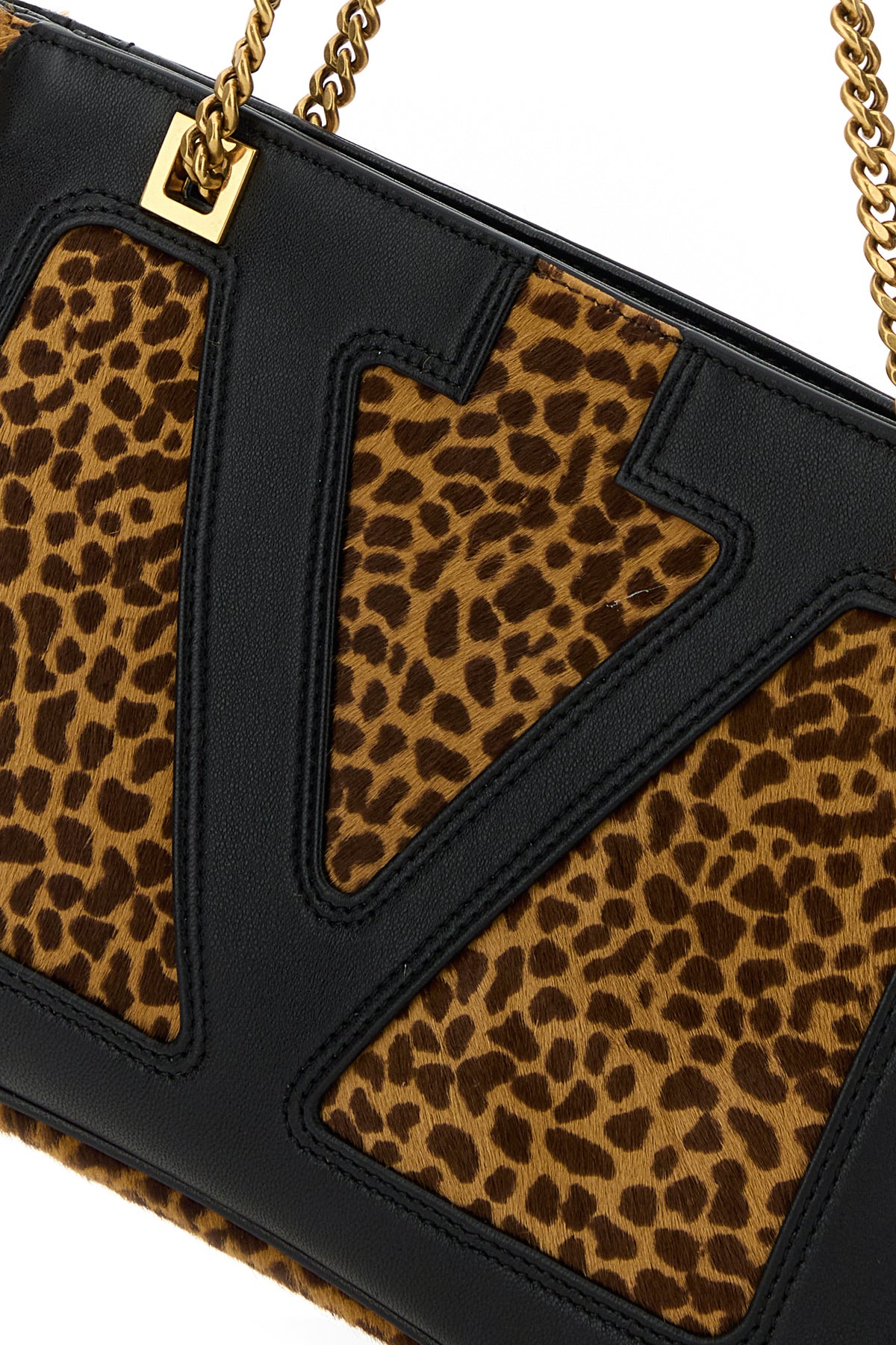 Borsa a spalla realizzata in cavallino caratterizzata da stampa animalier su tutta la superficie arricchita da applicazione VLogo Signature sulla parte frontale.