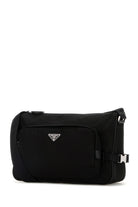 Borsa a tracolla realizzata in Re-Nylon arricchita da iconico triangolo metallico logato sulla parte frontale.