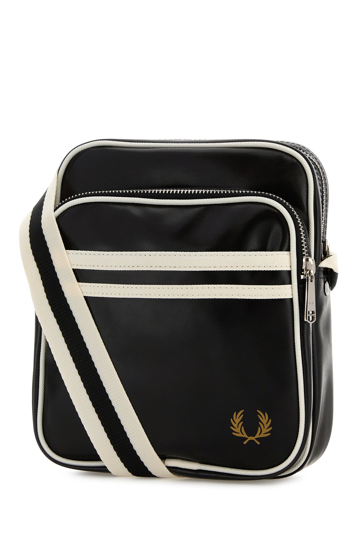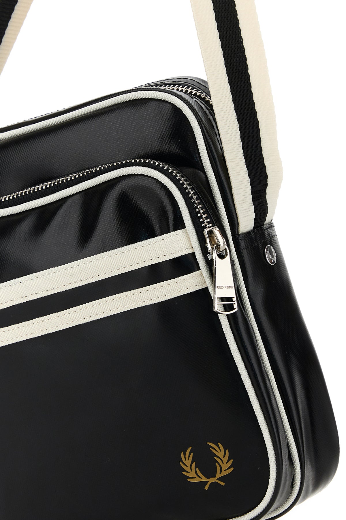 Borsa a tracolla realizzata in tela rivestita caratterizzata da logo stampato laminato sul fondo.