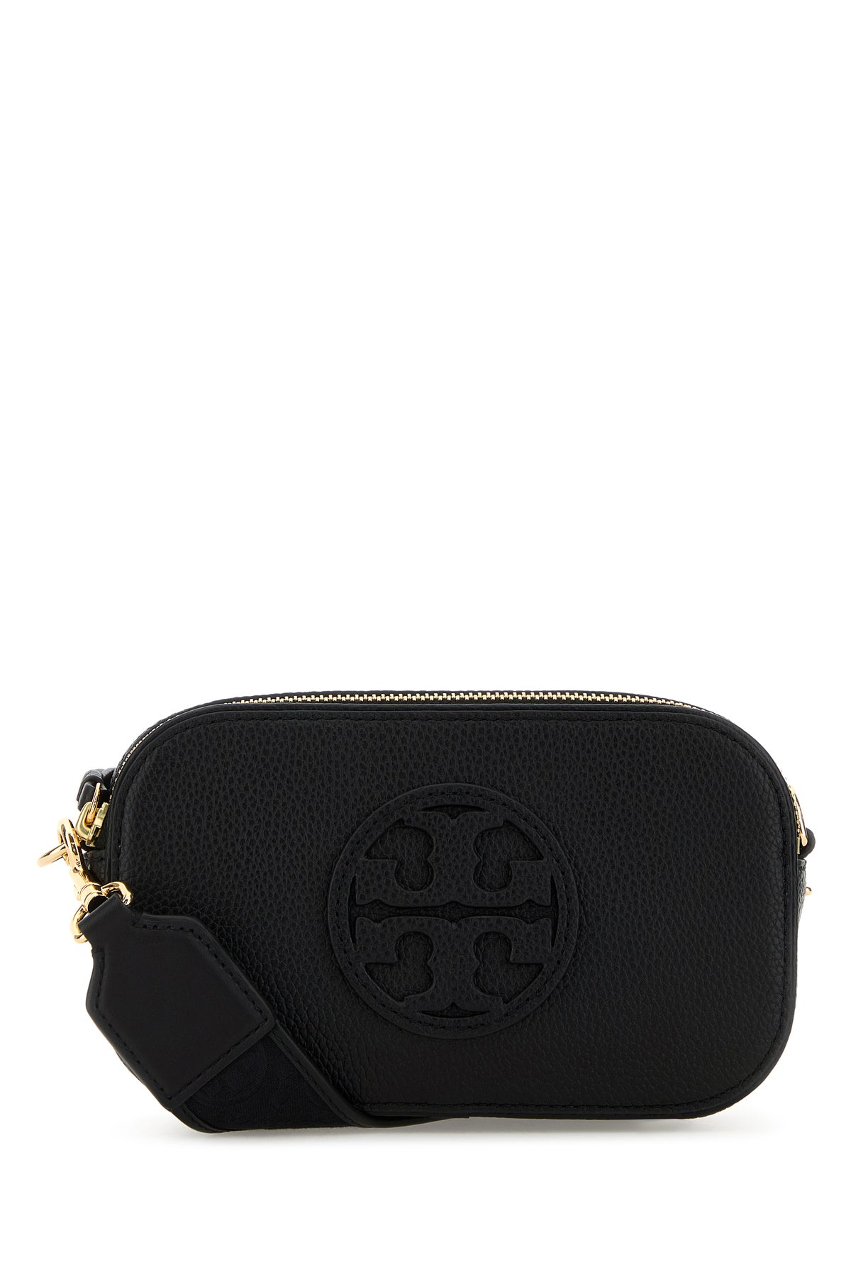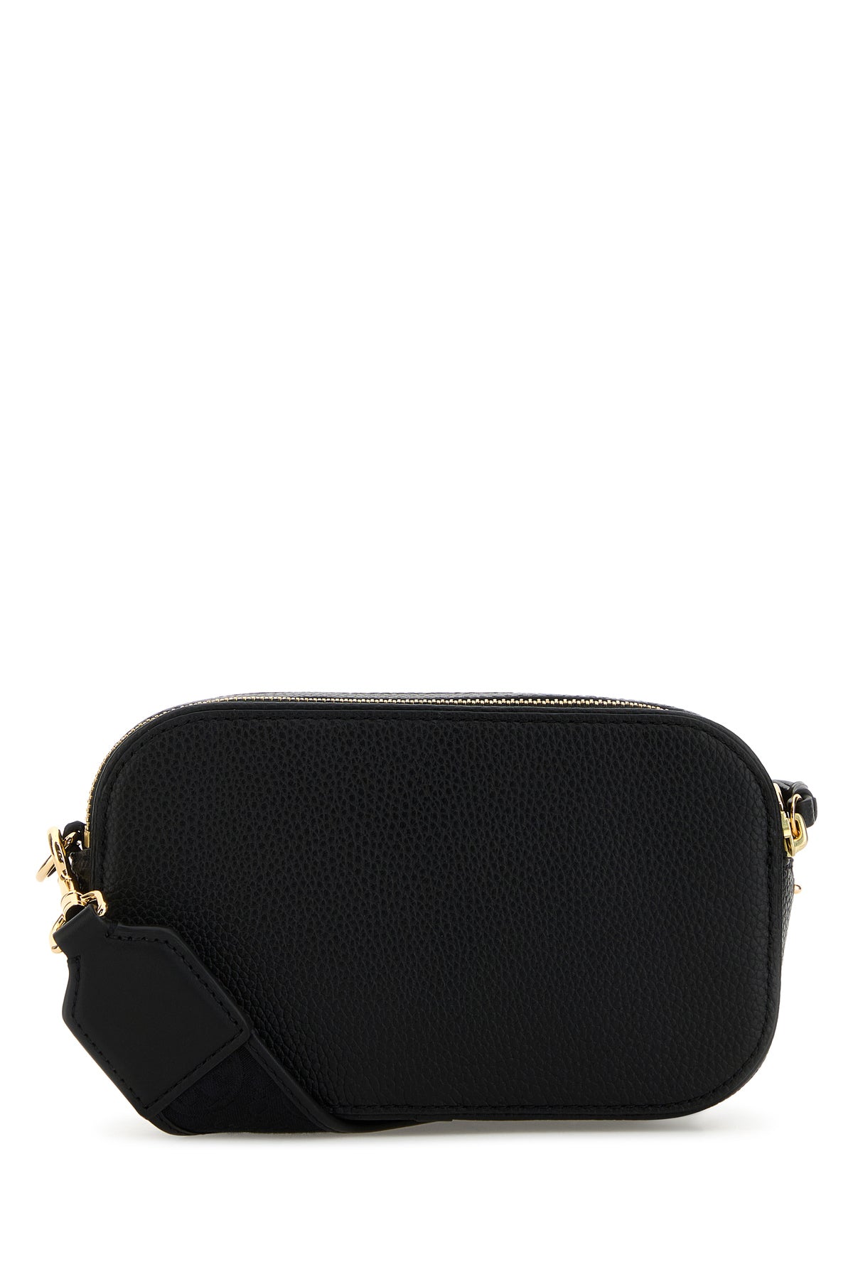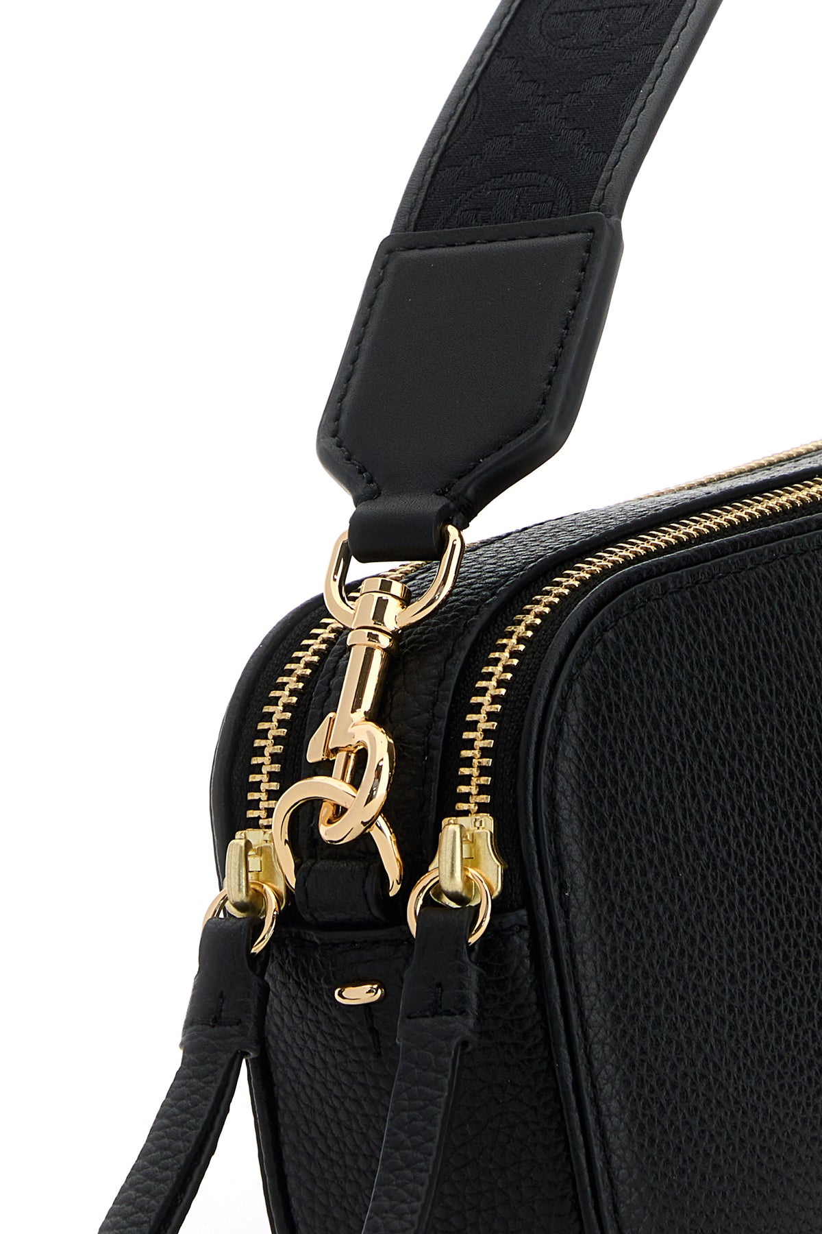 Borsa a tracolla realizzata in pelle martellata arricchita da applicazione logata in pelle tonale sulla parte frontale.