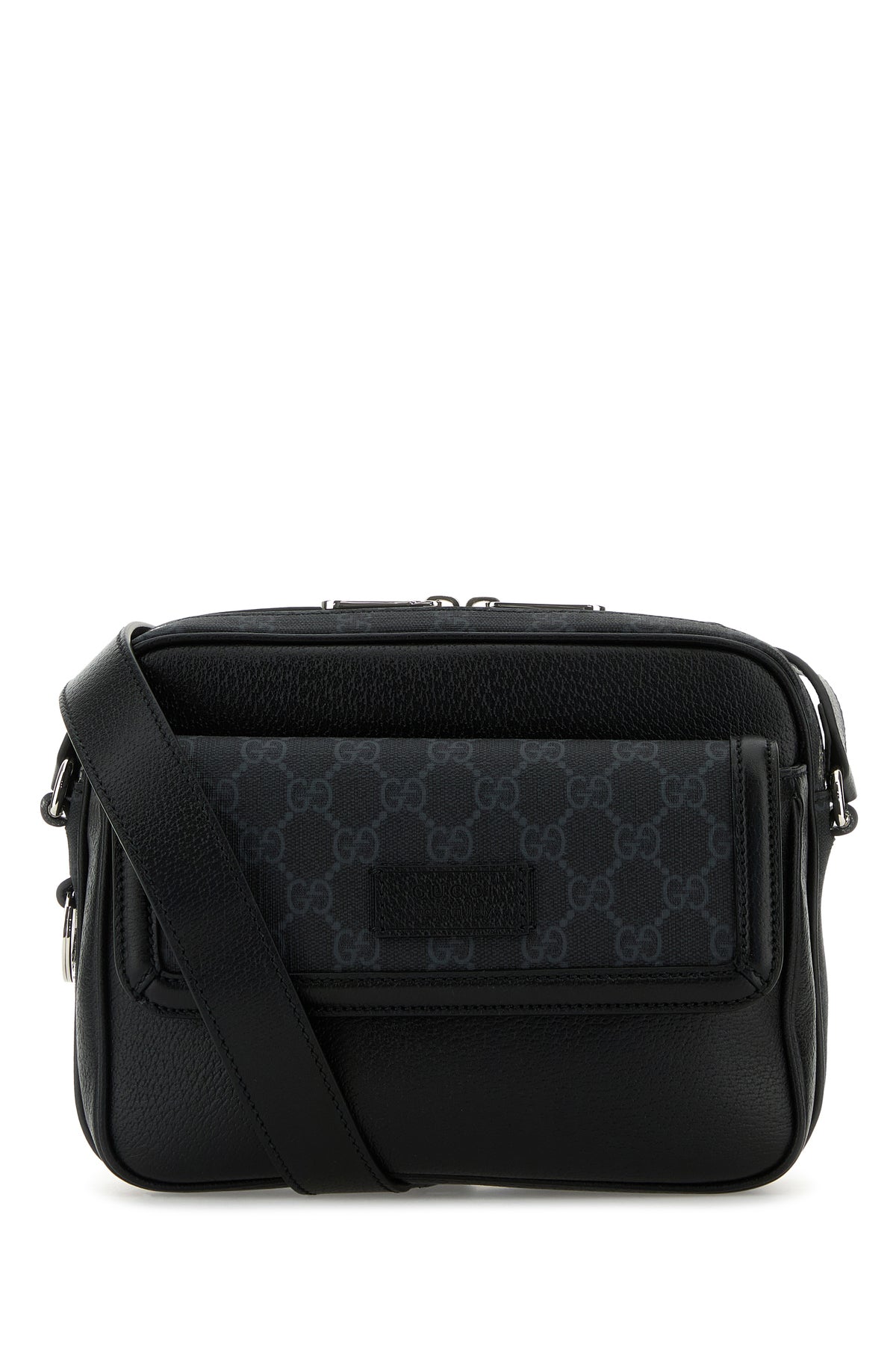 Borsa a tracolla realizzata in pelle con inserti in tessuto con stampa a motivo GG arricchita da etichetta logata sulla parte frontale.
