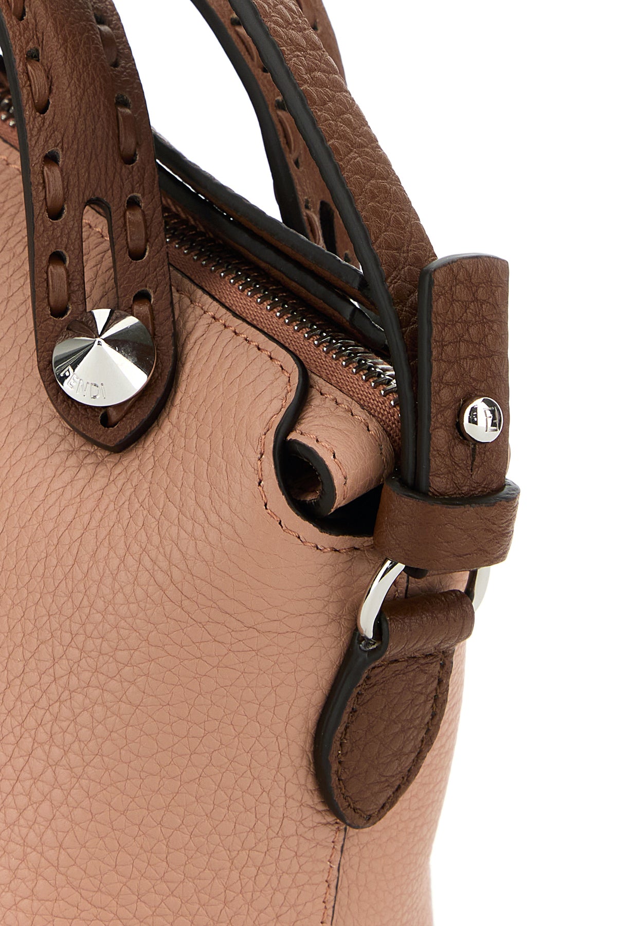 Borsa a mano realizzata in pelle di vitello martellata arricchita da accessorio portachiavi amovibile in pelle a contrasto.