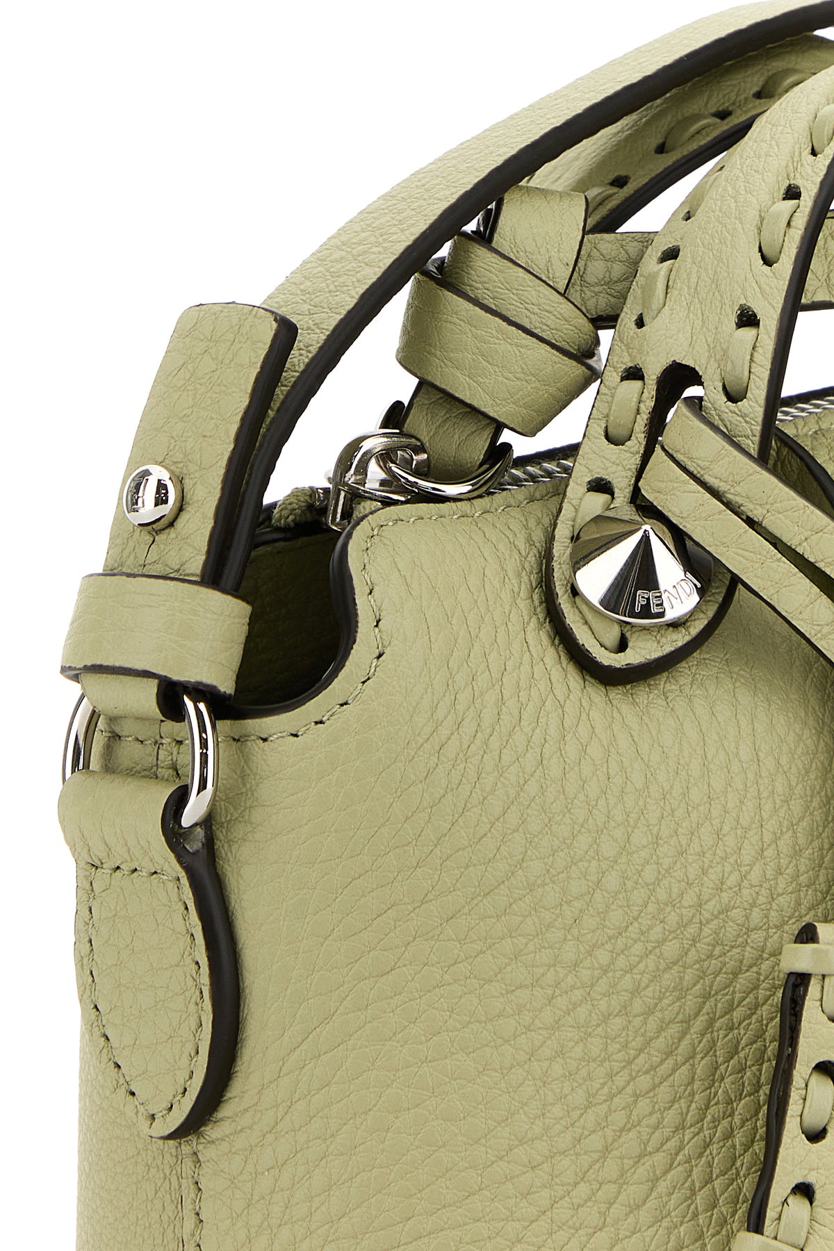 Borsa a mano realizzata in pelle di vitello martellata arricchita da accessorio portachiavi amovibile in pelle tonale.