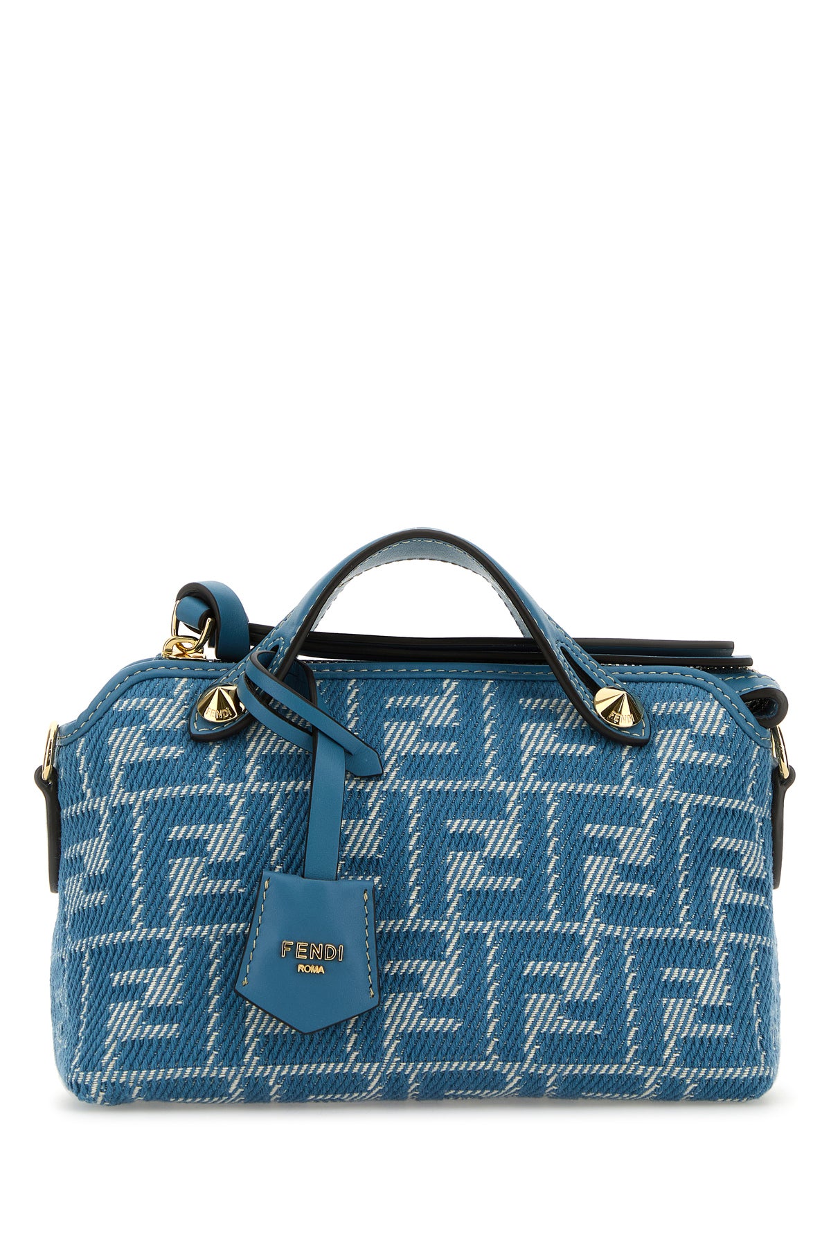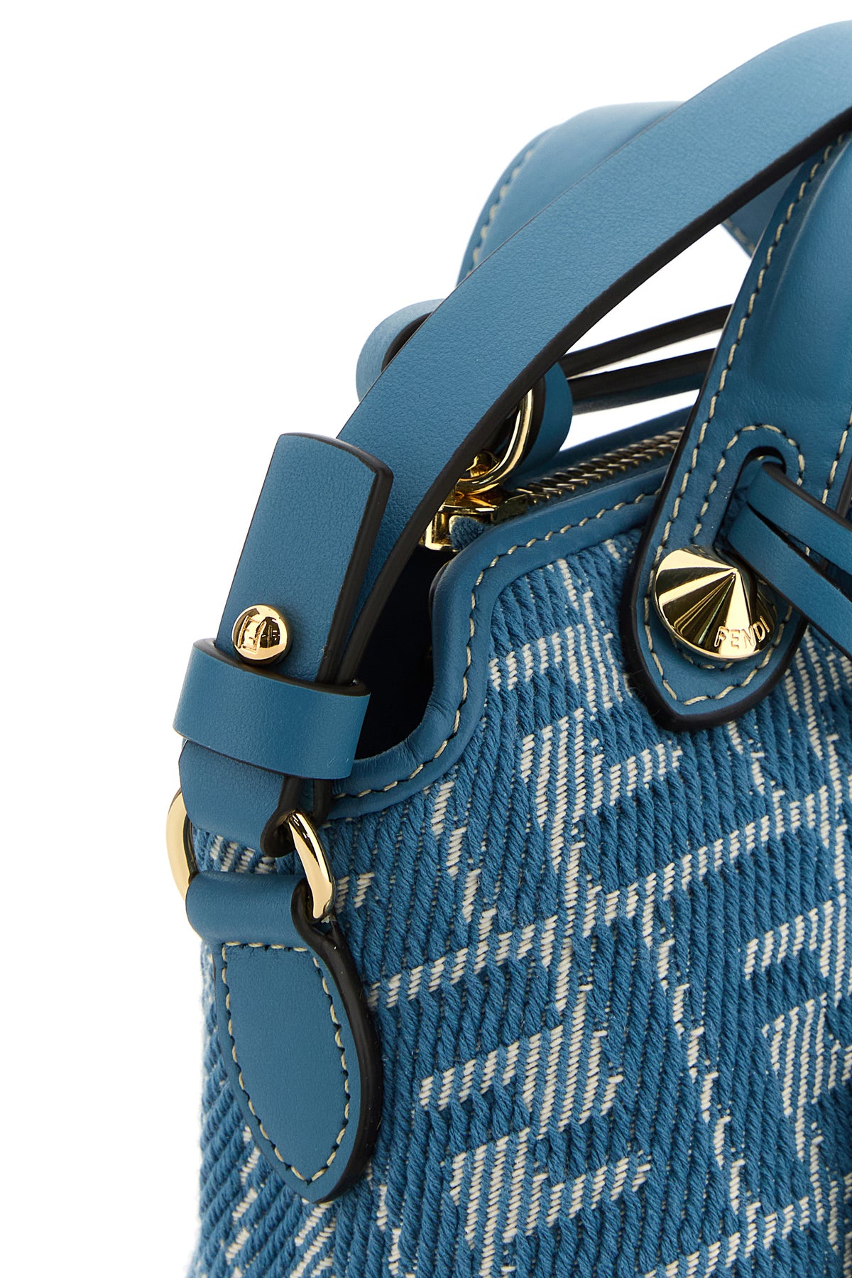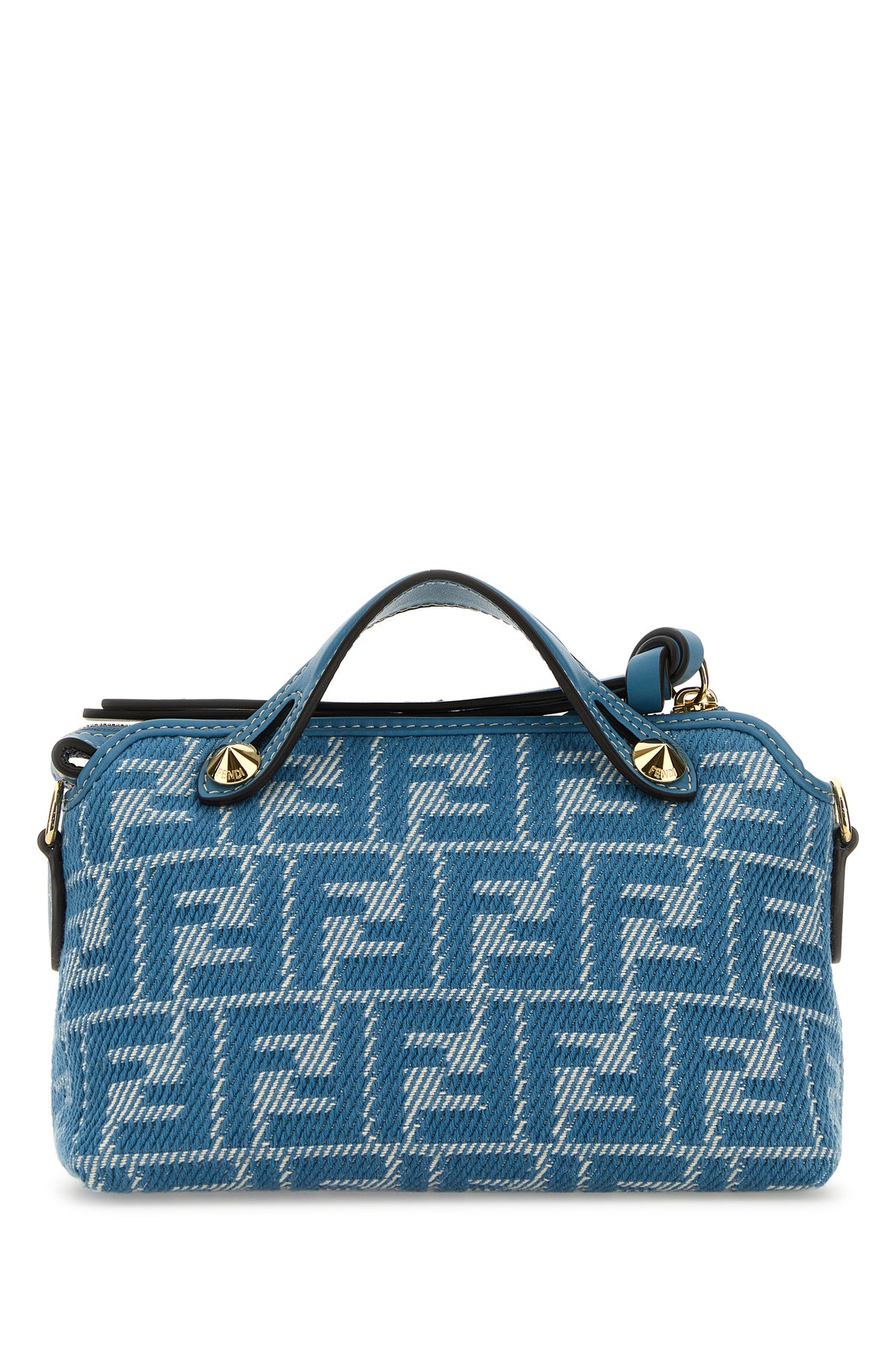 Borsa a mano realizzata in tessuto caratterizzata da ricamo FF su tutta la superficie arricchita da accessorio portachiavi amovibile in pelle tonale.