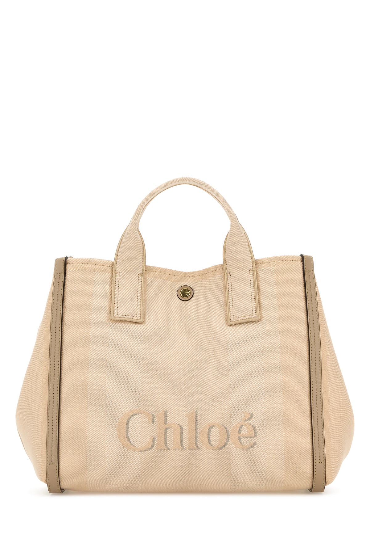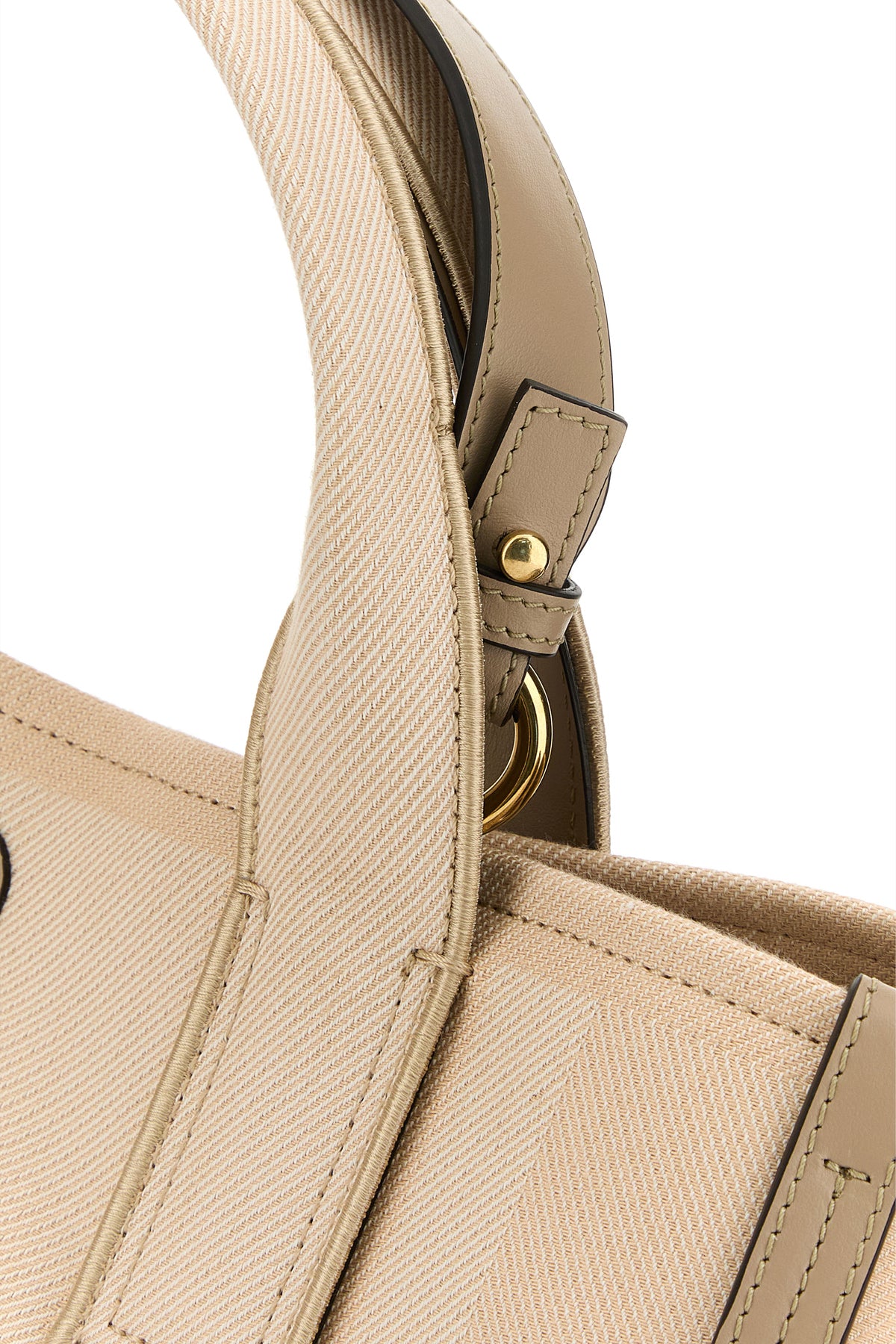 Borsa shopping realizzata in tela caratterizzata da ricamo logato sulla parte frontale.
