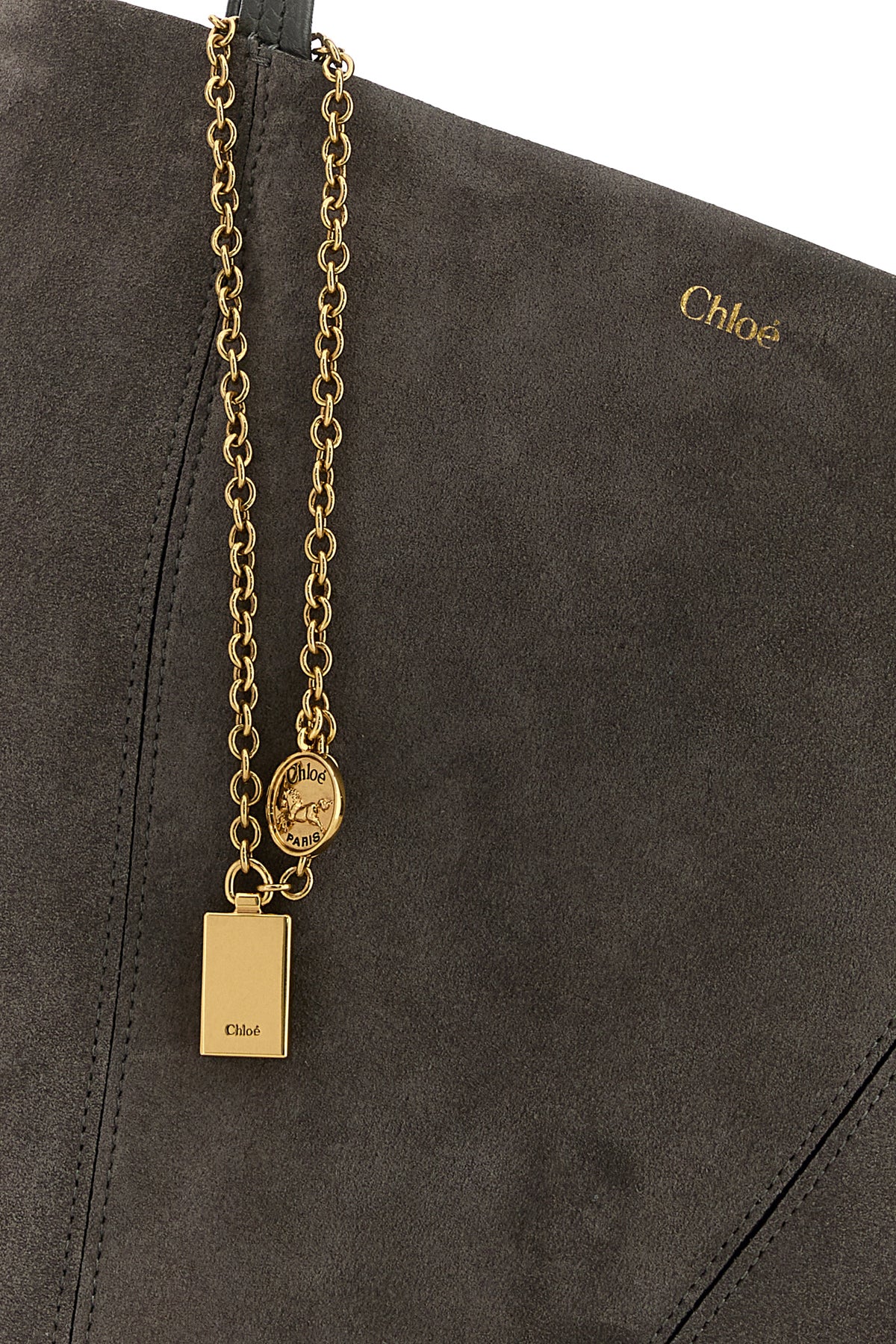 Borsa shopping Chloé Spin in pelle scamosciata grigio scuro