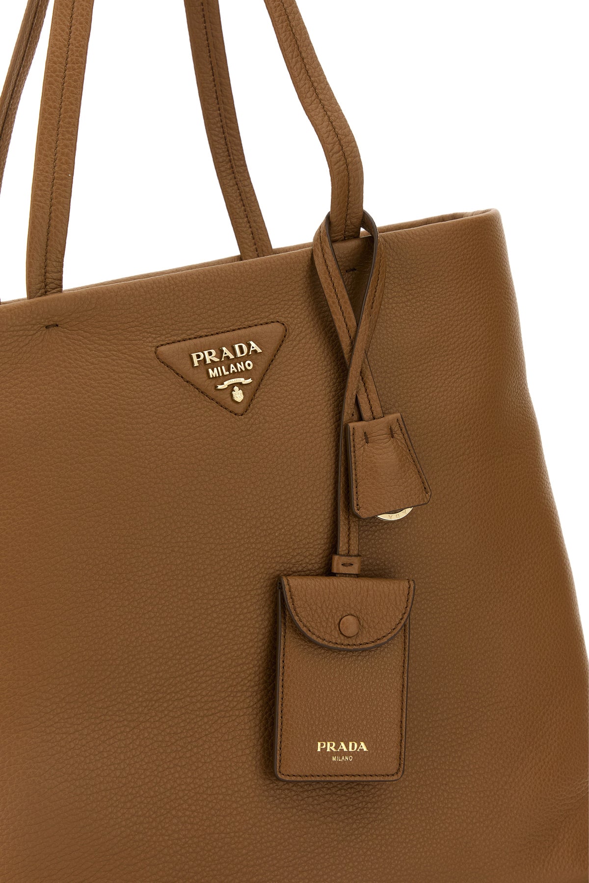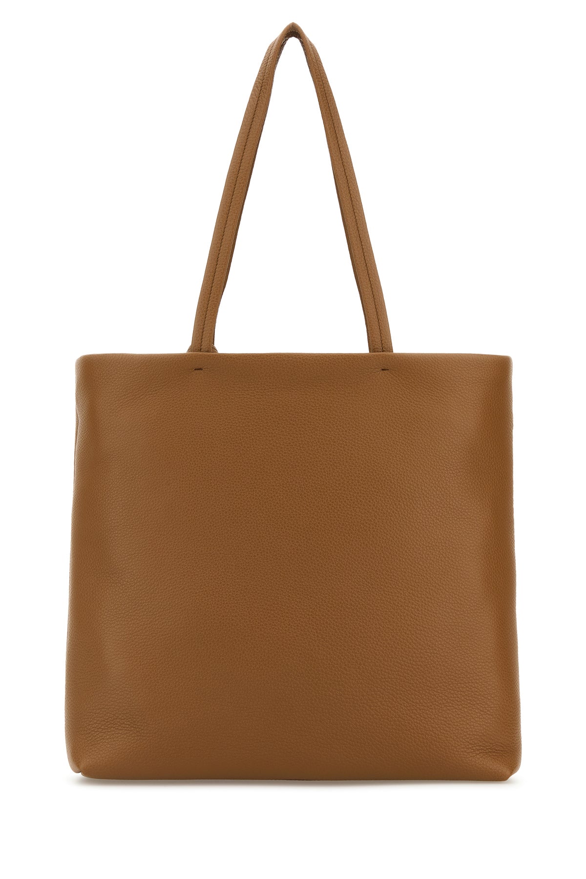Borsa shopping realizzata in pelle di daino martellata arricchita da logo in lettere metalliche sulla parte frontale.