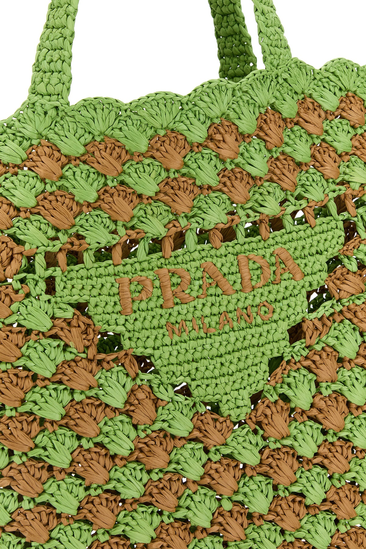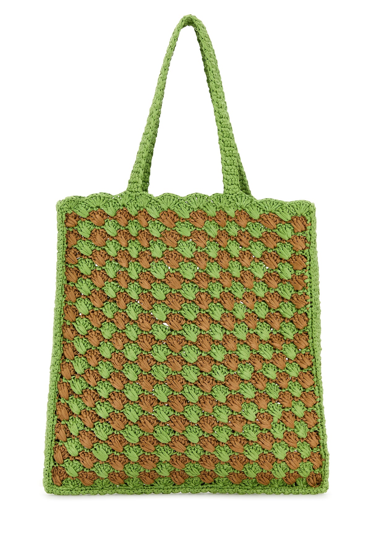 Borsa shopping realizzata in rafia caratterizzata da logo ricamato sulla parte frontale.