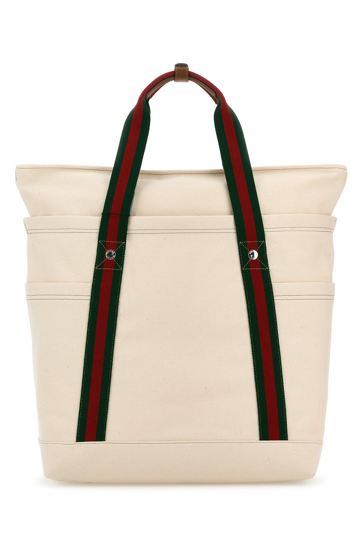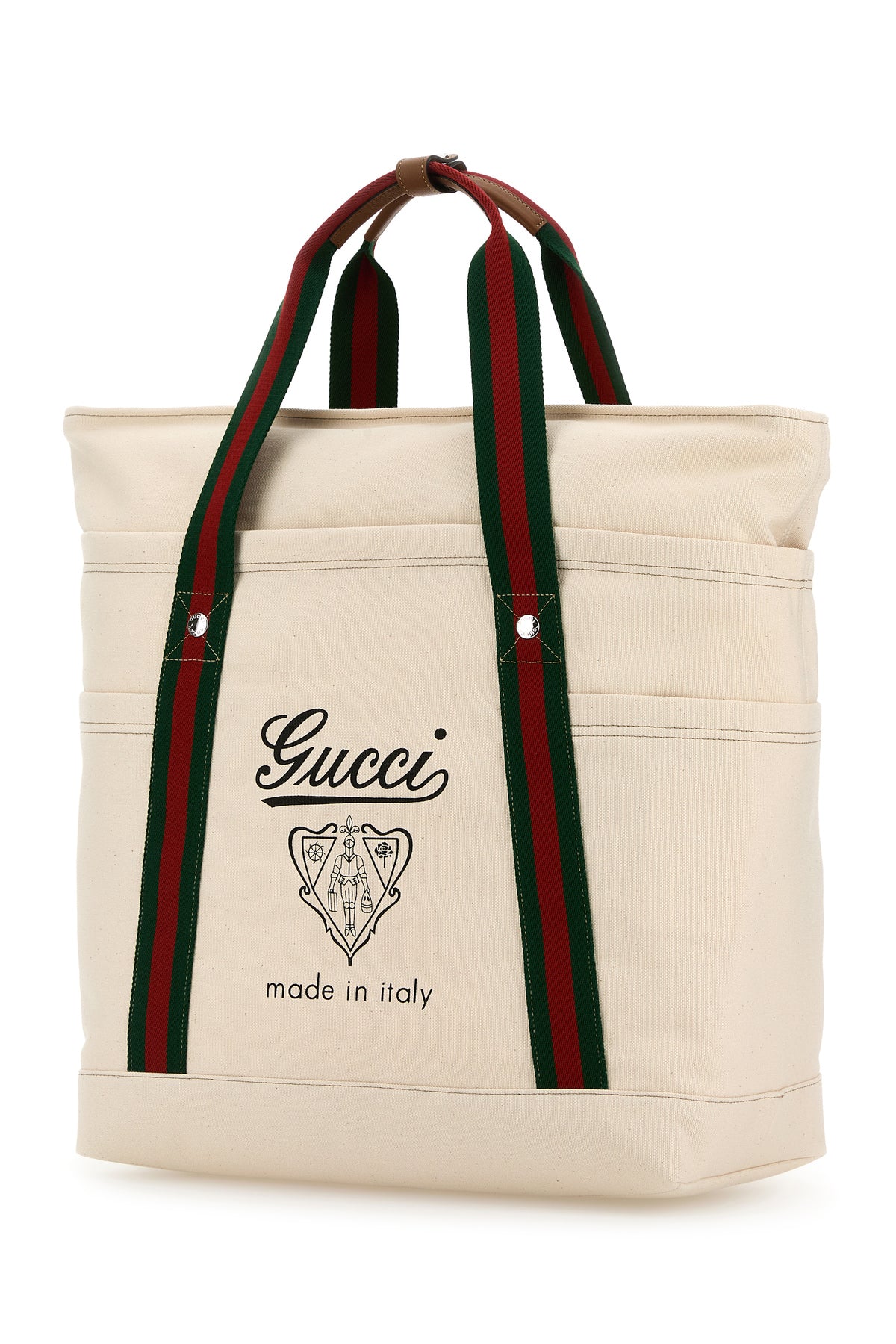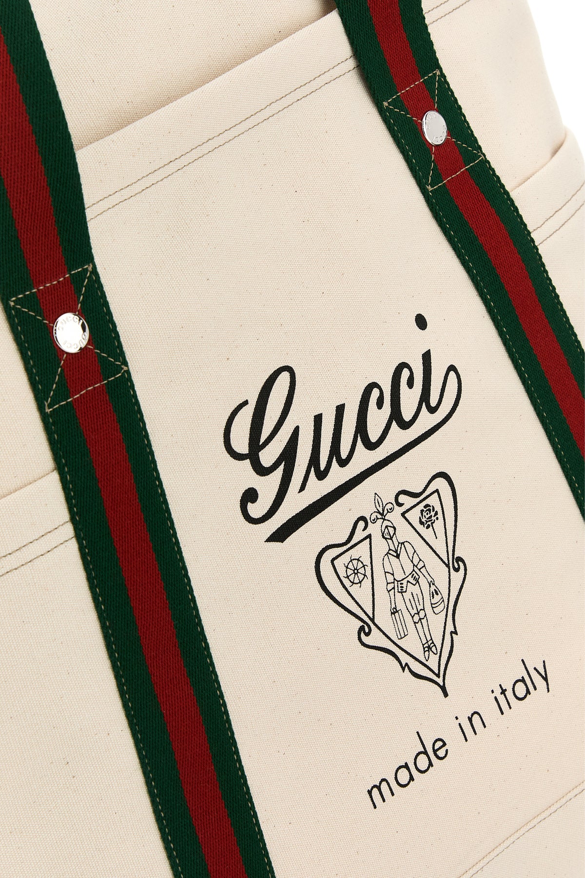 Borsa shopping realizzata in tela caratterizzata da stampa Gucci Made in Italy sulla parte frontale.