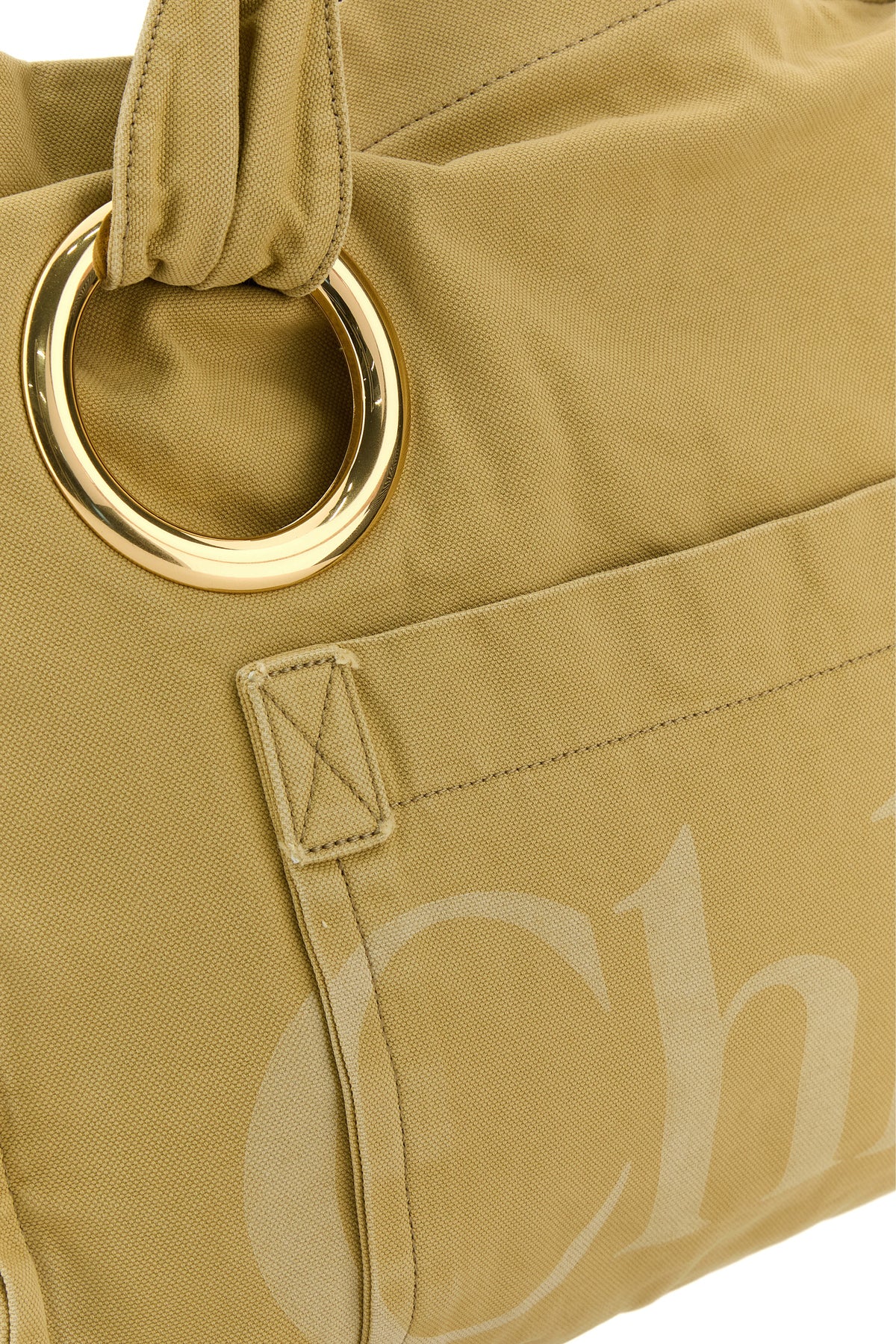 Borsa shopping realizzata in tela caratterizzata da logo stampato a contrasto sulla parte frontale.