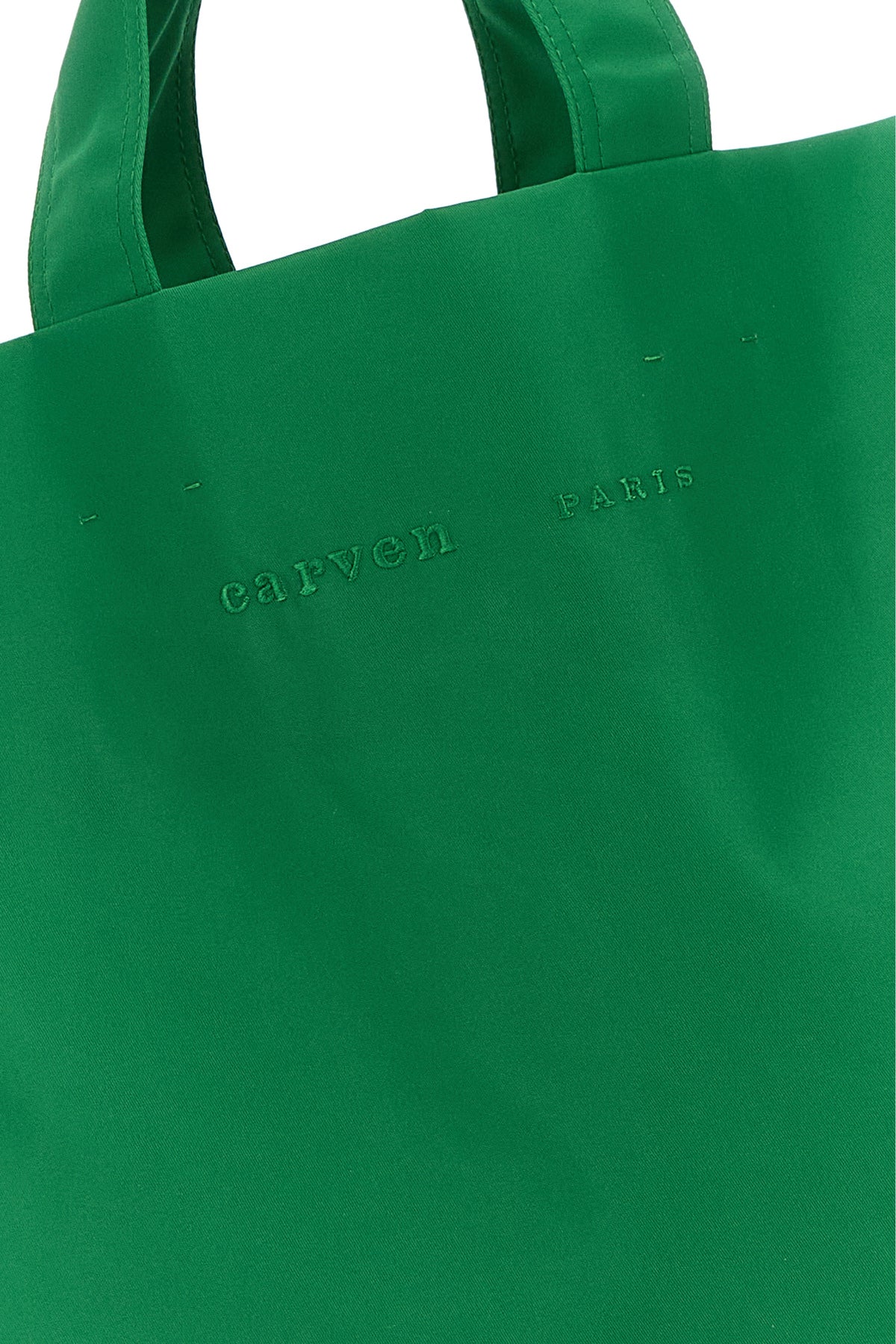 Borsa shopping realizzata in tela caratterizzata da logo ricamato tonale sulla parte frontale.