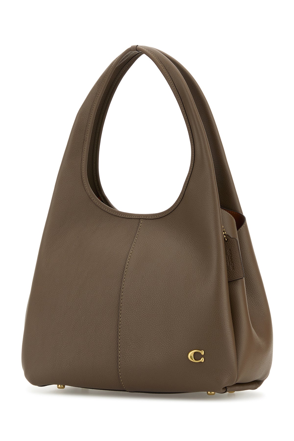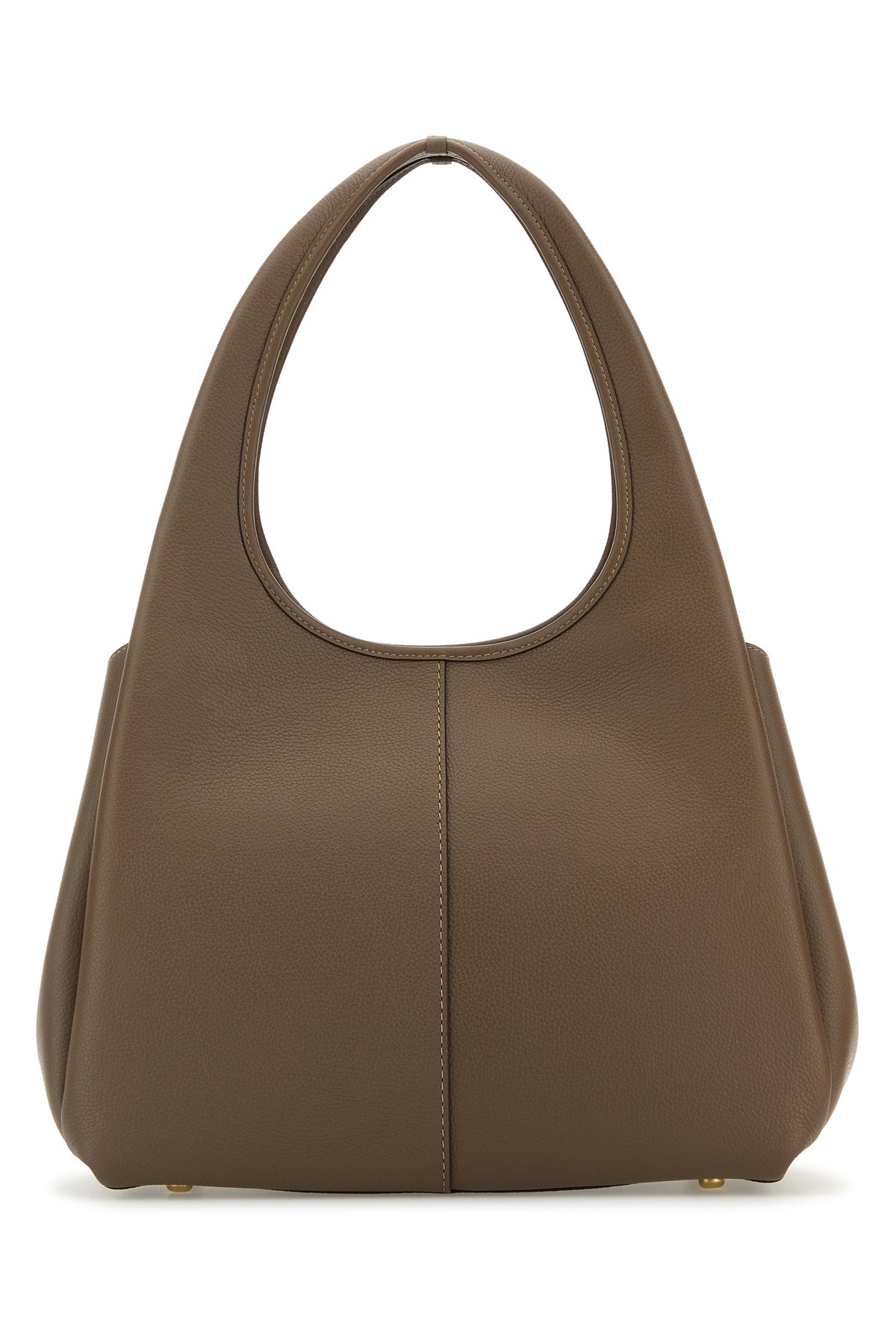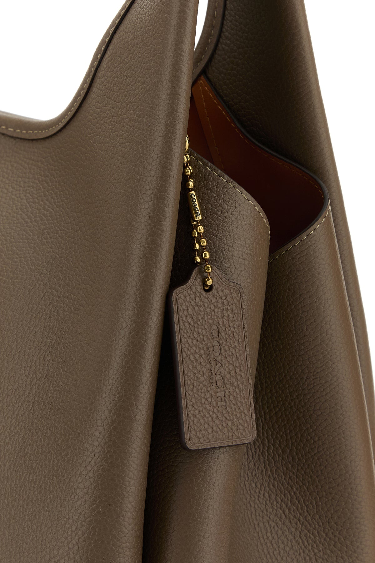Borsa shopping realizzata in pelle martellata arricchita da dettaglio metallico logato sulla parte frontale.