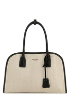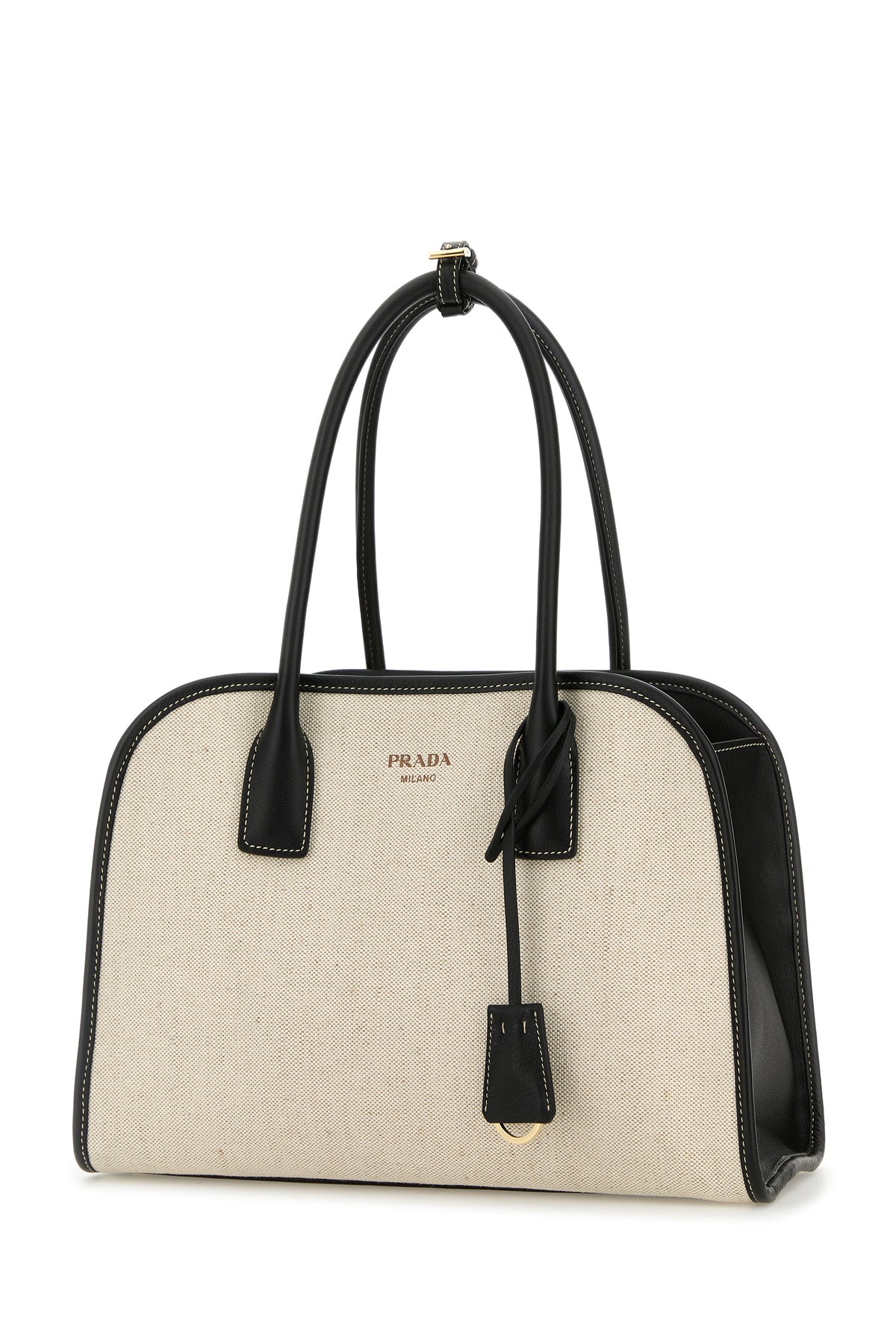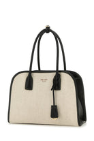 Borsa shopping realizzata in tela caratterizzata da logo stampato laminato sulla parte frontale.