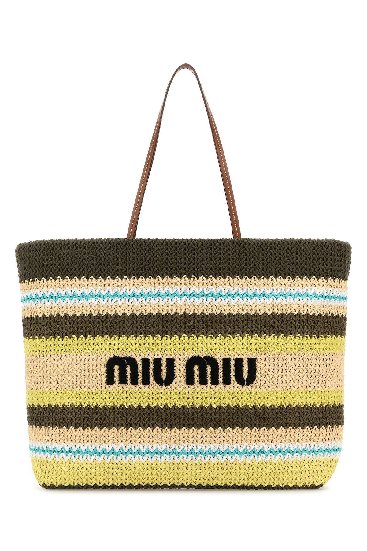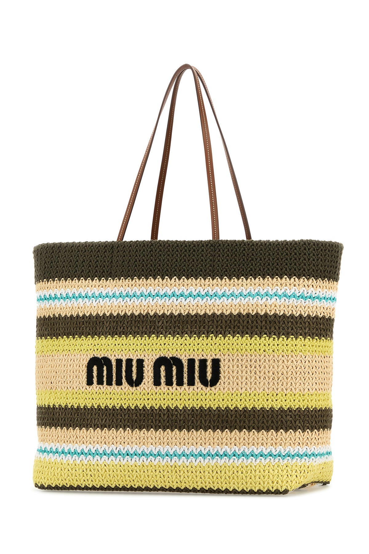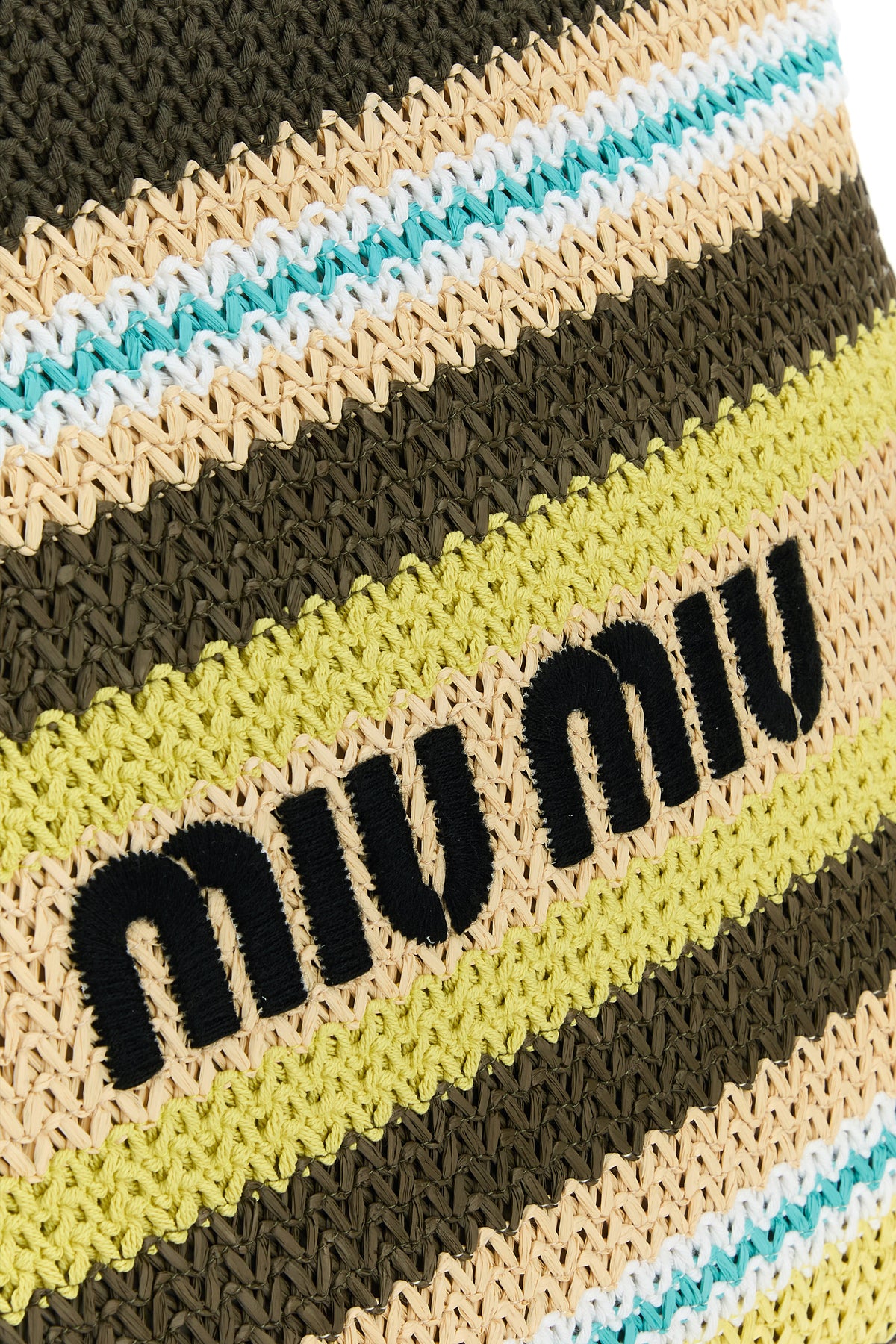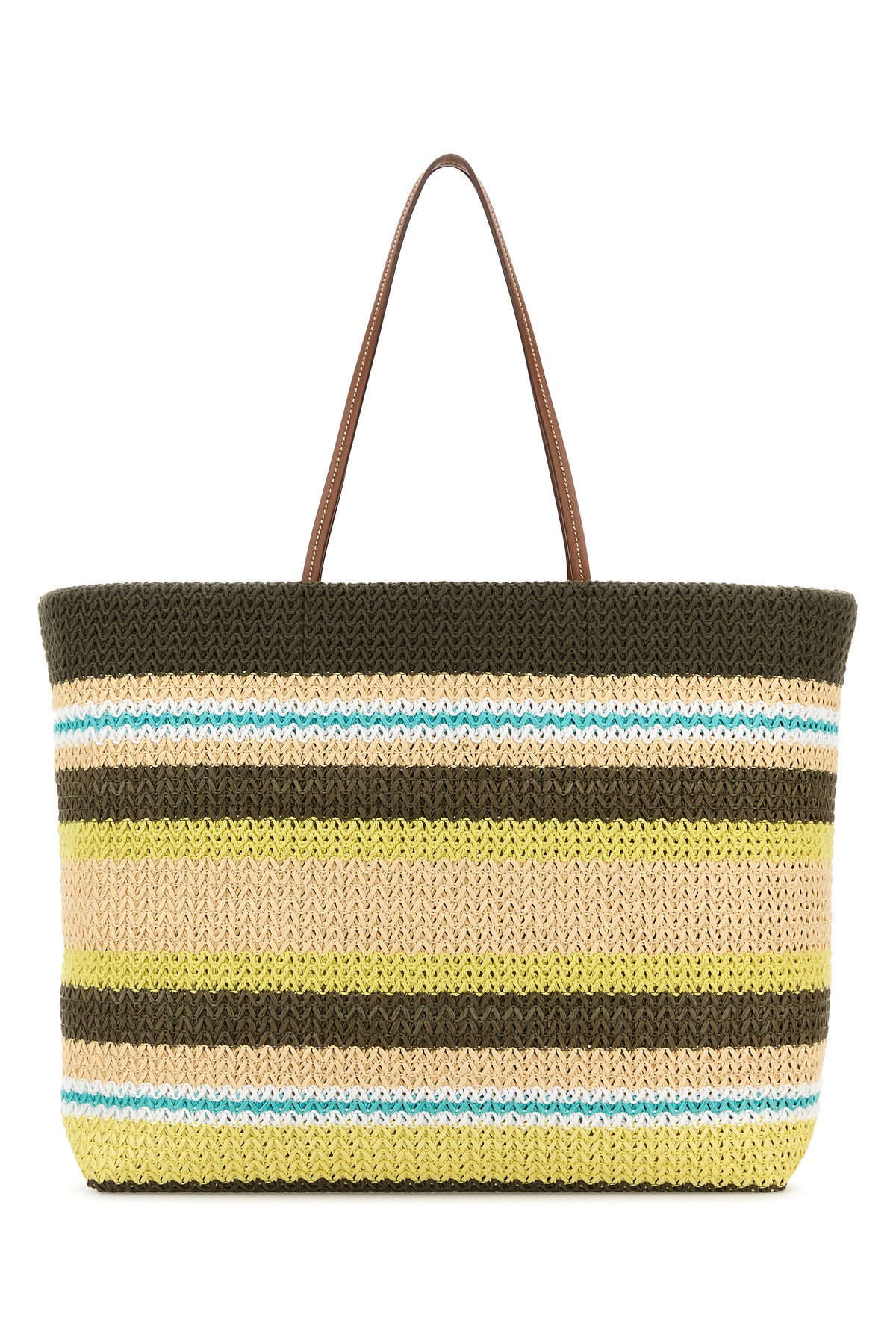 Borsa shopping realizzata in rafia e cotone caratterizzata da logo ricamato sulla parte frontale.