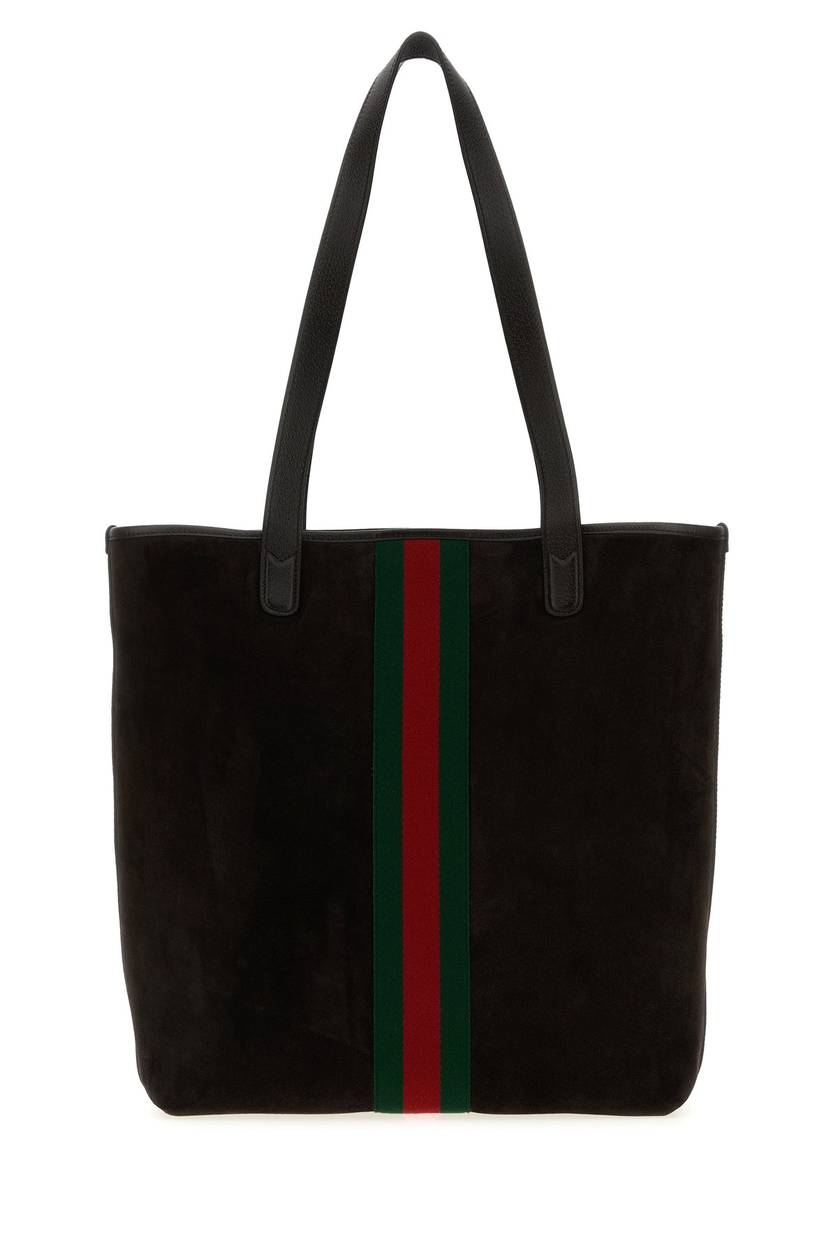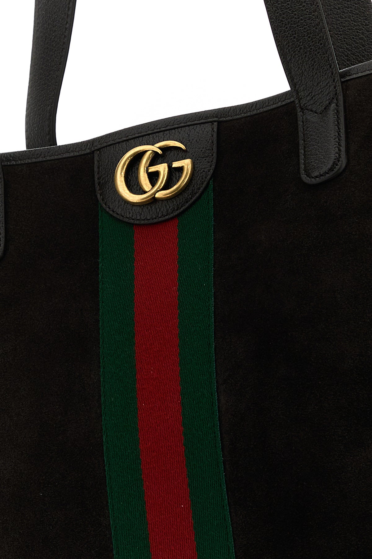 Borsa shopping realizzata in pelle scamosciata arricchita da dettaglio metallico GG sulla parte frontale.