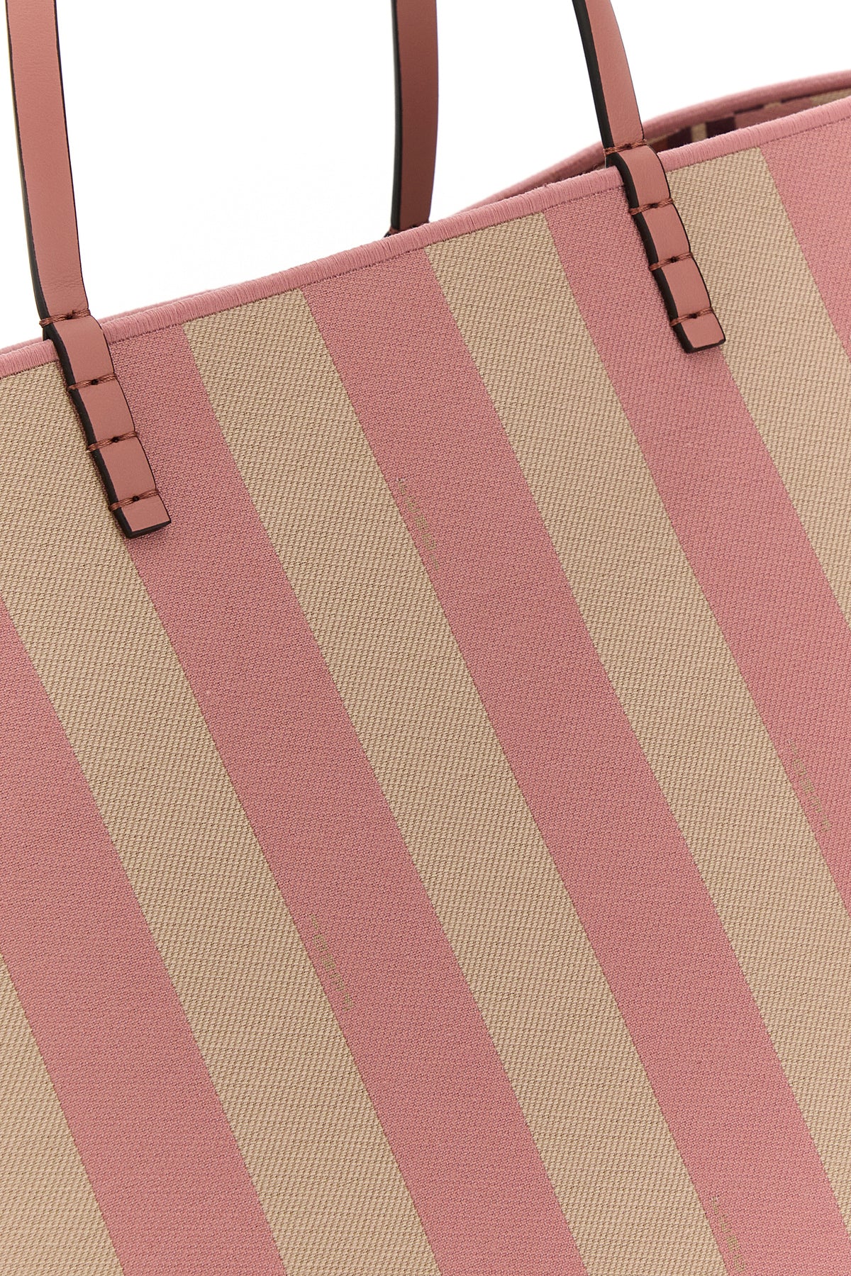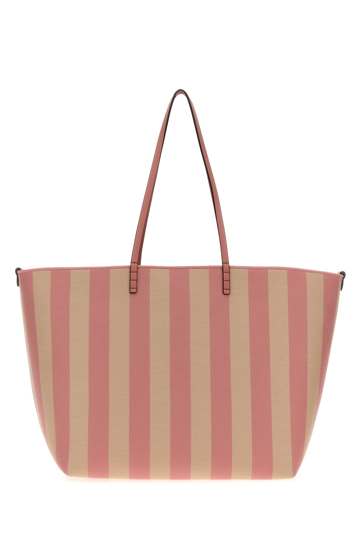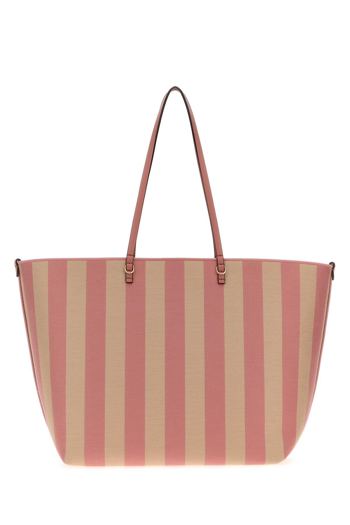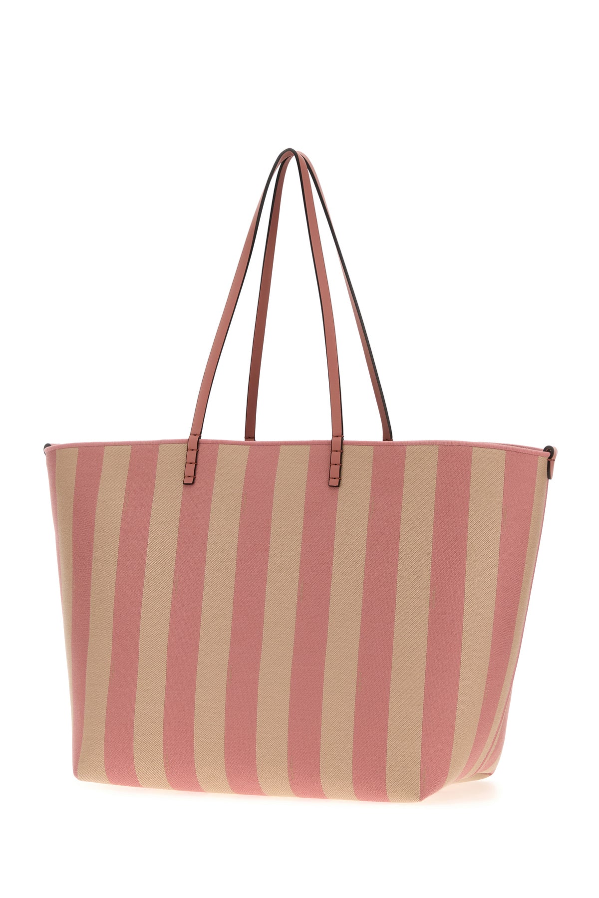 Borsa shopping reversibile realizzata in tela caratterizzata da ricamo a righe su tutta la superficie.