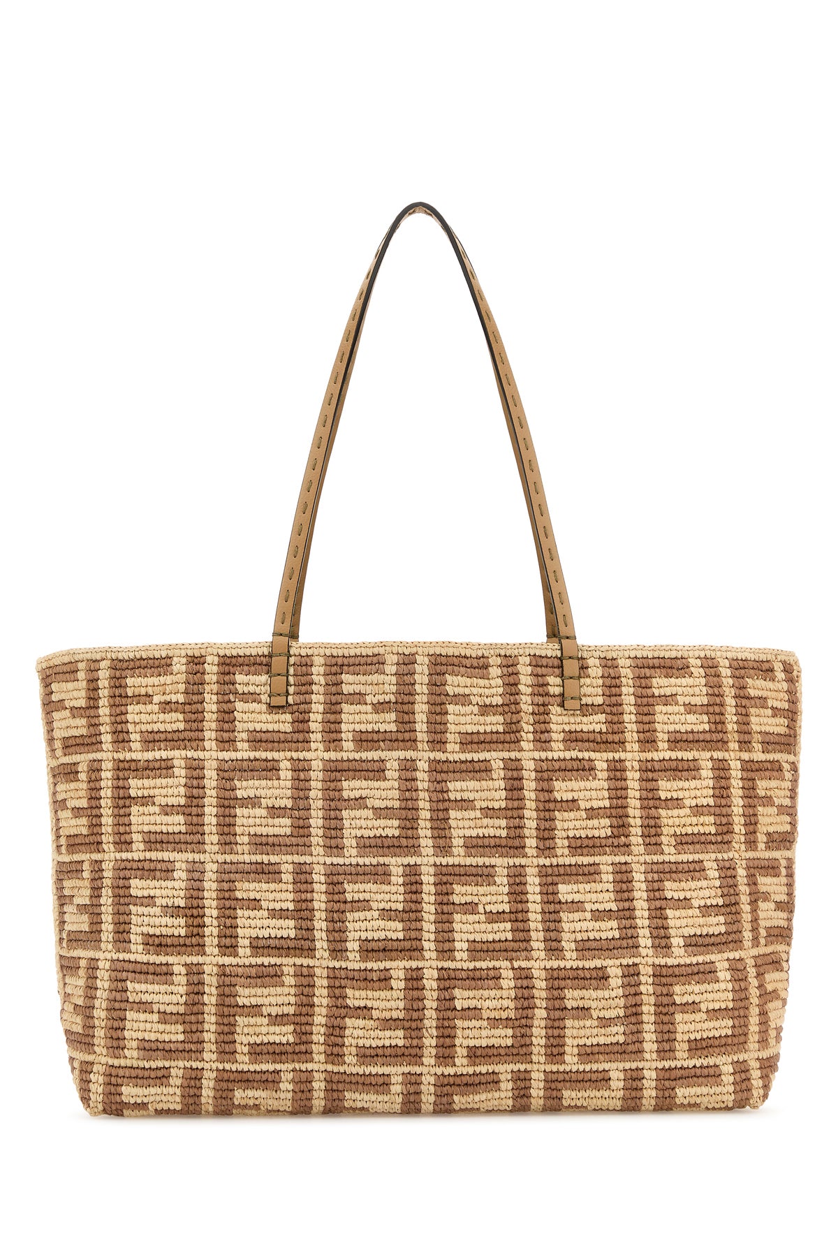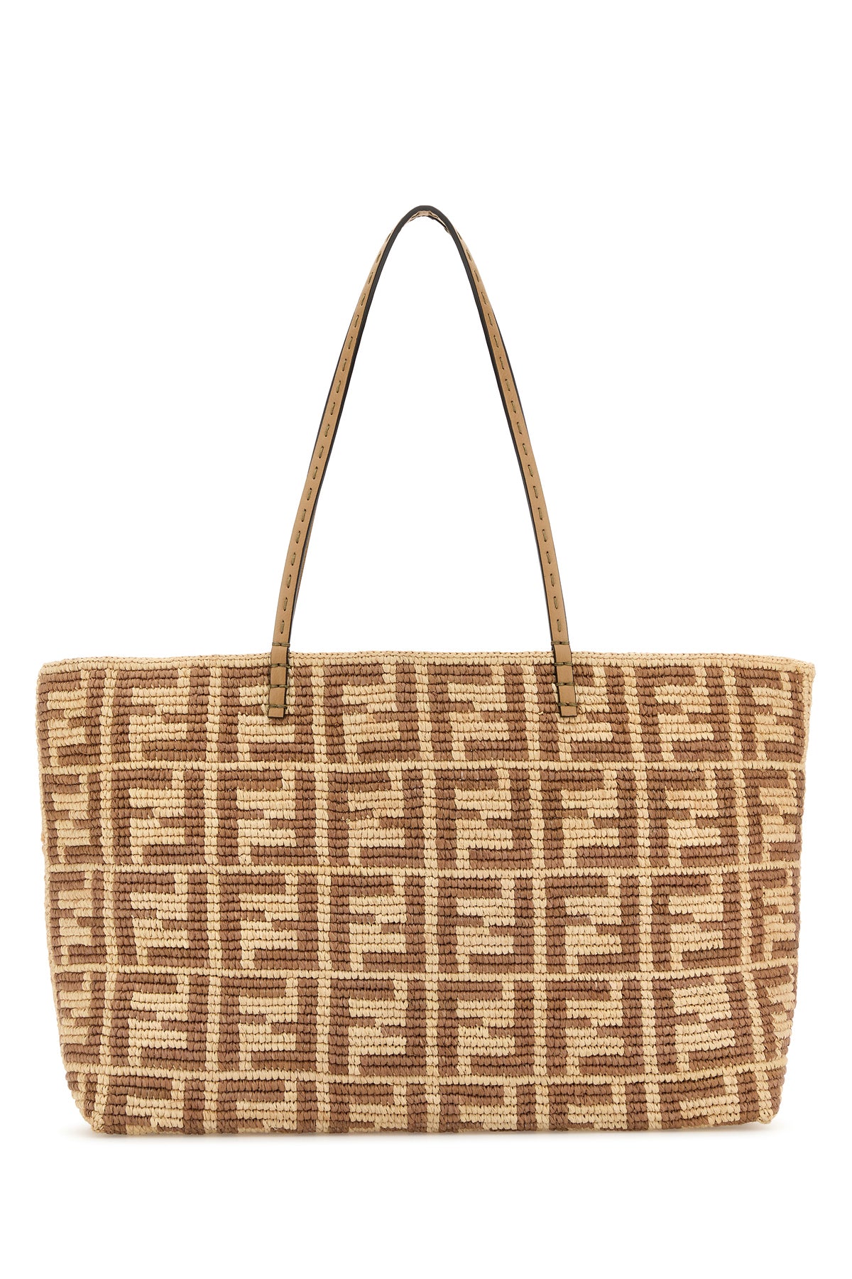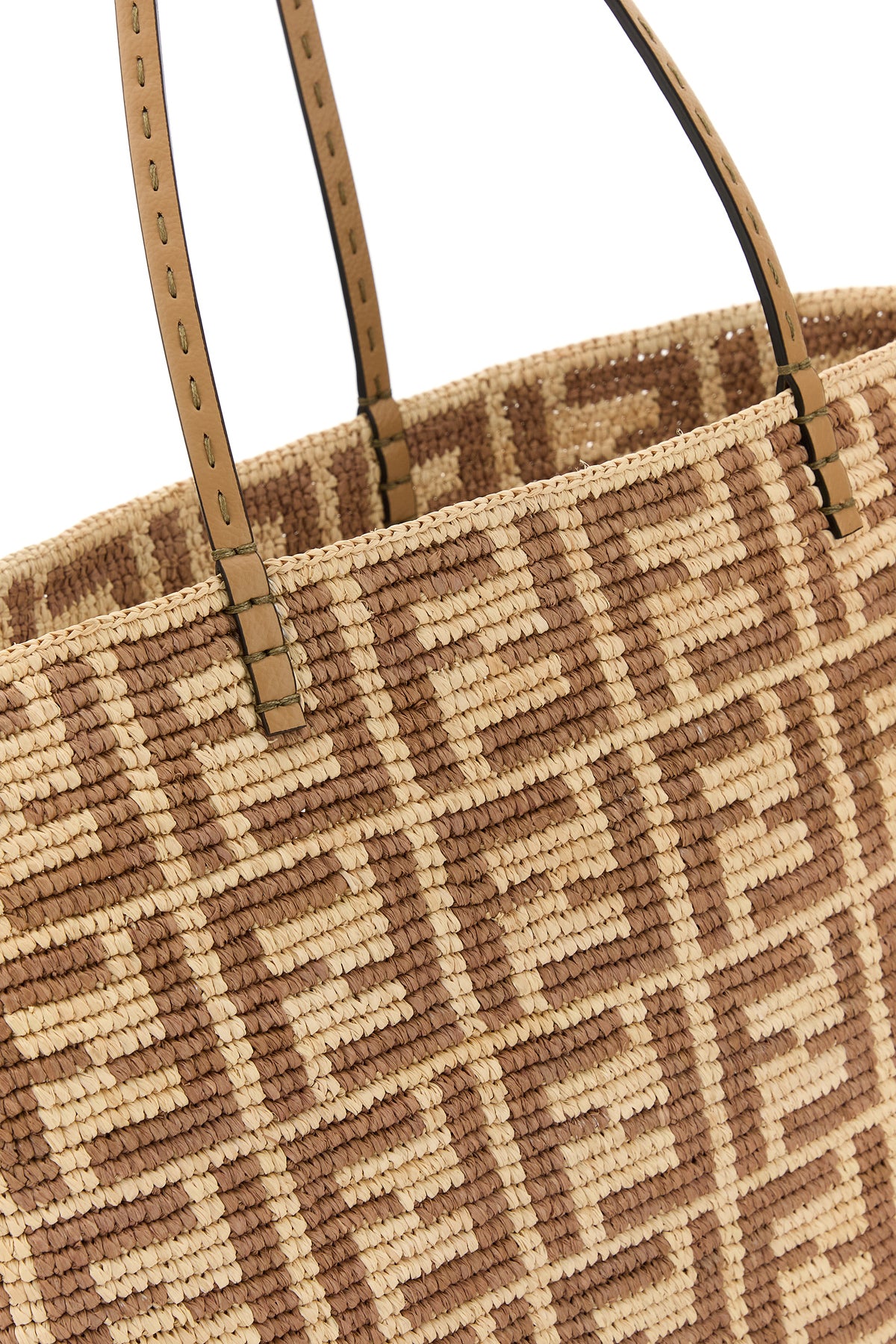 Borsa shopping realizzata in paglia intrecciata caratterizzata da motivo FF ricamato su tutta la superficie.