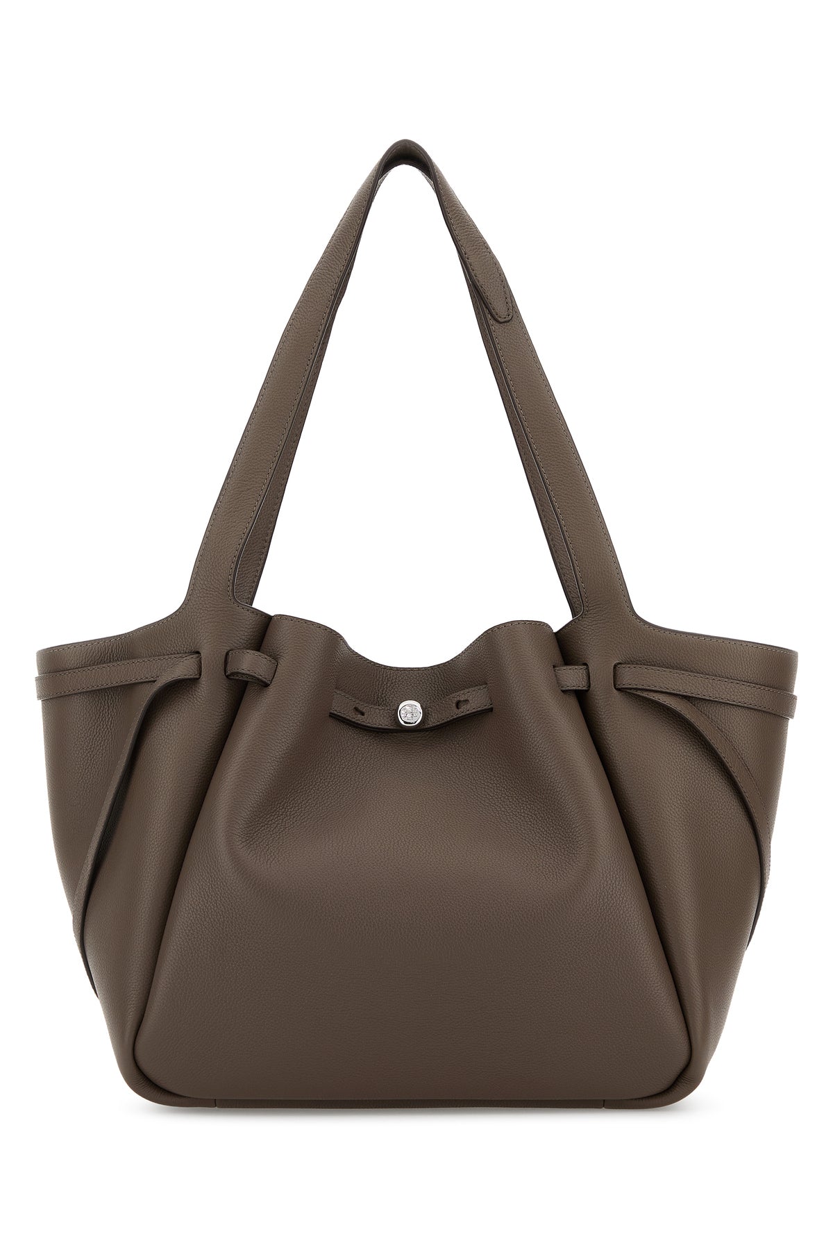 Borsa shopping realizzata in pelle martellata arricchita da cinturini di compressione.